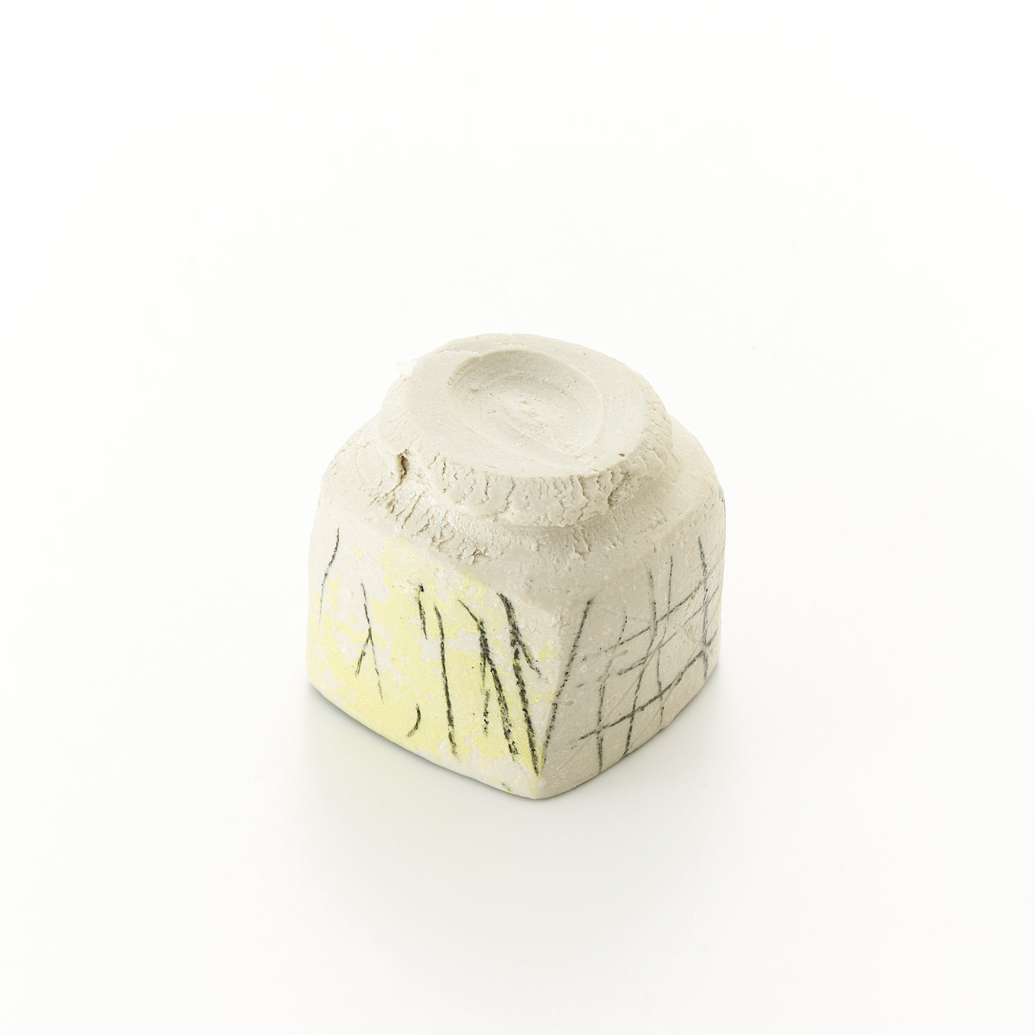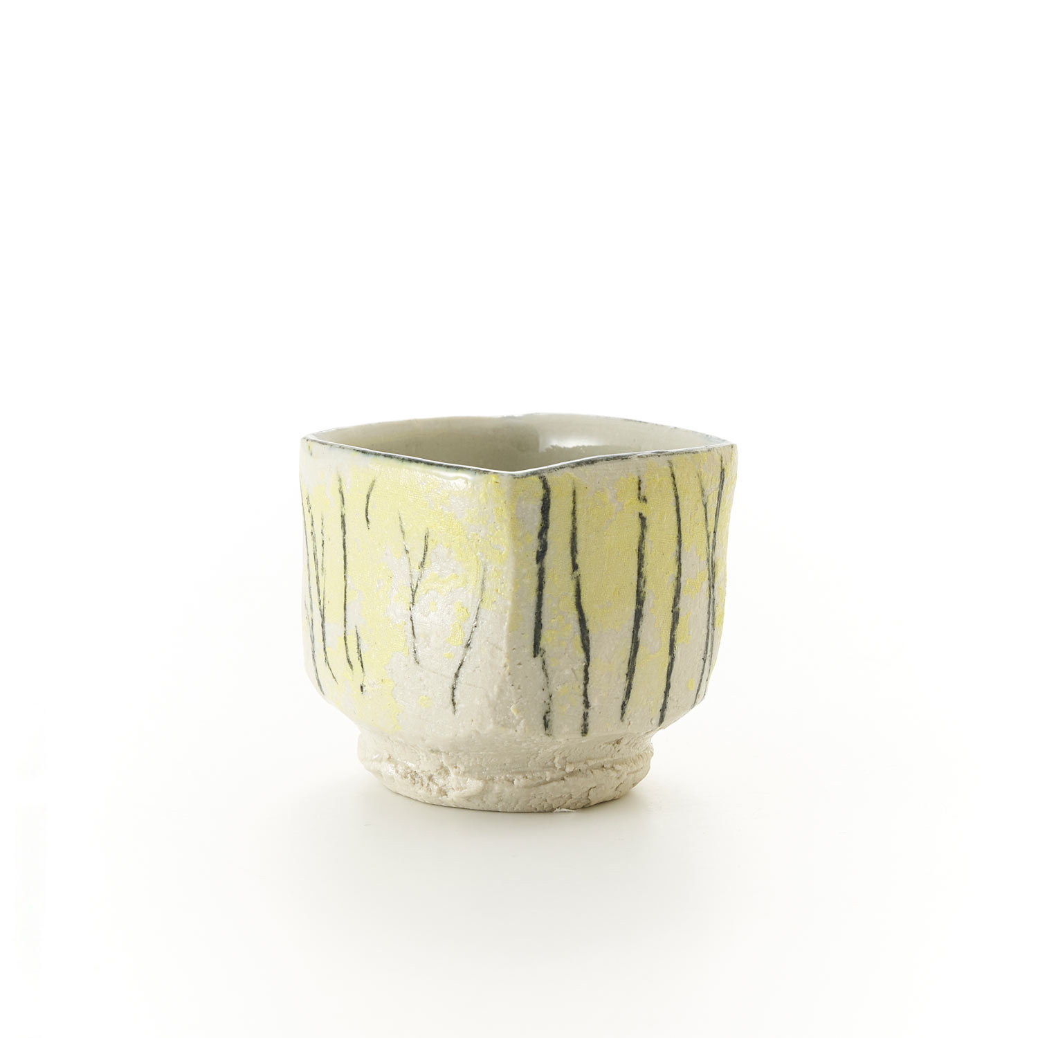 ロクロ成型後、シルクスクリーンの技法で色付けています。パステルでアクセントをつけています。お酒はもちろん、珍味入れにどうぞ。