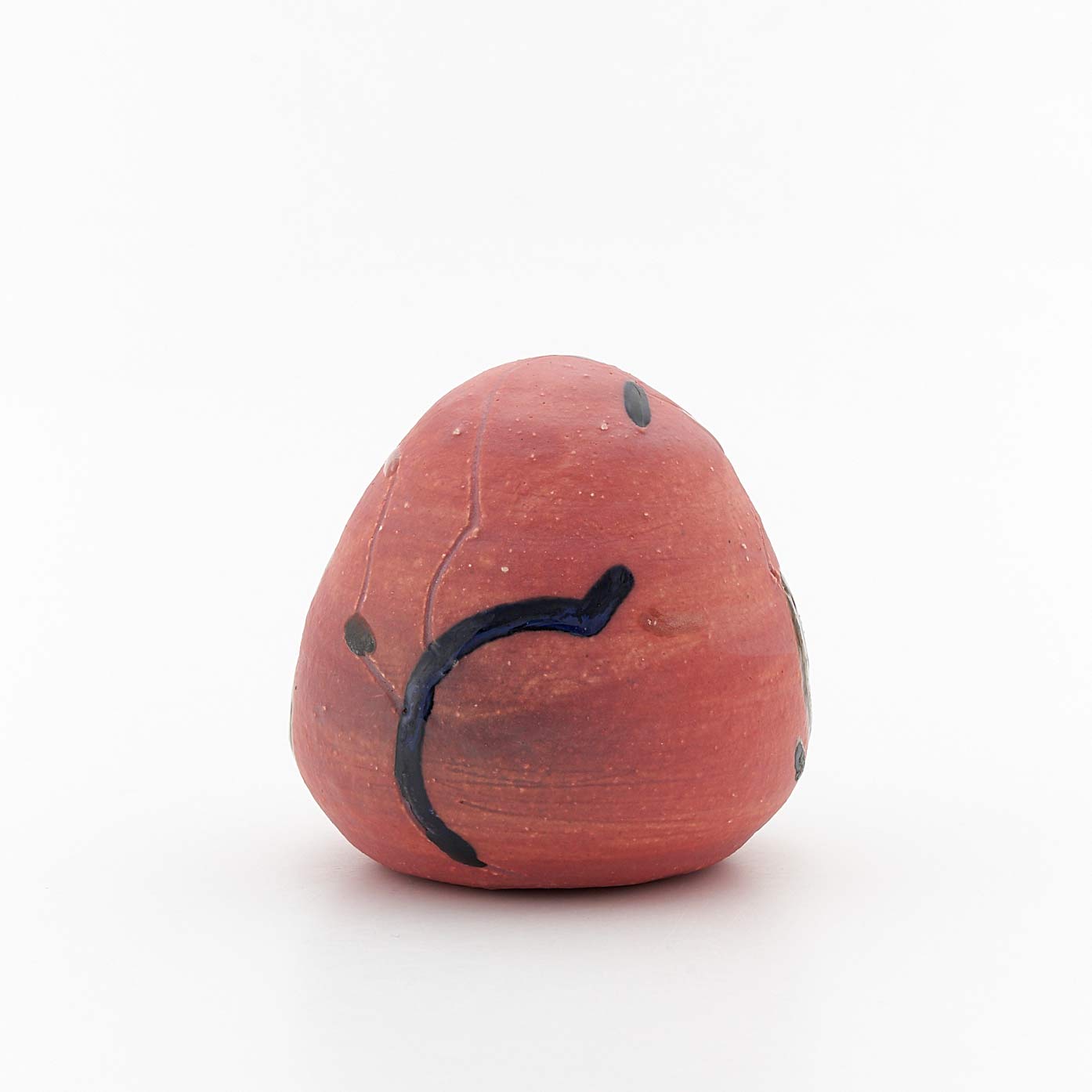 線と釉薬でドローイングされた赤のボディの、てのりサイズの作品。眺めていると元気の出る作品です。