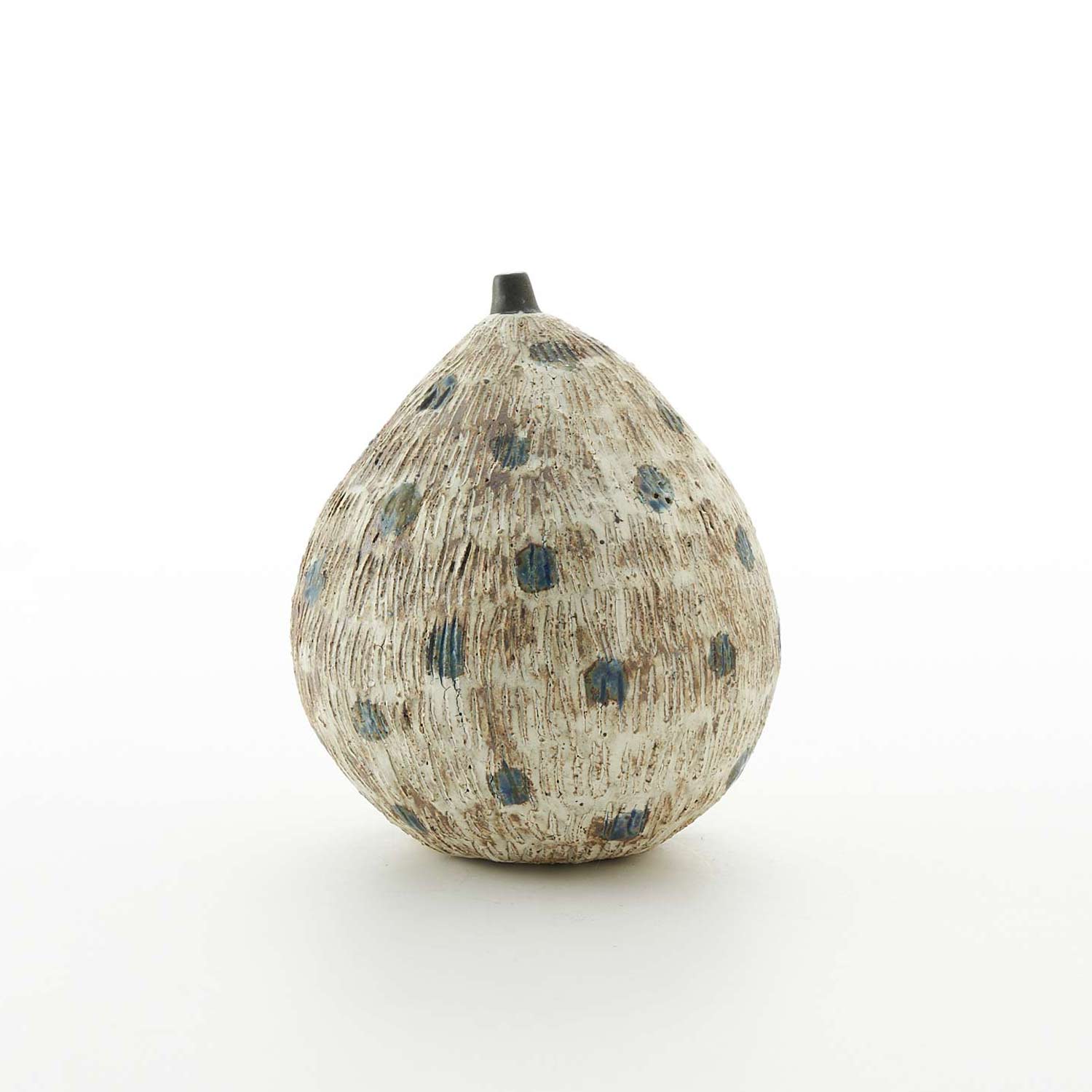 洋梨のような形とドット模様でほっこりする作品です。手捻りで作られたやさしいオブジェです。