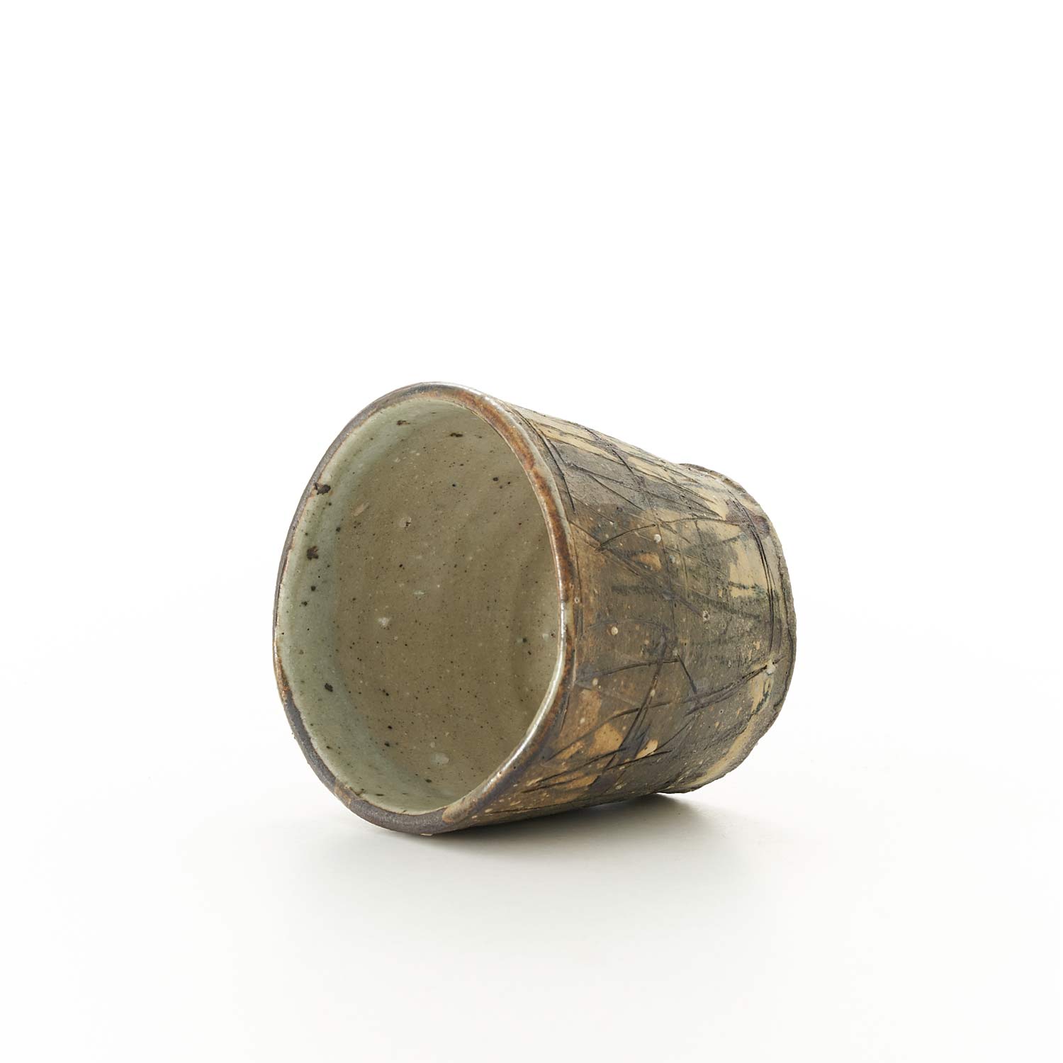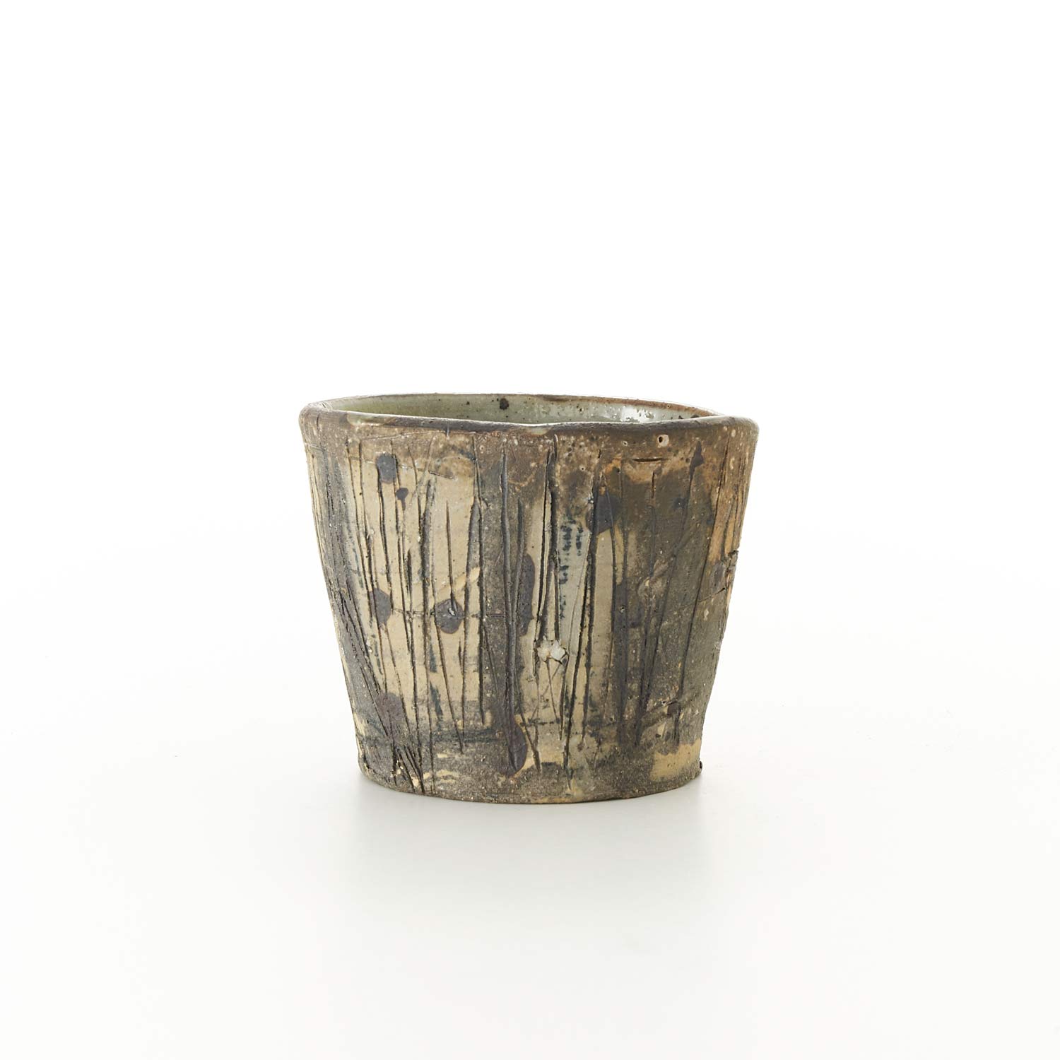 パステルと鉄絵でクロッキーが描かれた小さめのカップ。酒器としてもおすすめです。