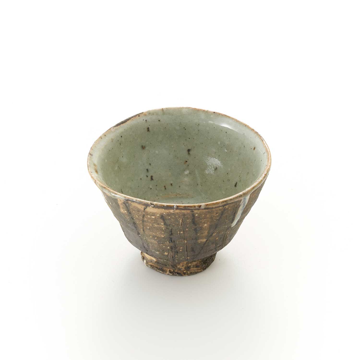 パステルと鉄絵でクロッキーが描かれた汲み出し。外側の土っぽさと内側の釉薬が対象的で面白いです。小鉢としても。