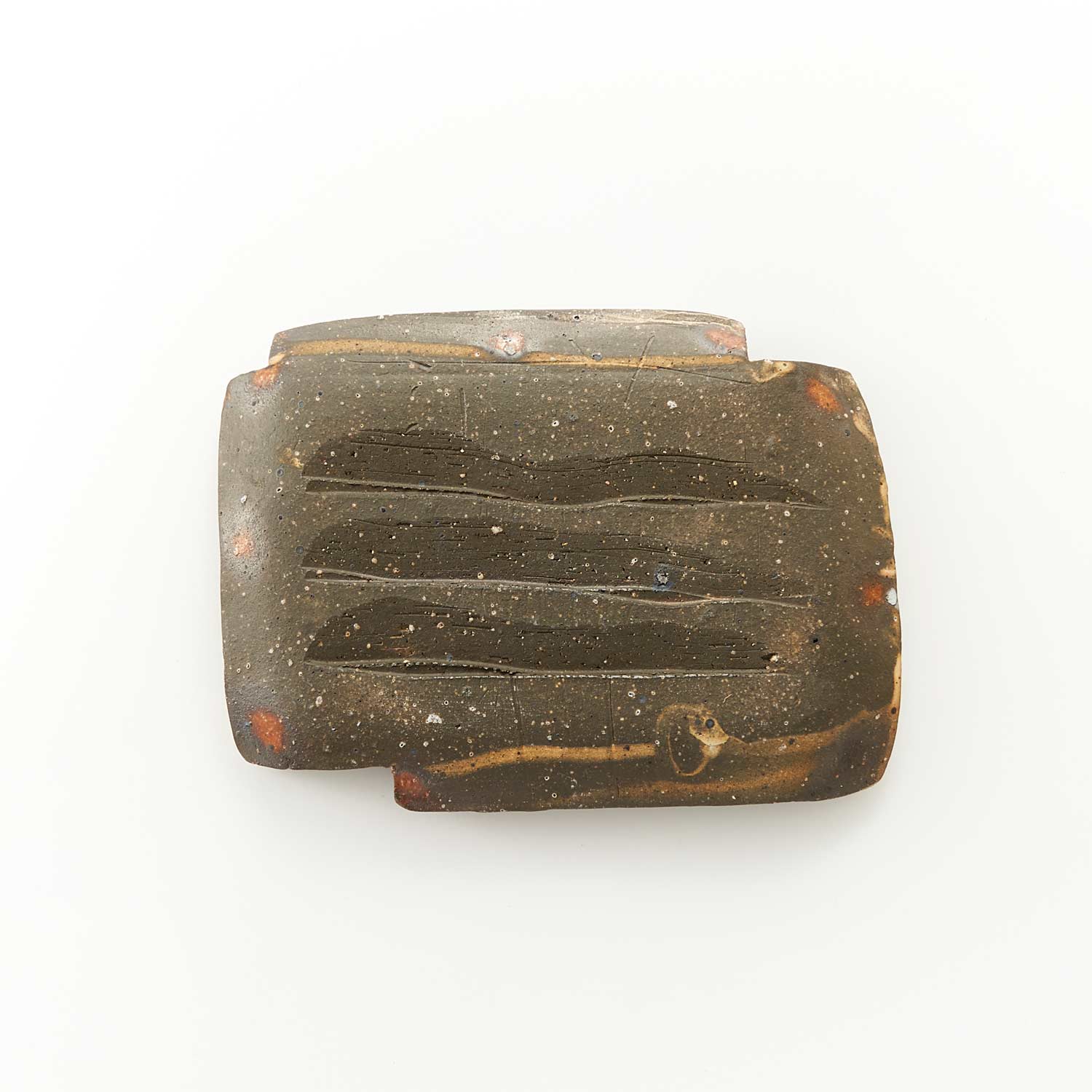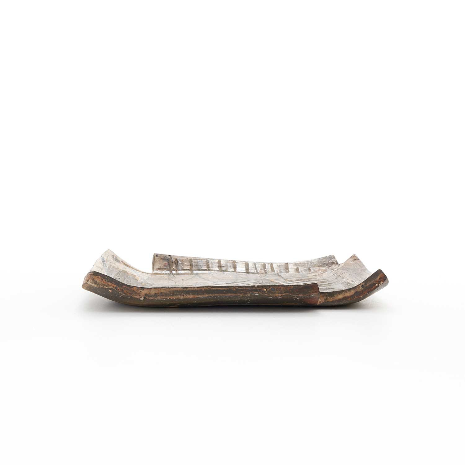 パステルと鉄絵でクロッキーが描かれた、切り取られたような形が面白い板皿です。