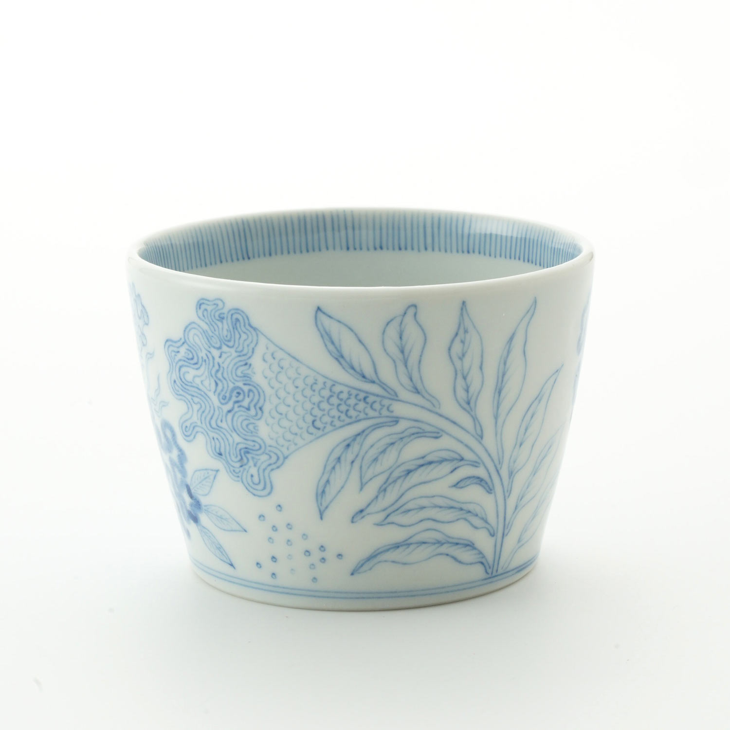 素焼きの状態に染付呉須(絵具)で細い筆を使い線描きします。