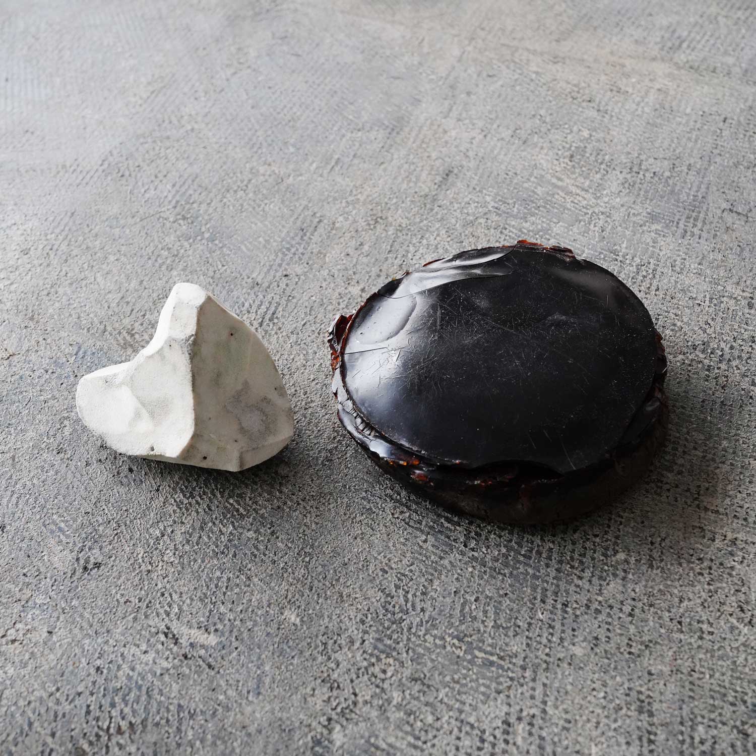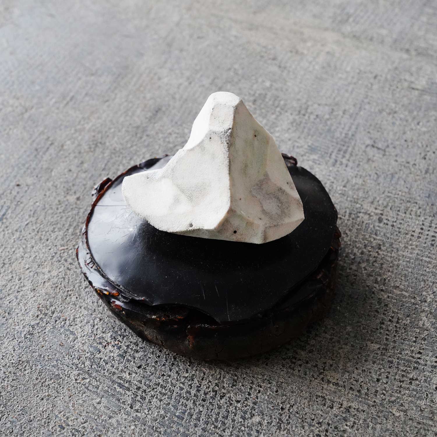Carved coral into the shape of a mountain. The stand is a mystery resin. It's an object that would fit well in the alcove.
