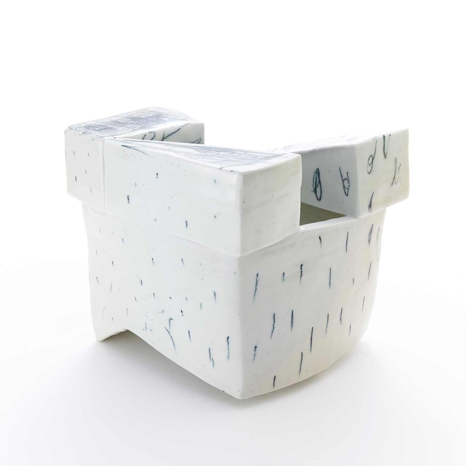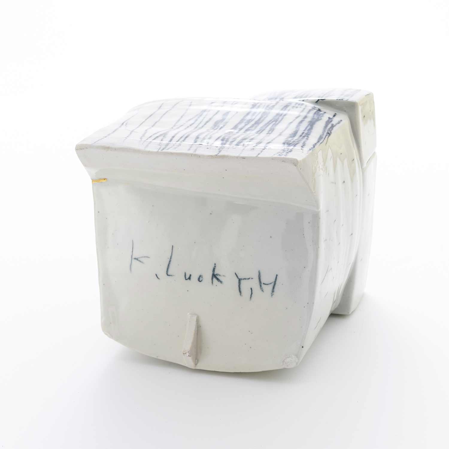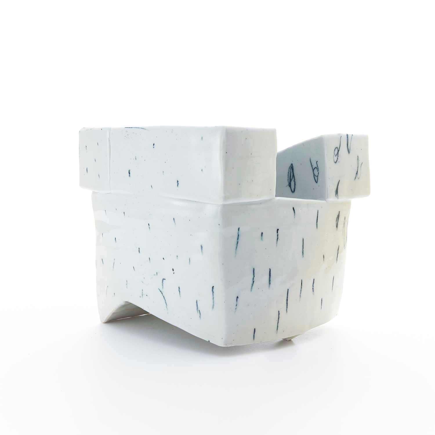 パステルで描かれたクロッキーと、タタラ成形の組み合わせが面白い『ウツワ』。器とオブジェクトの間を行ったり来たり。使い方に想像が膨らみます。製作時のヒビを直した金継ぎがポイント。