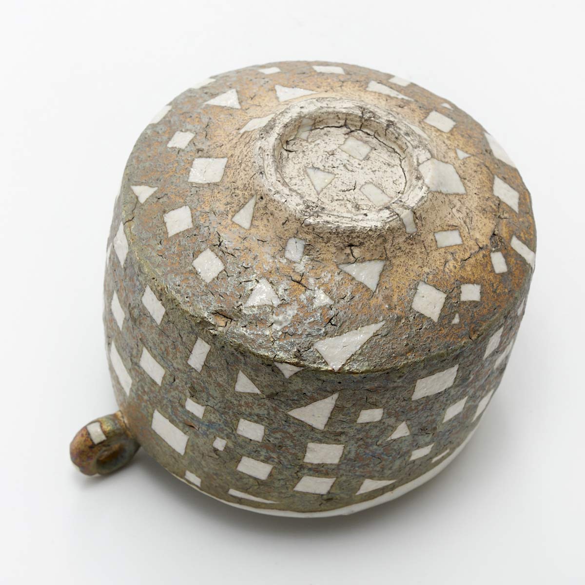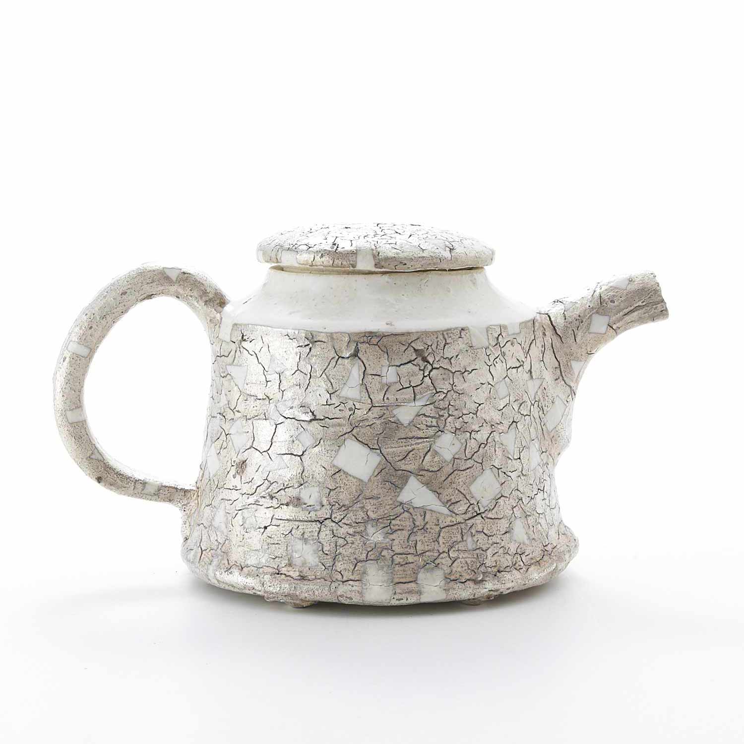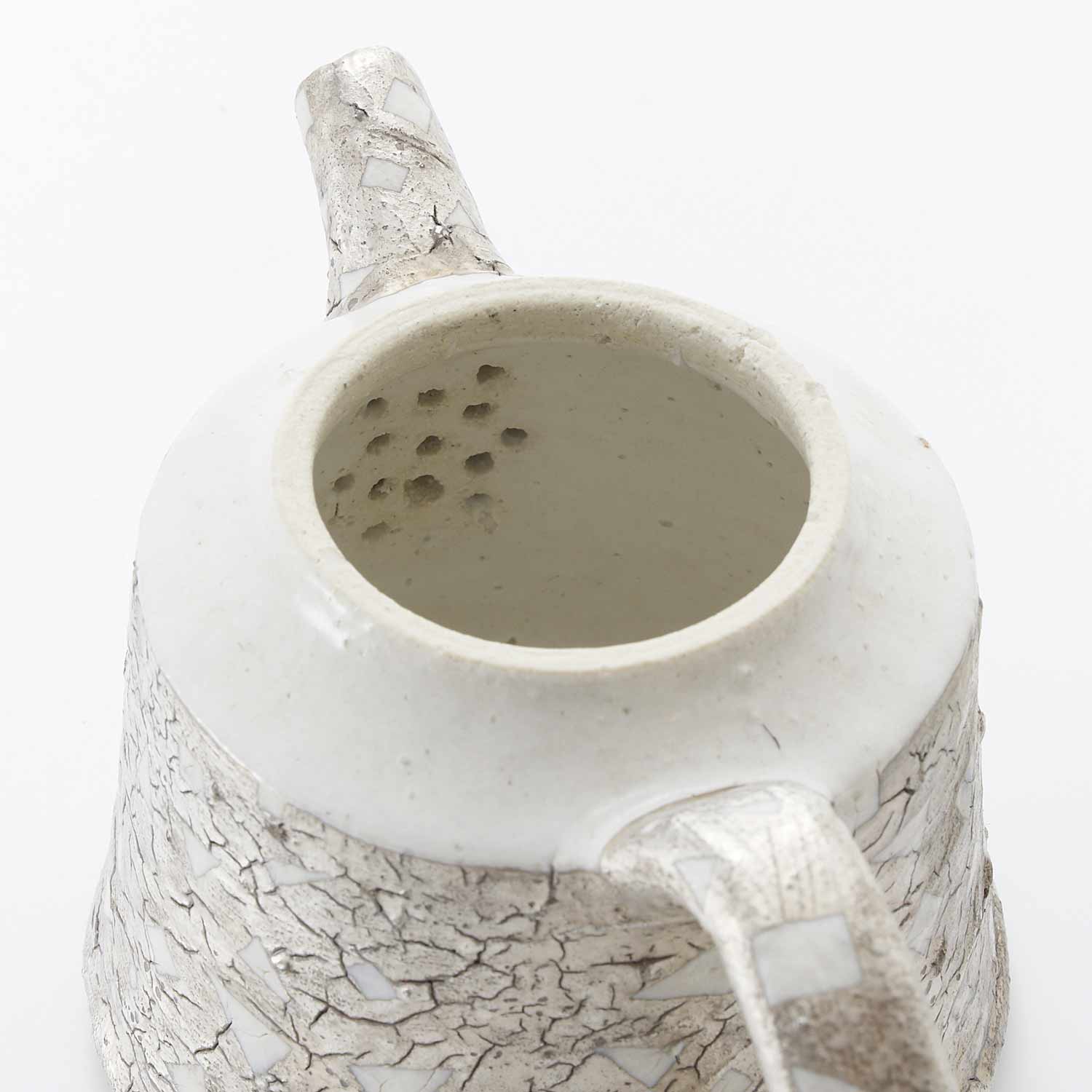 陶土と磁土を駆使して作られたポット。銀彩も施されています。