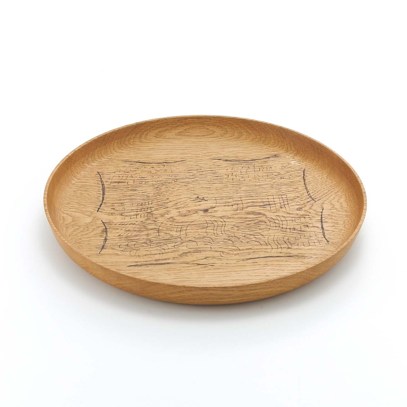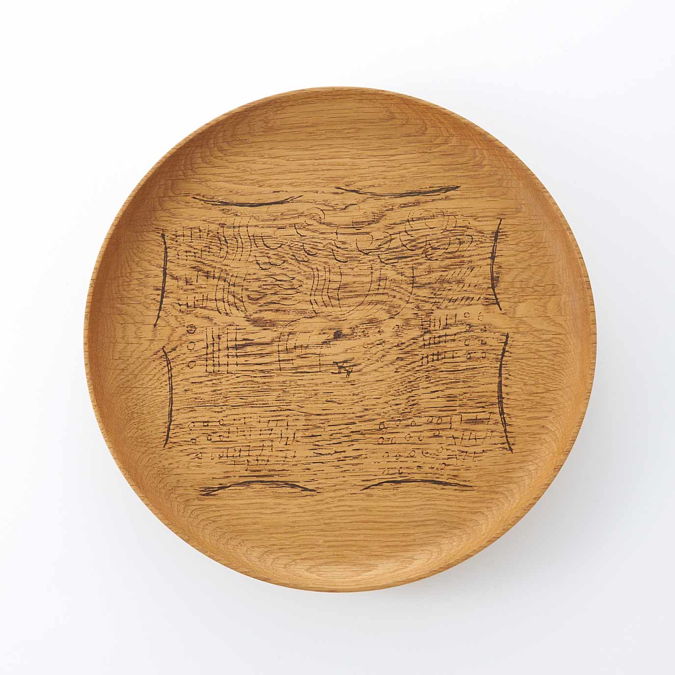 馬のいる風景が描かれた使いやすい大きさの皿。トレーとしてもお使いいただけます。木工旋盤で成形し、生漆+地の粉で描いています。ウレタンを浸みこませて、蜜蝋、荏胡麻油を塗布して仕上げています。食器としてお使いいただけます。