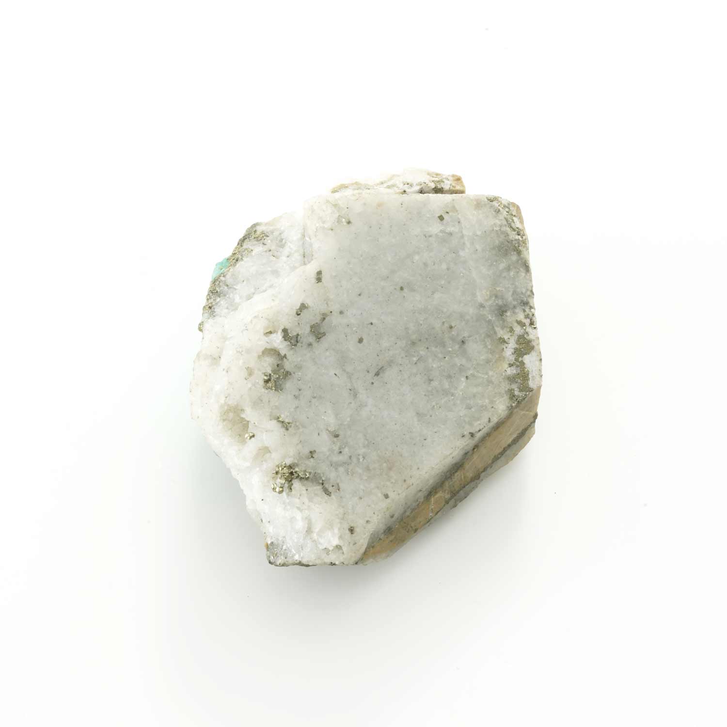 The emerald is shaped like a mountain on a glittering pyrite matrix. The stratum-like pattern on the cross-section is also a fun ore.