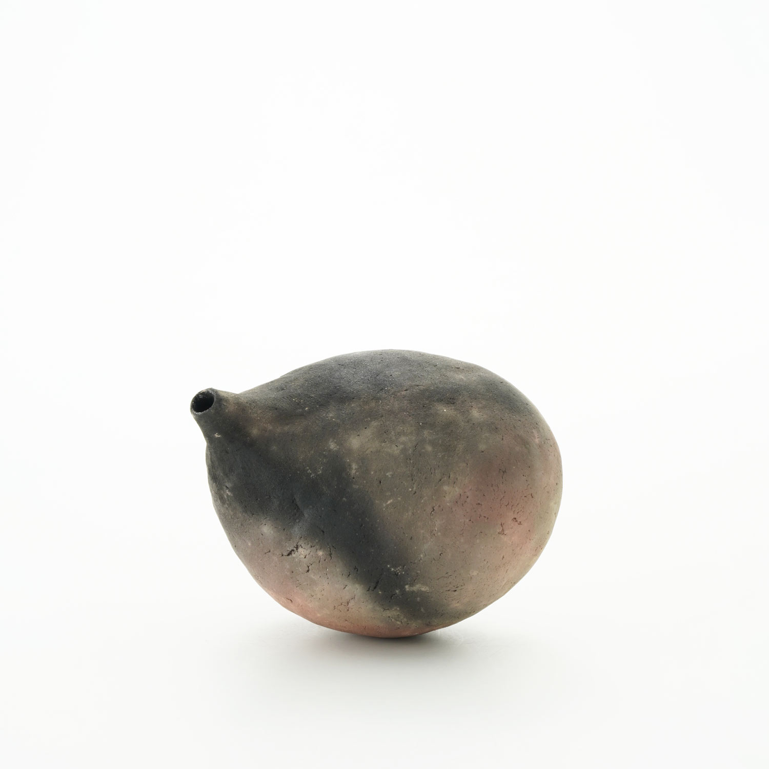 野焼き焼成した土器の小壺です。洗練されたシルエットと美しい炎が作り出す模様が魅力です。※こちら水は入れられません。口の小さく細い物しかさせません。