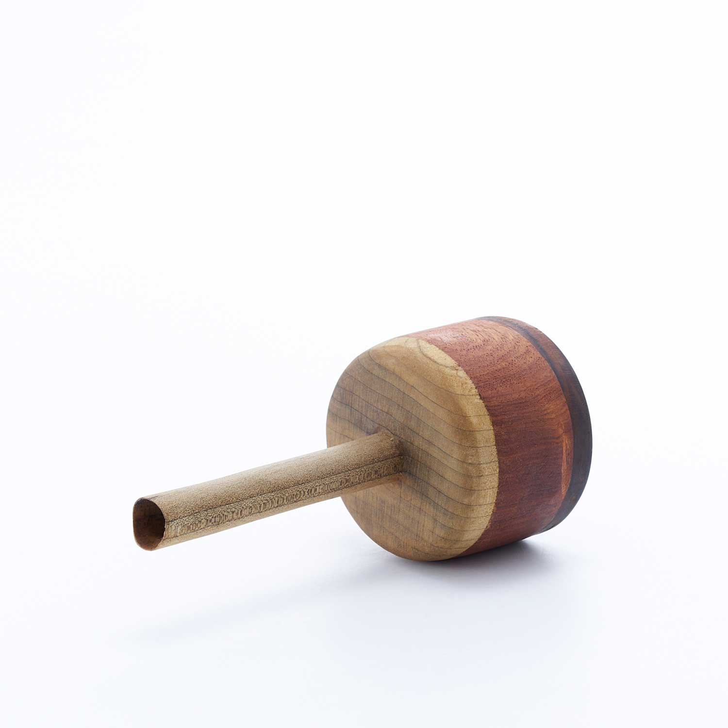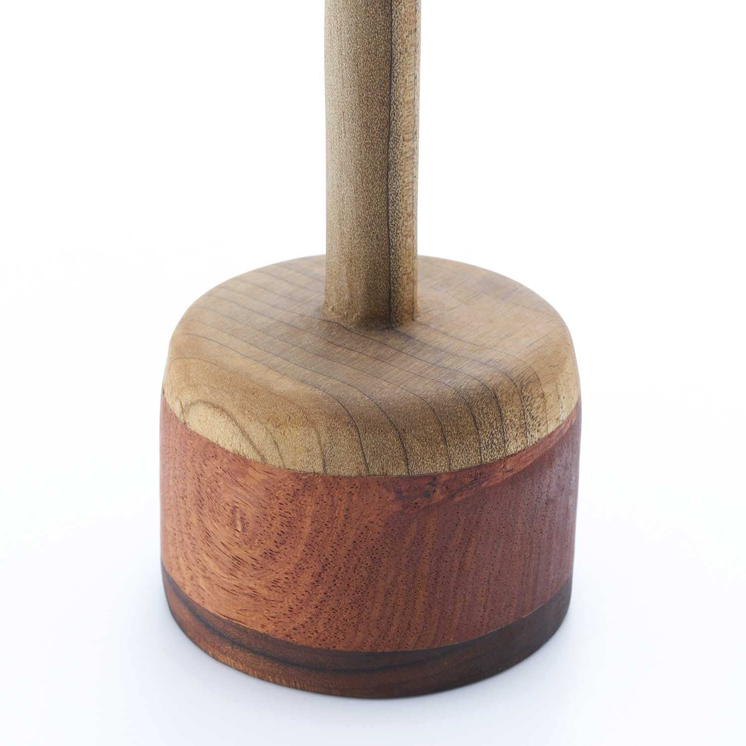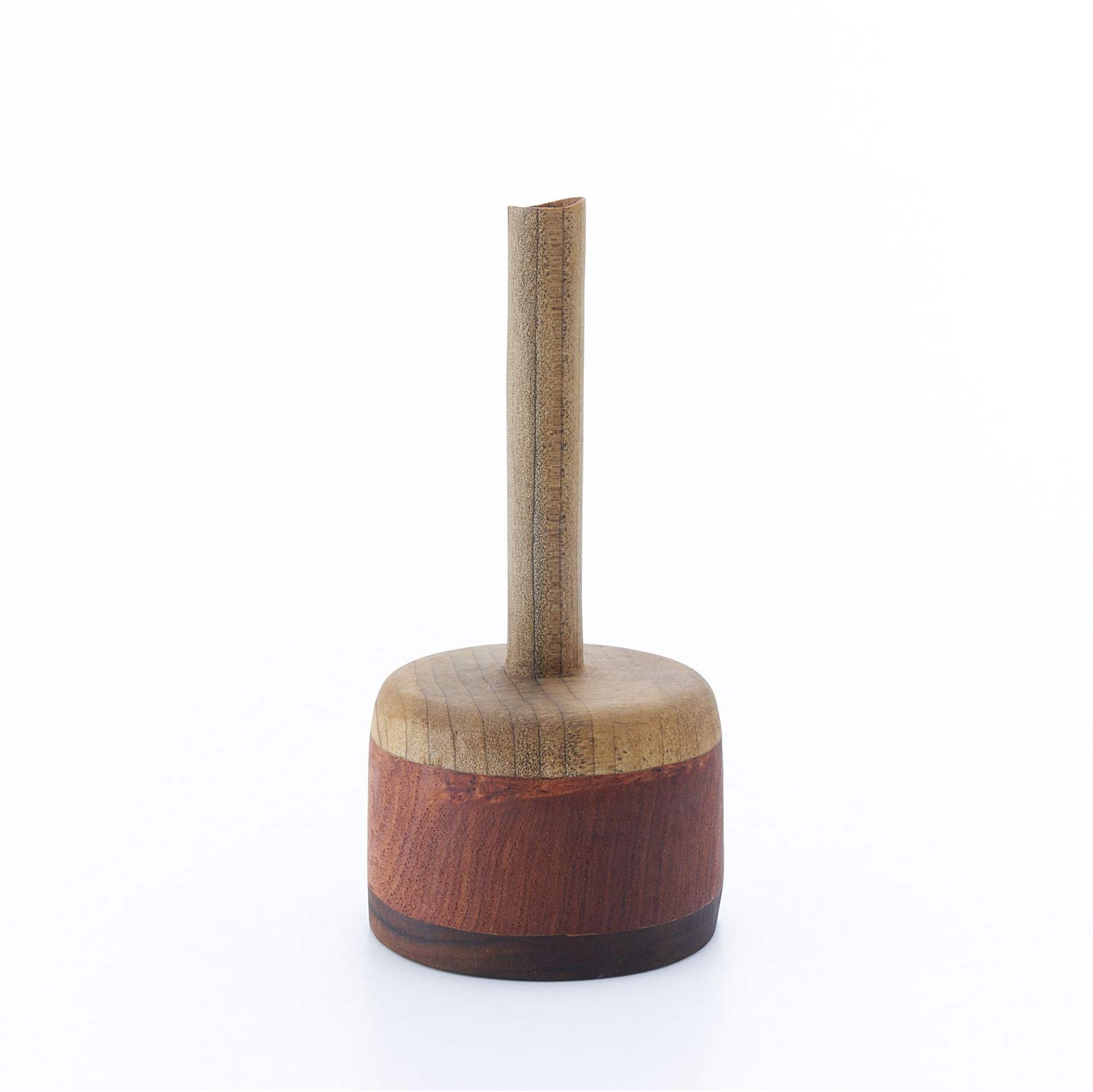 様々な種類の木を接ぎ合せ、木工旋盤、ノミ、カンナで成形し、蜜蝋、荏胡麻油を塗布して仕上げています。水は入れられませんので、ドライフラワーなどでお楽しみください。オブジェとしても素敵な佇まいです。