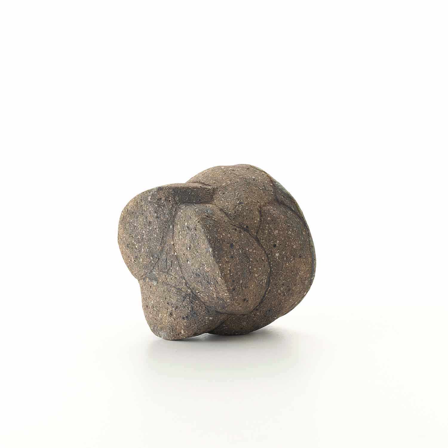 紐作りで成形し炭化で焼き締めた作品。紐作りで成形し炭化で焼き締めた作品。手の中で造形の力強さと質感をお楽しみいただけます。