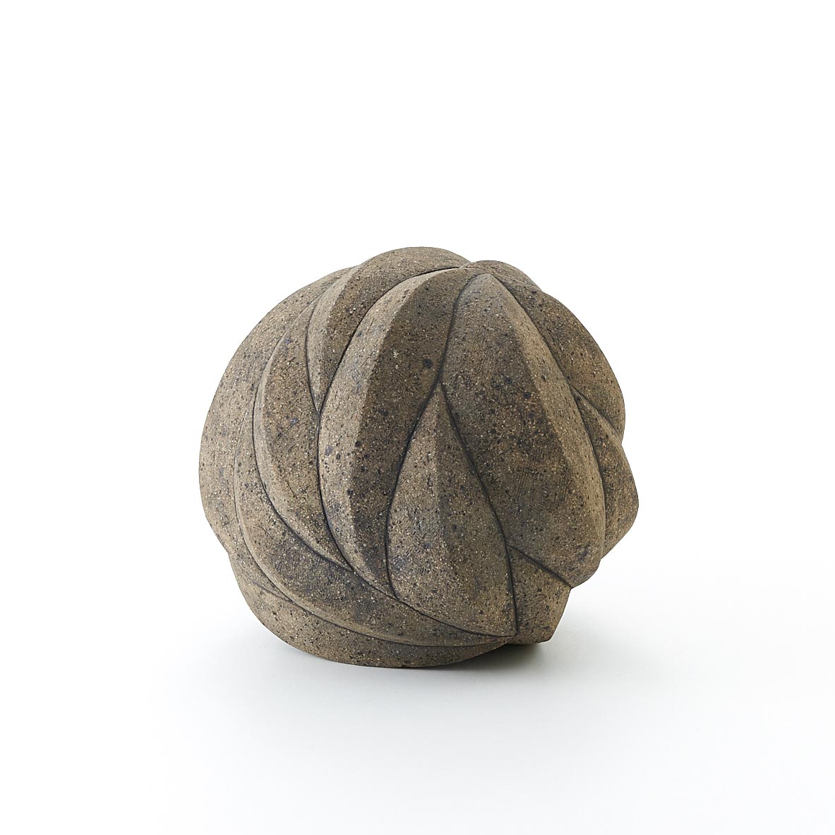 紐作りで成形し炭化で焼き締めた作品。造形美と焼き締めた風合いが魅力。存在感がありながらも落ち着いた佇まいです。
