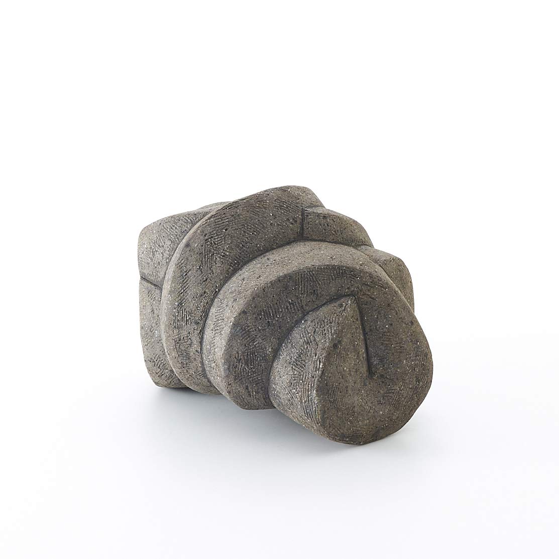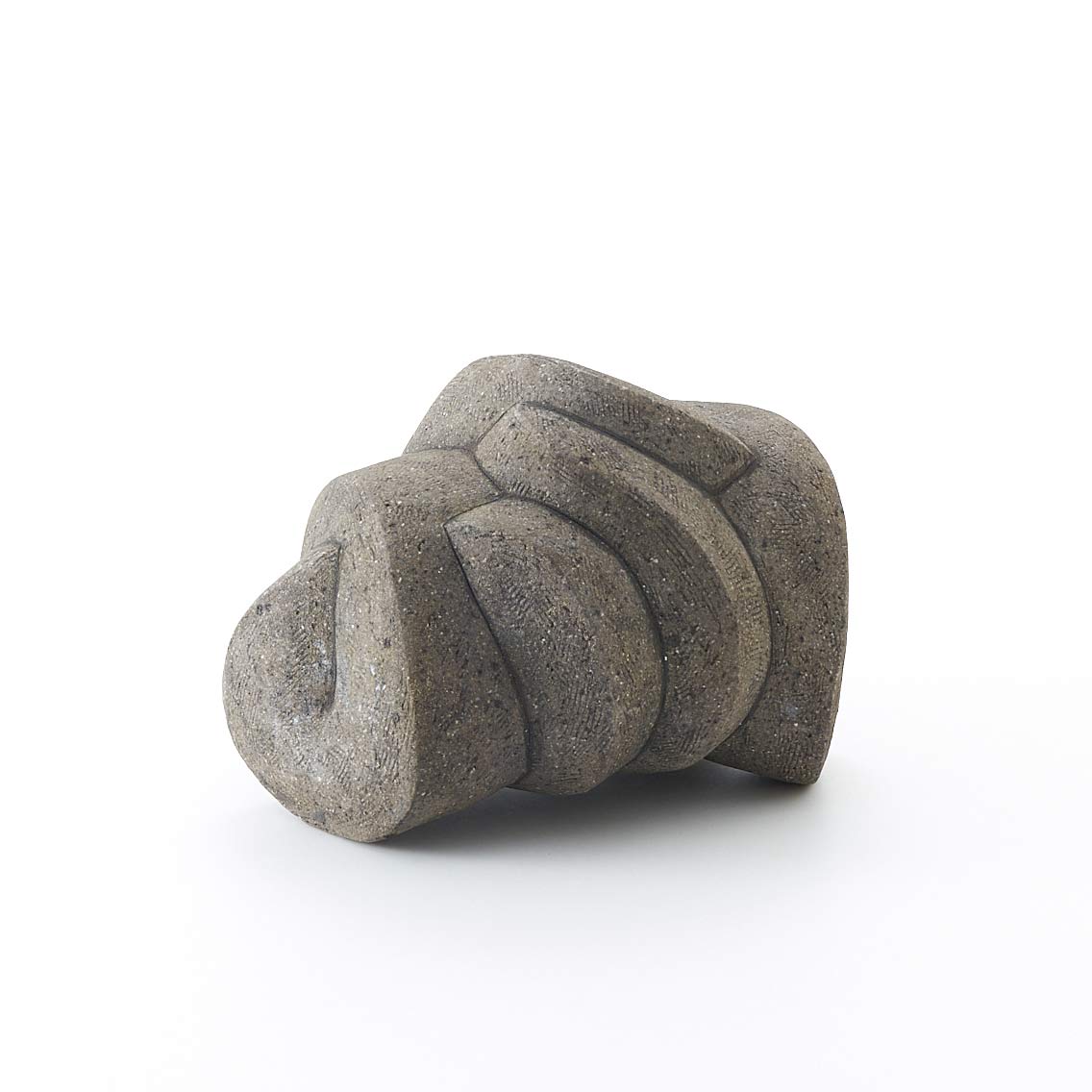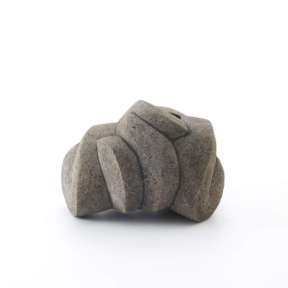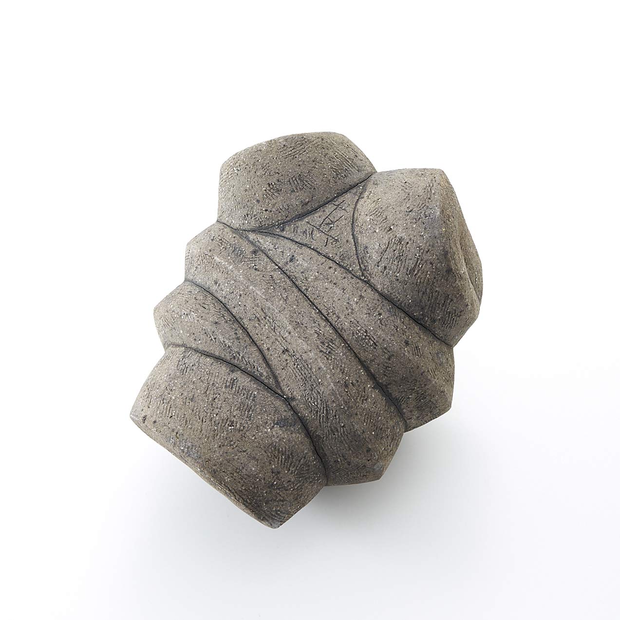 紐作りで成形し炭化で焼き締めた作品。造形美と焼き締めた風合いが魅力。存在感がありながらも落ち着いた佇まいです。
