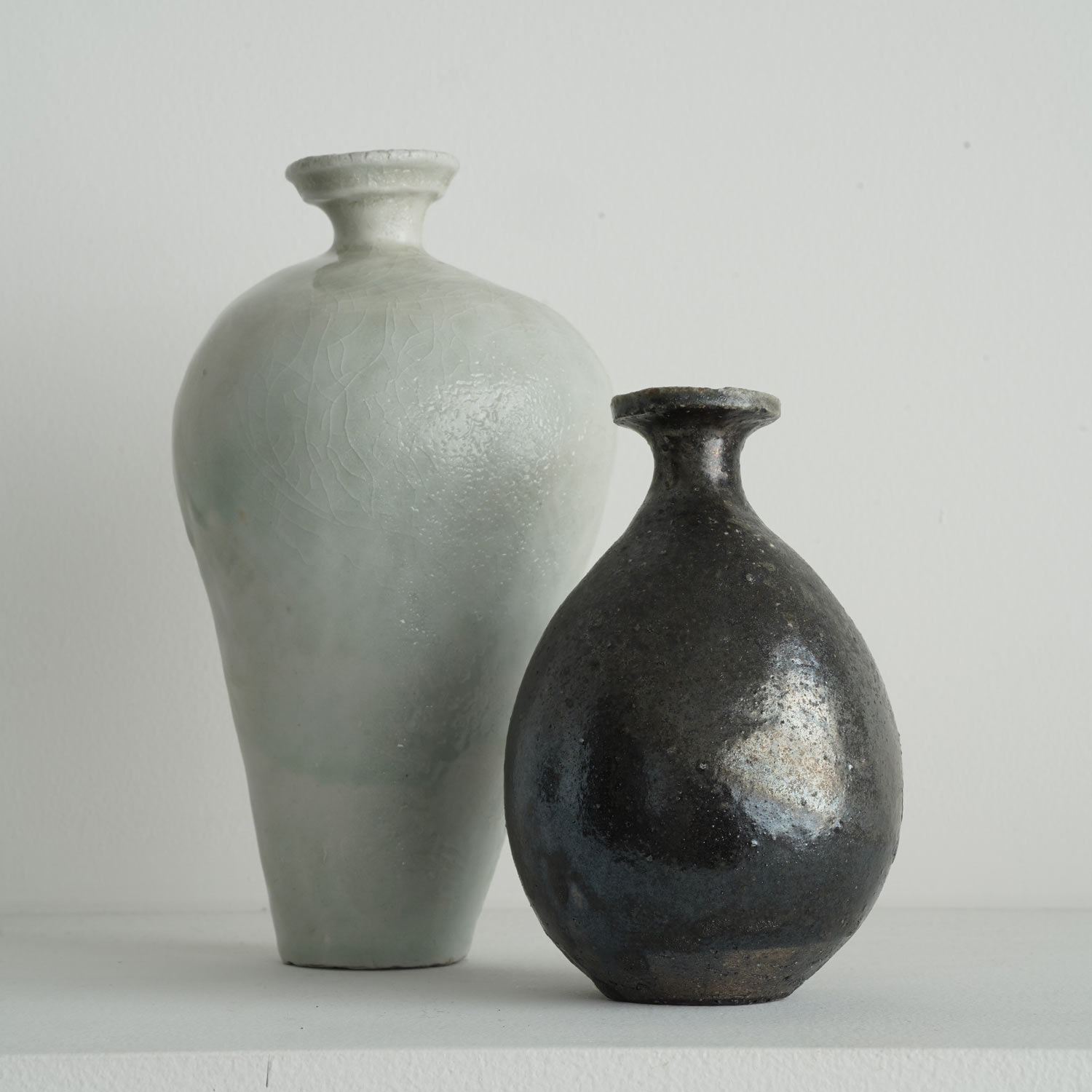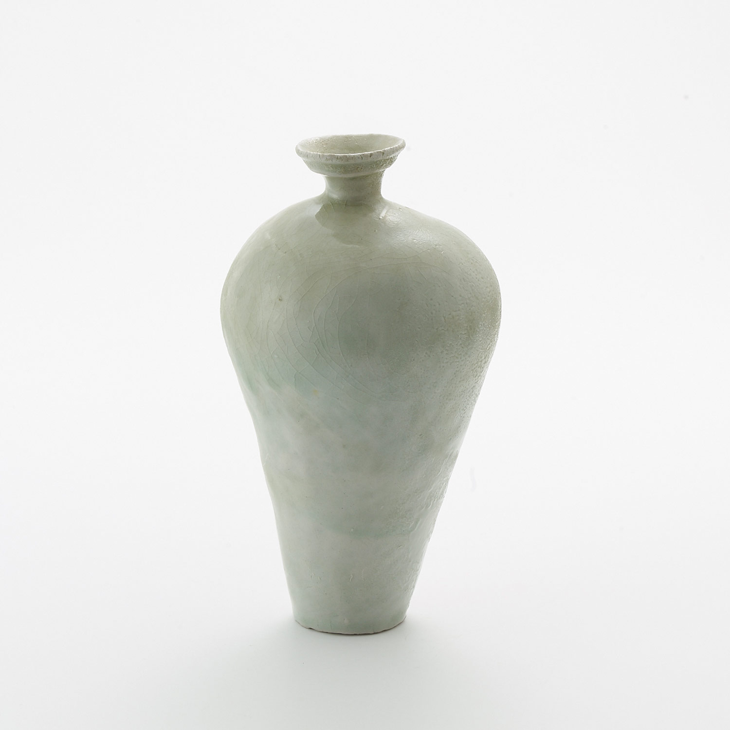 少しひしゃげた形と釉の溶け具合が美しい白磁の梅瓶。花器や酒器としてお使いいただけます。使用している磁器土は日本の陶石と韓国の土を理想とする李朝の風合いにするためタナカさんがブレンドしています。