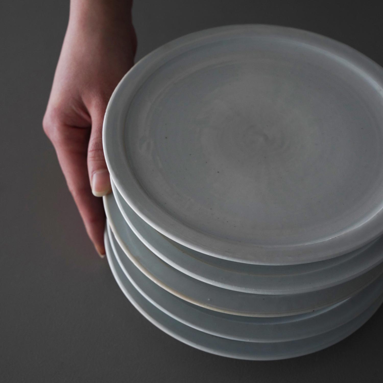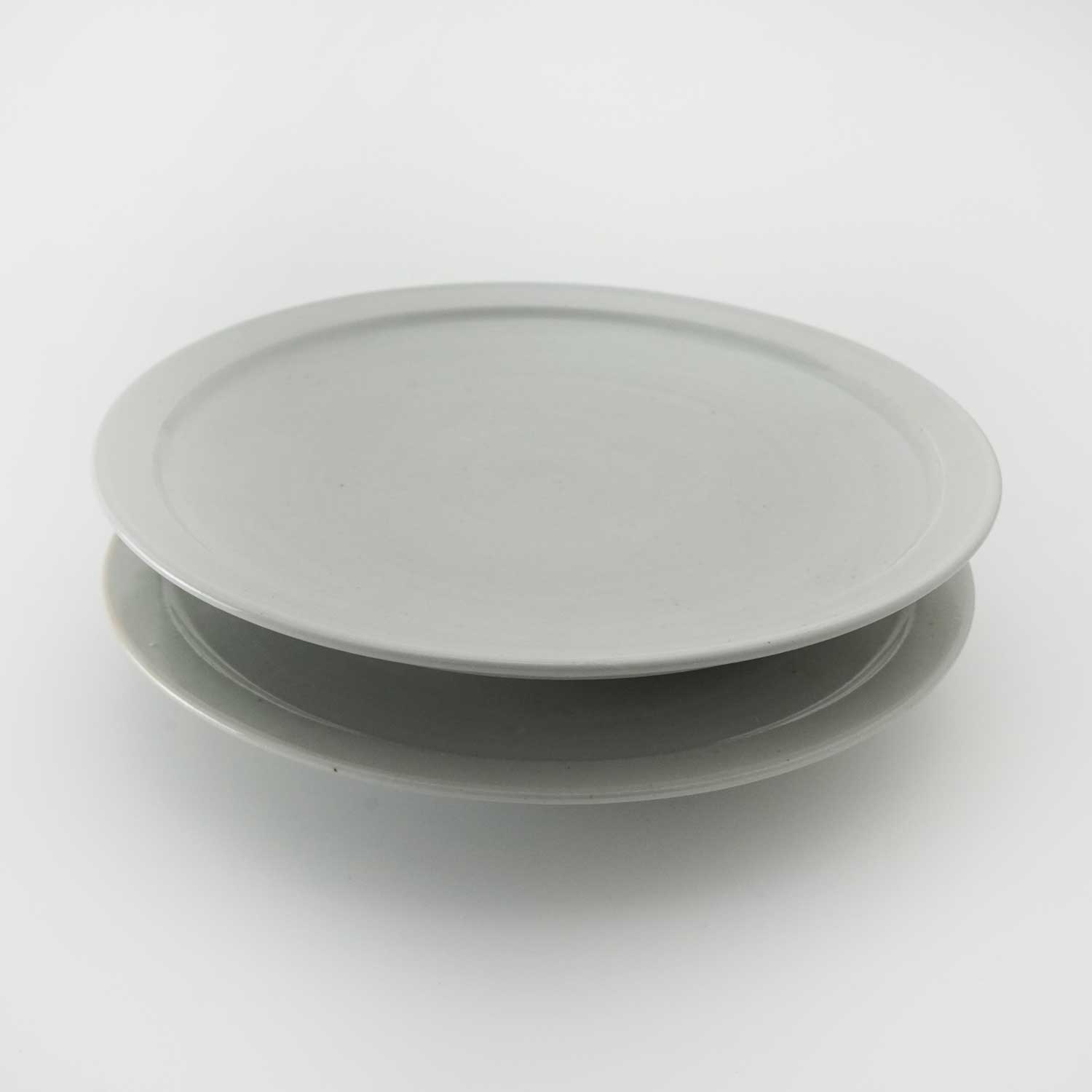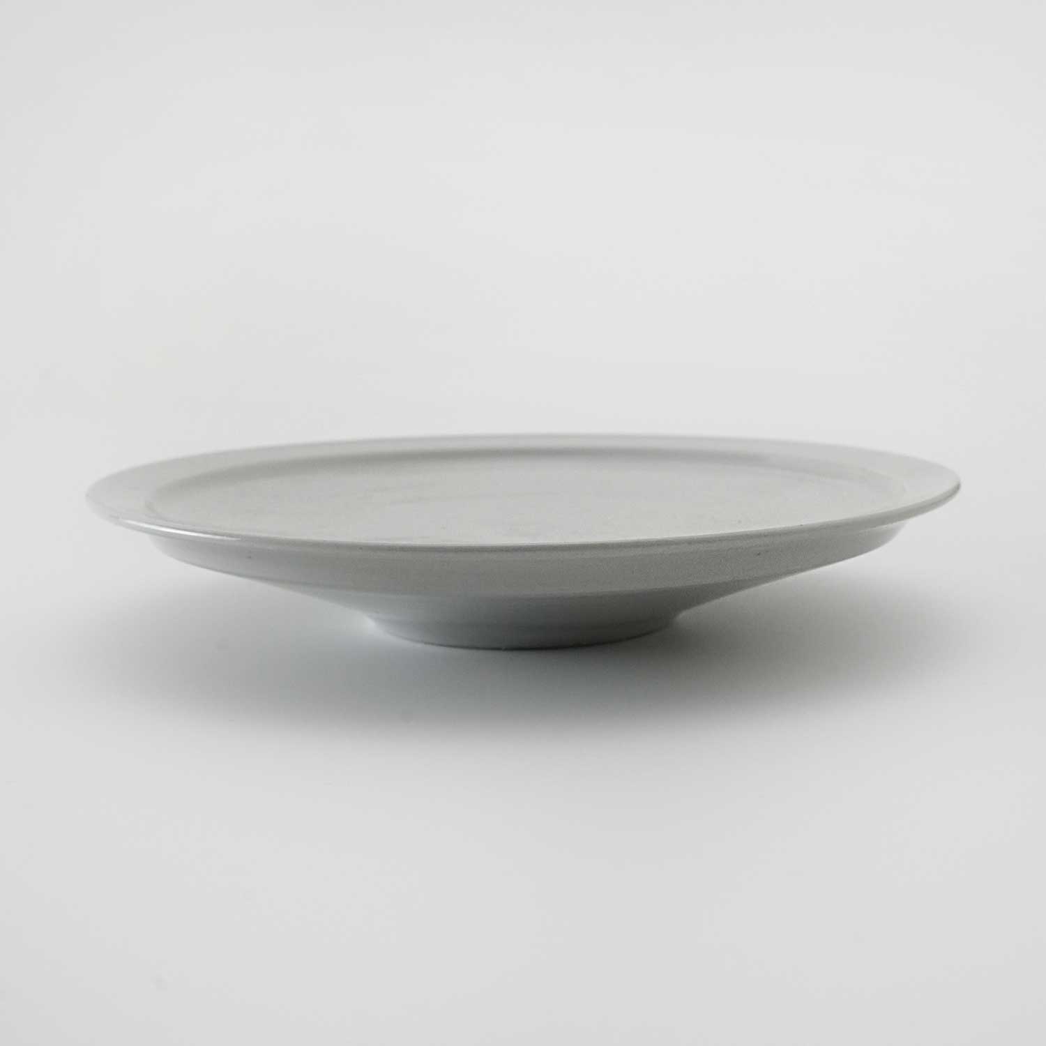 見込み部分がフラットな磁器の皿。横からのシルエットがとても上品です。厚みがあるため、重めです。どんな料理にも、シーンにも使える器です。