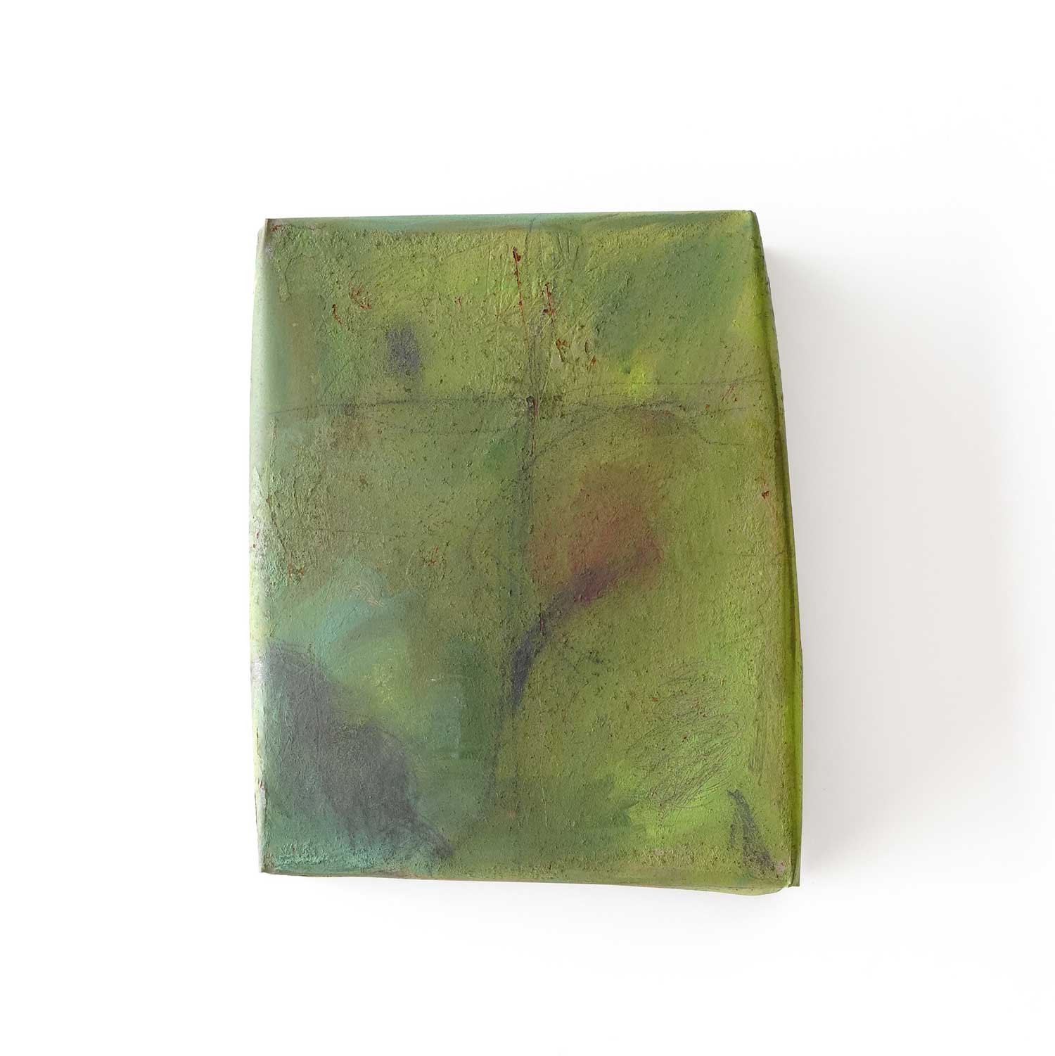 ペイントされた薄い鉄の板で作られた箱形の作品。薄らとクロスが浮かびます。置きでも壁掛けとしてもお楽しみいただけます。