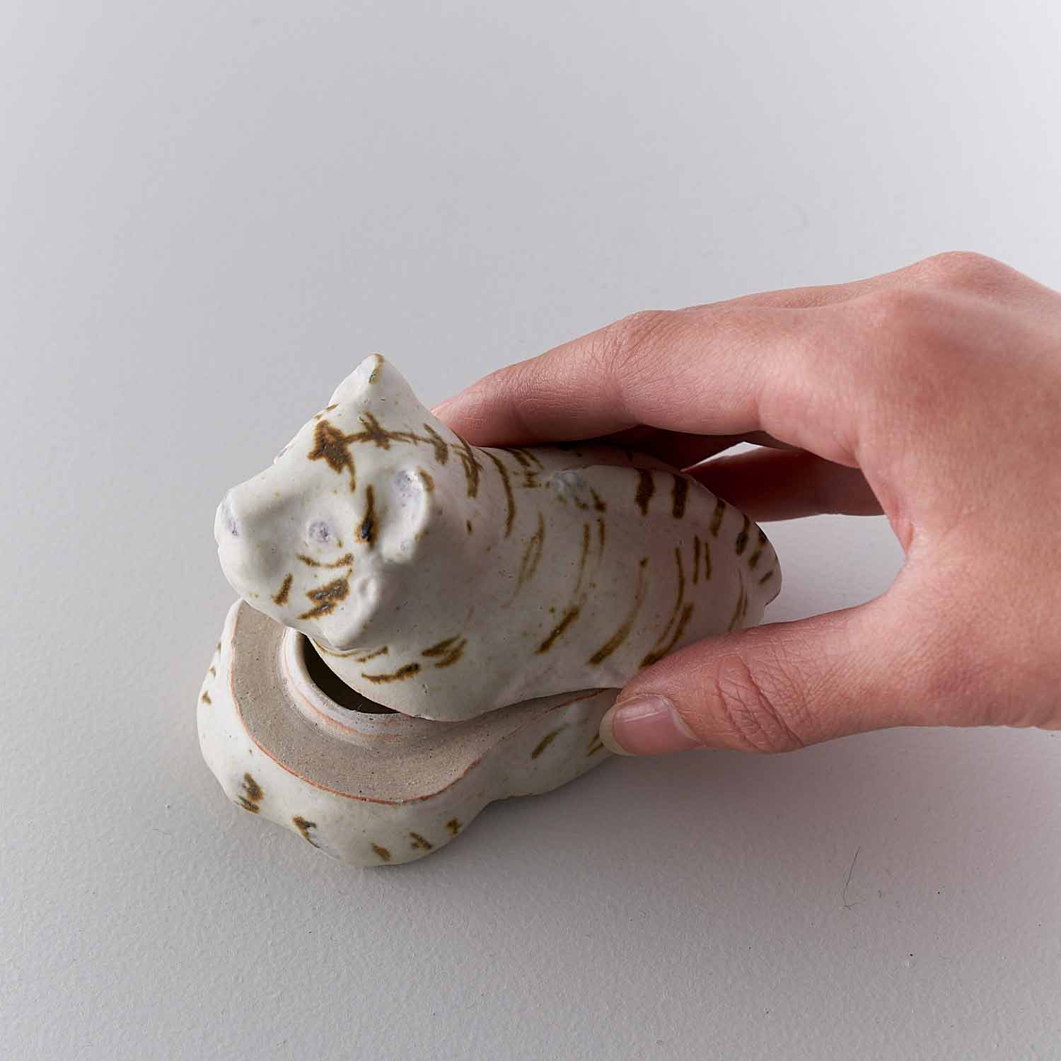 2022年の干支、寅の蓋物です。鉄絵で絵付けされた猫のような愛らしい寅です。手のひらに乗るサイズです。