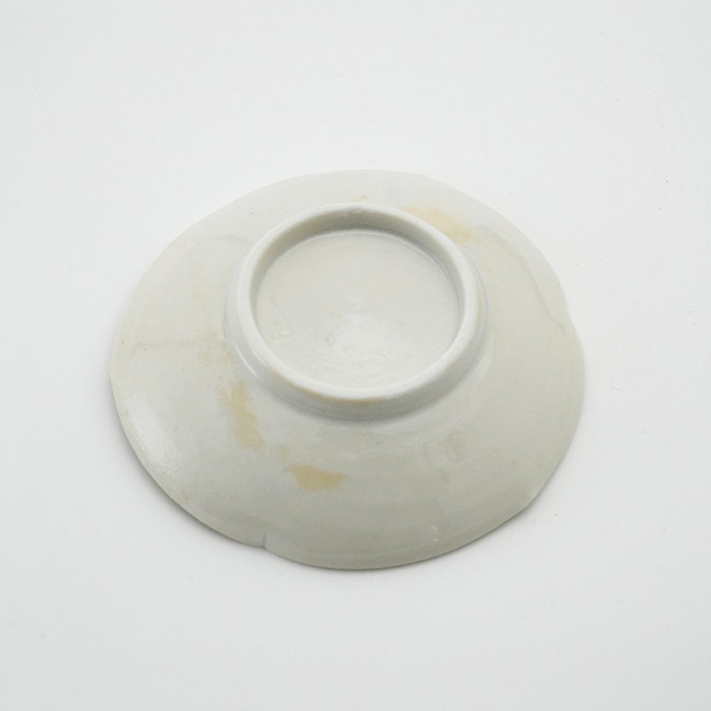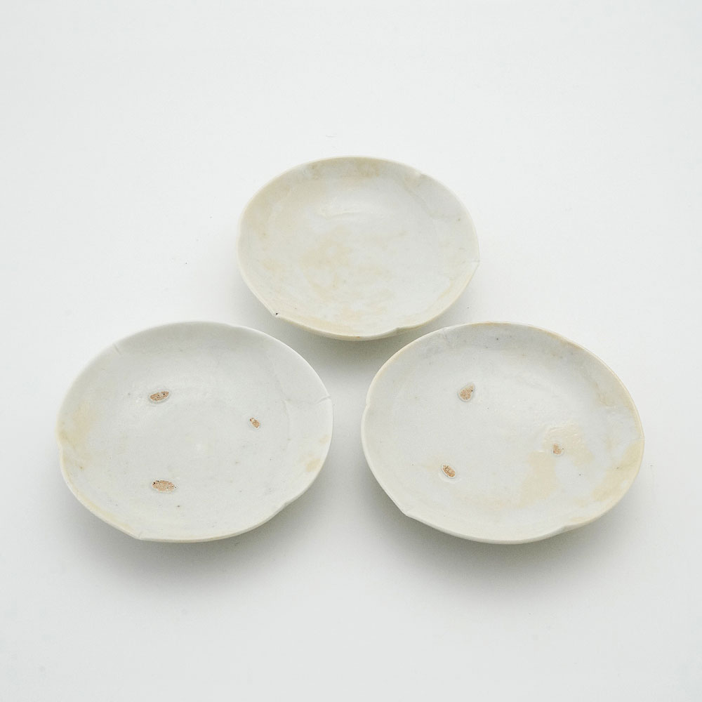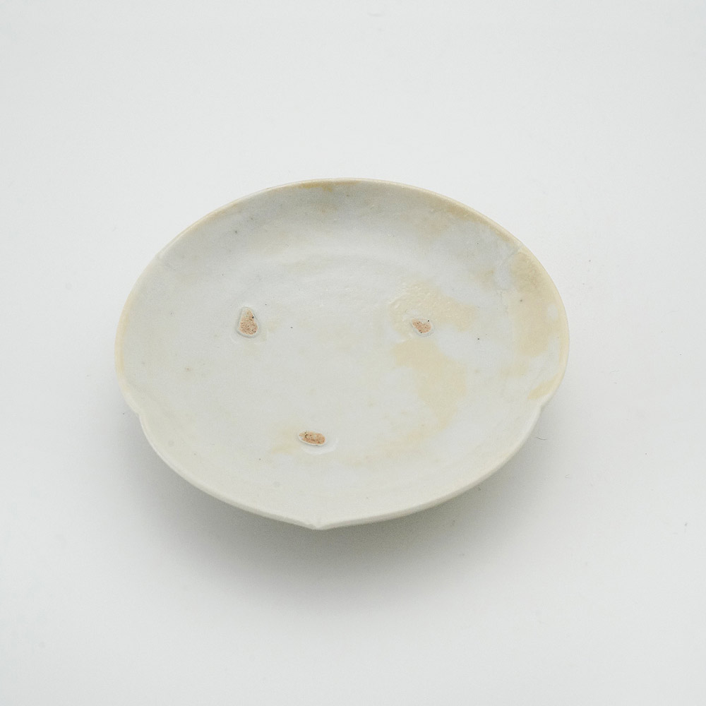 A small plate with a beautiful shimmering blue-white porcelain glaze, with six bumps on the edge with a spatula.You can't choose whether it has a spur mark or not when it is piled up.
