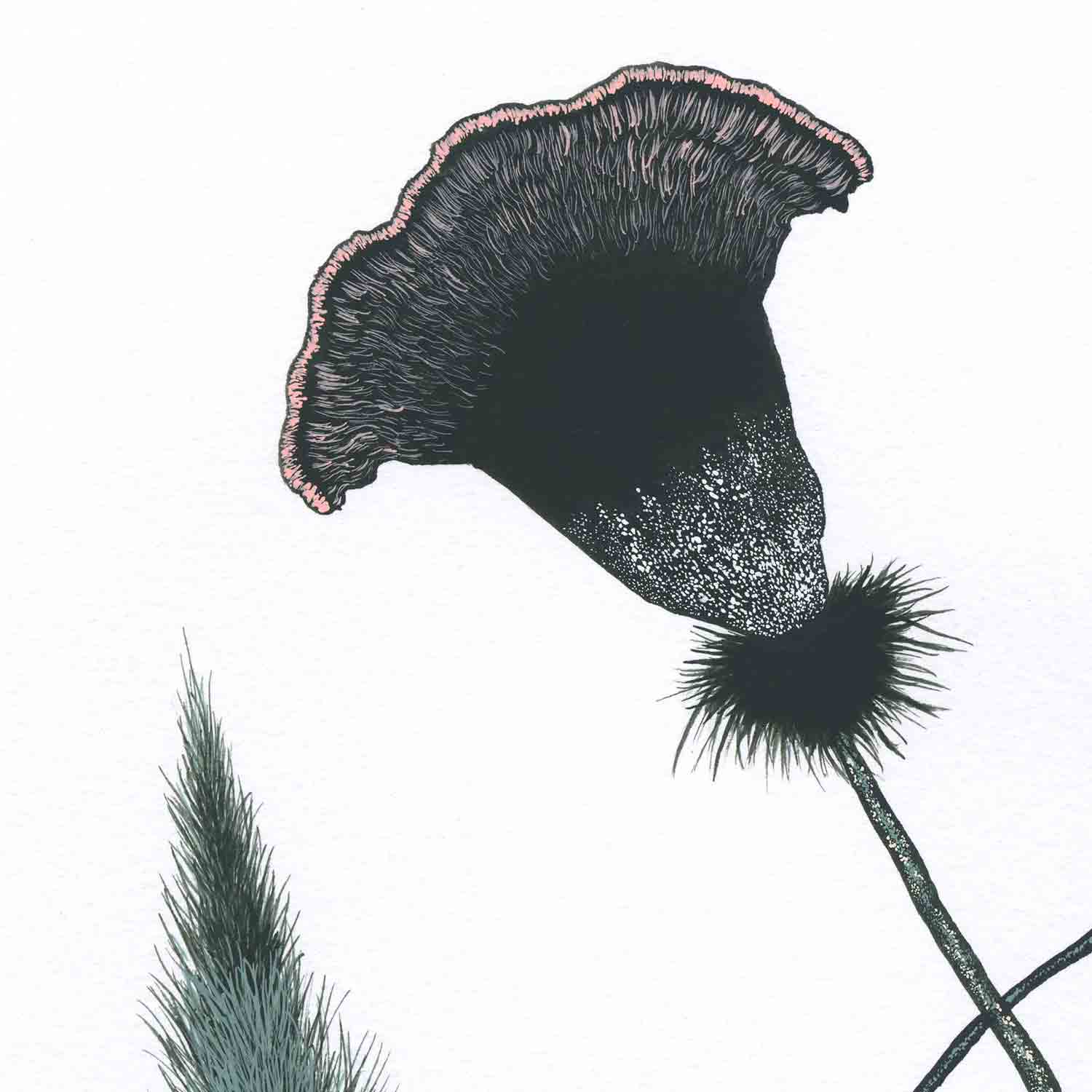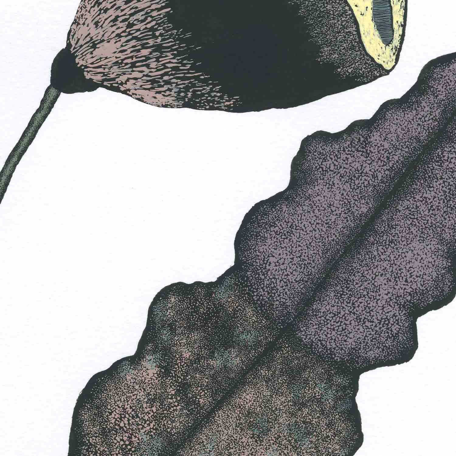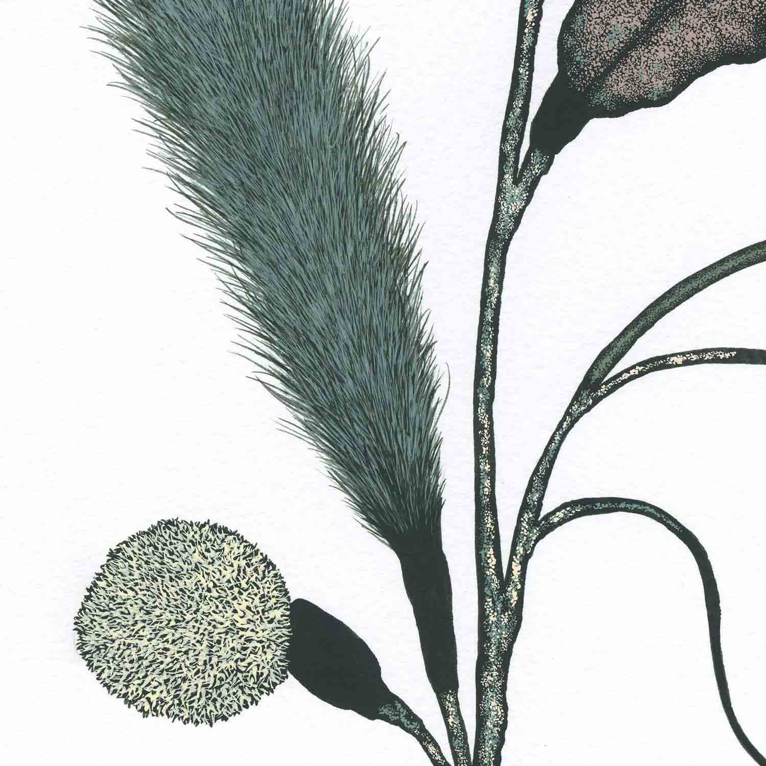 A non-existent plant, seductively rendered with precision and boldness. The work itself is approximately A3 in size and framed in white wood.