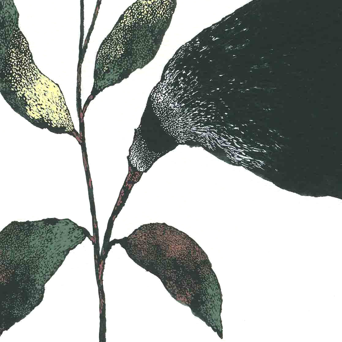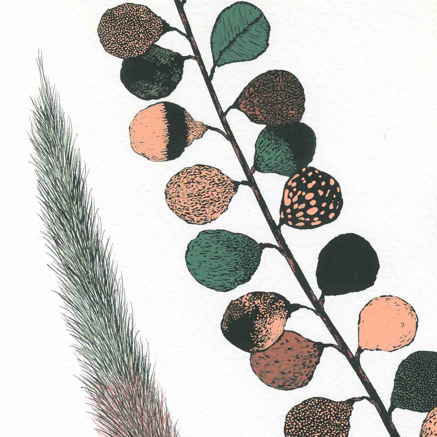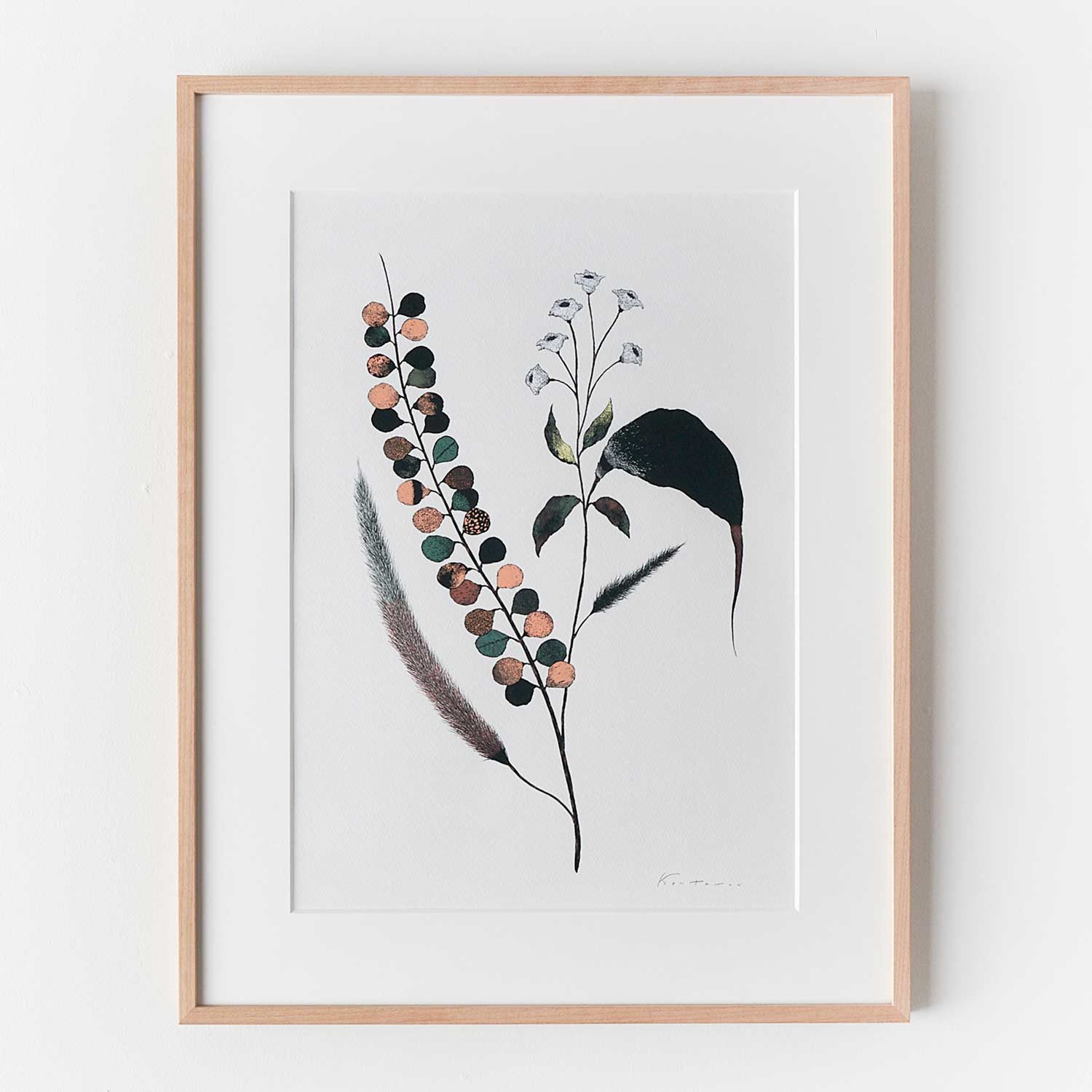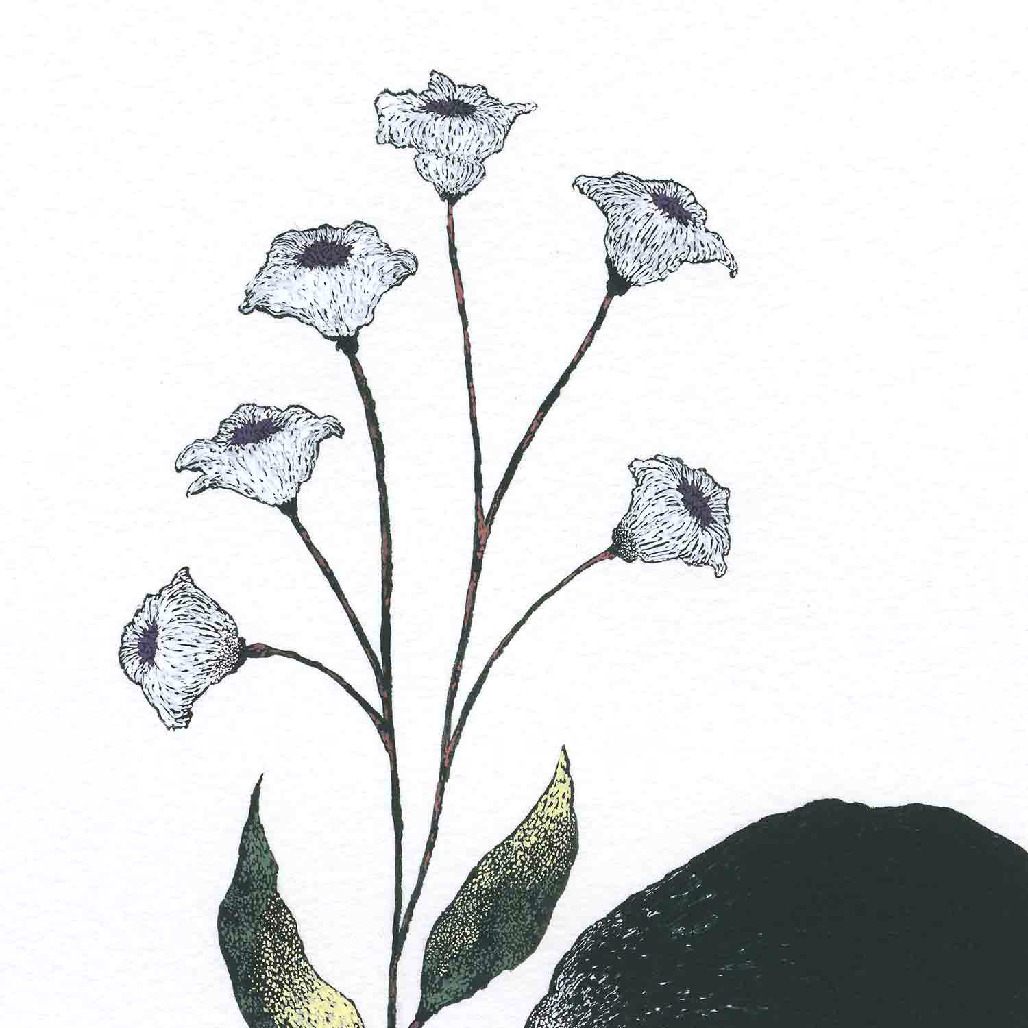 A non-existent plant, seductively rendered with precision and boldness. The work itself is approximately A3 in size and framed in white wood.
