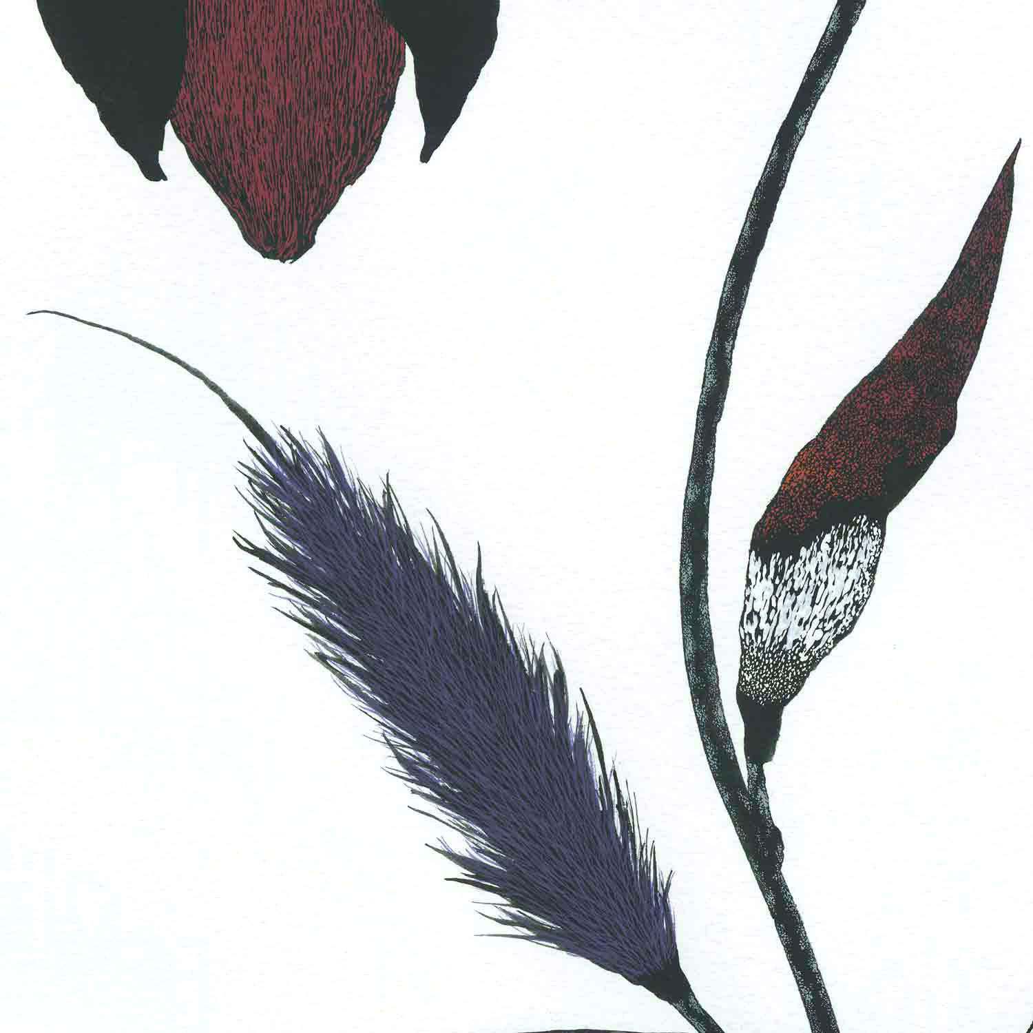 A non-existent plant, seductively rendered with precision and boldness. The work itself is approximately A3 in size and framed in white wood.