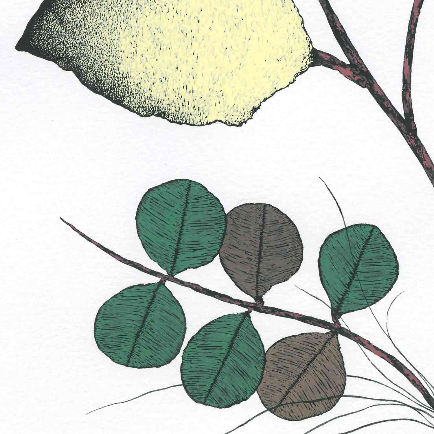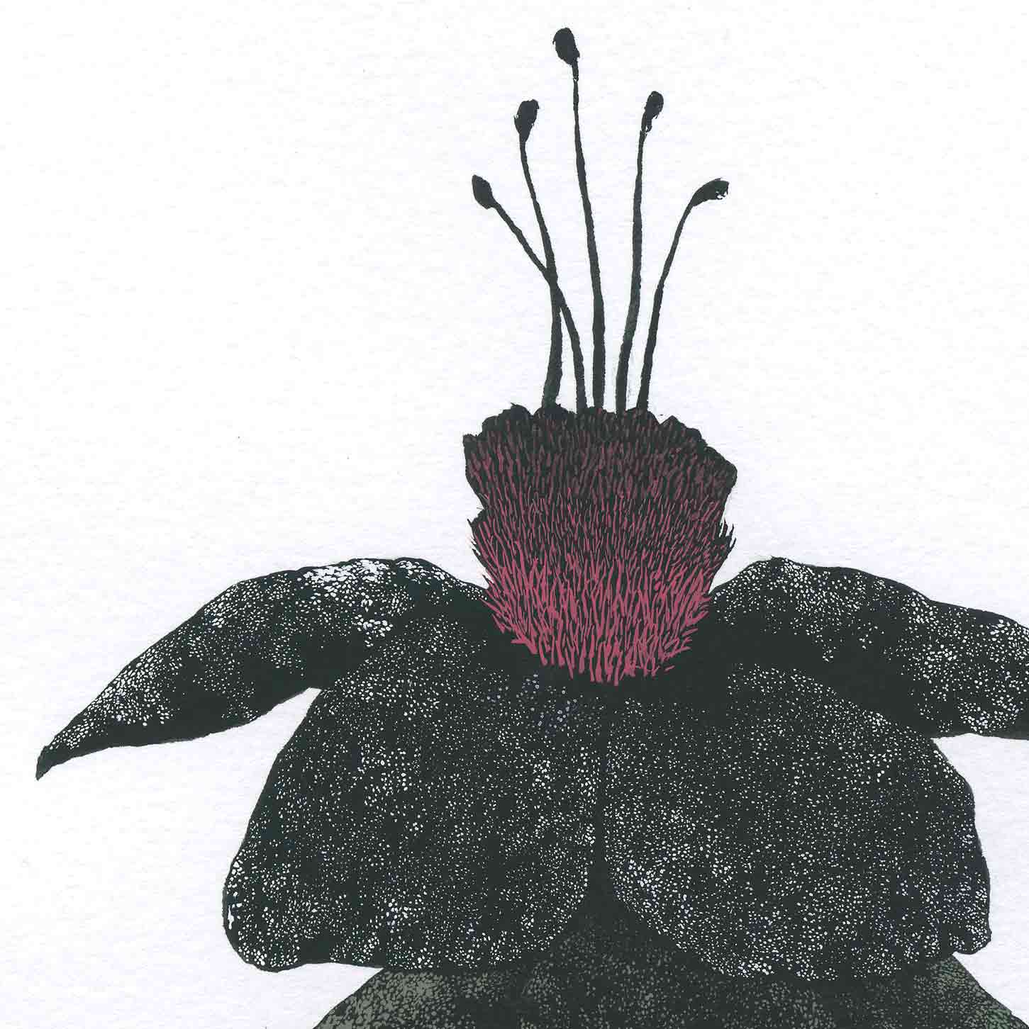 A non-existent plant, seductively rendered with precision and boldness. The work itself is approximately A3 in size and framed in white wood.