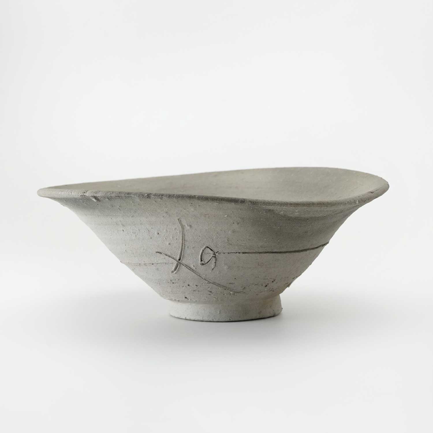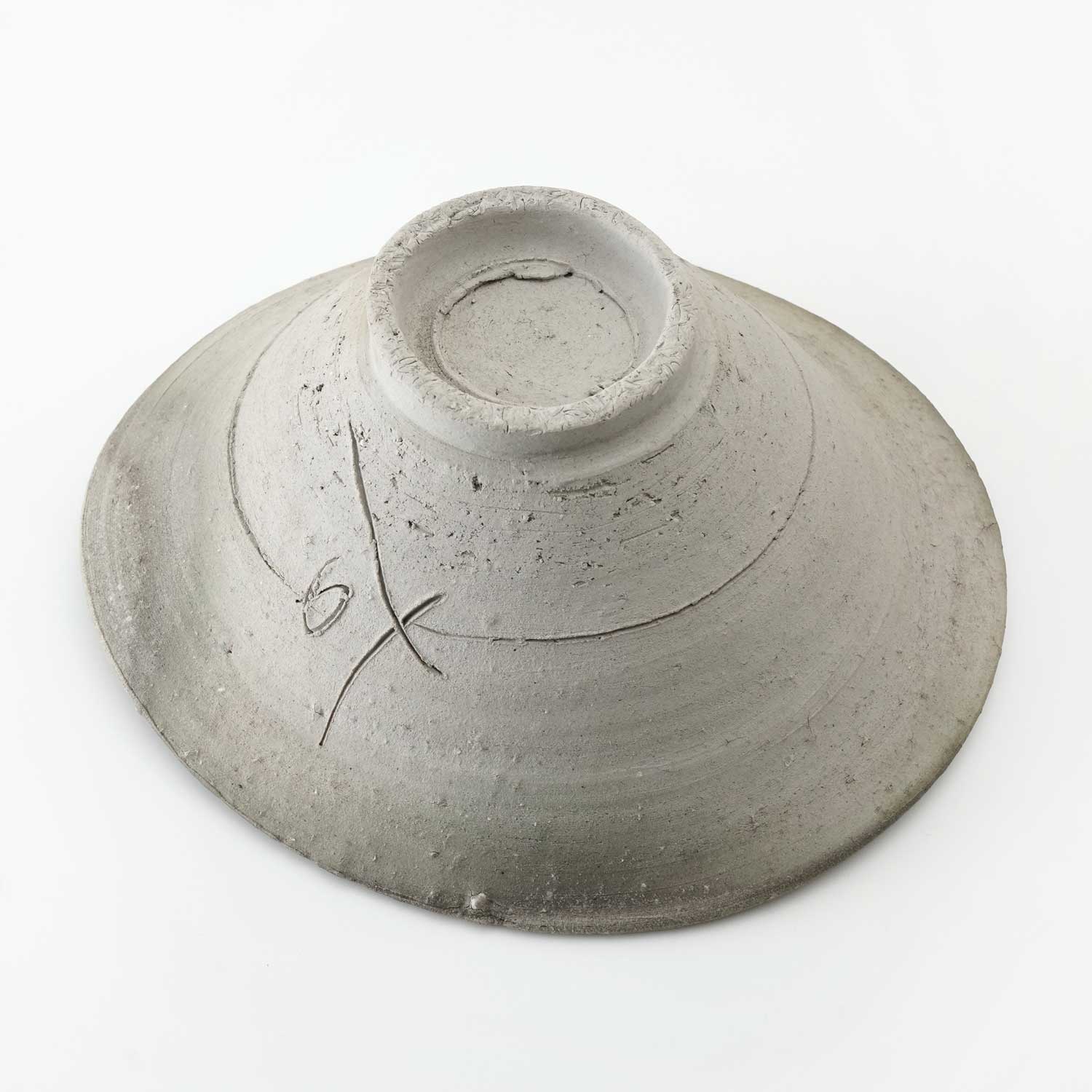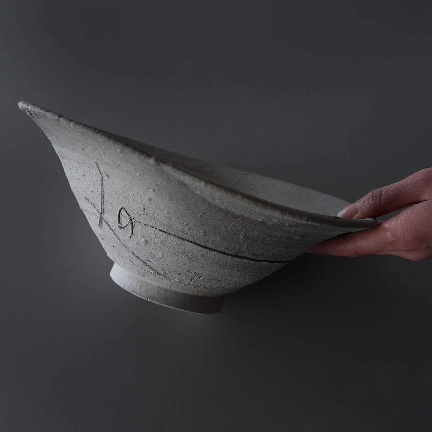 須恵の大鉢。轆轤で引かれた揺らぎのある形と胴に走る大胆な線描きが美しい作品。 使えば使うほど、滑らかさと艶が増します。清水さん自ら築窯した穴窯で焼成しています。