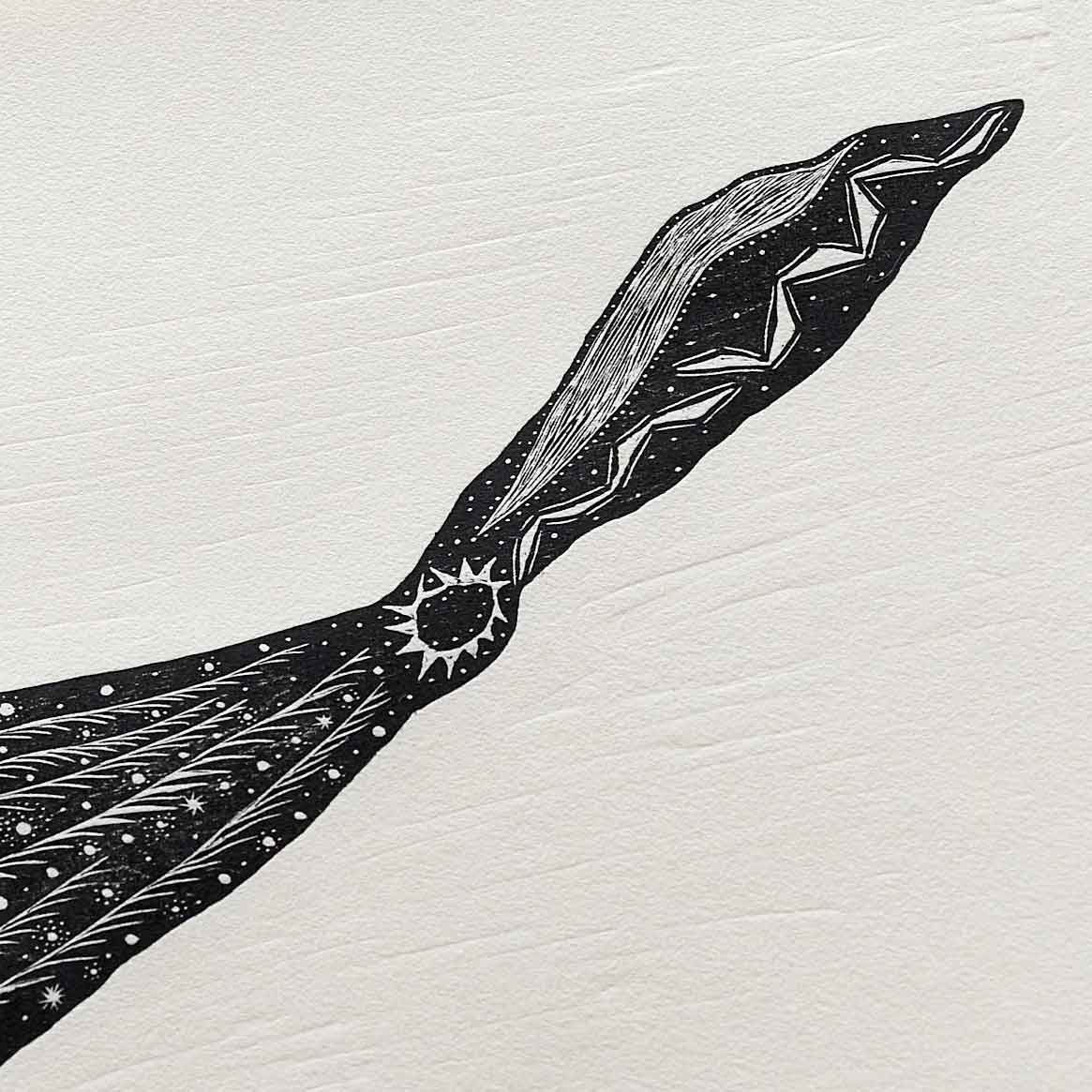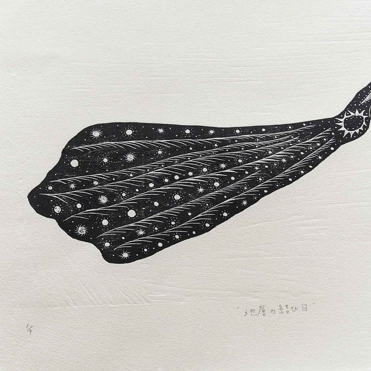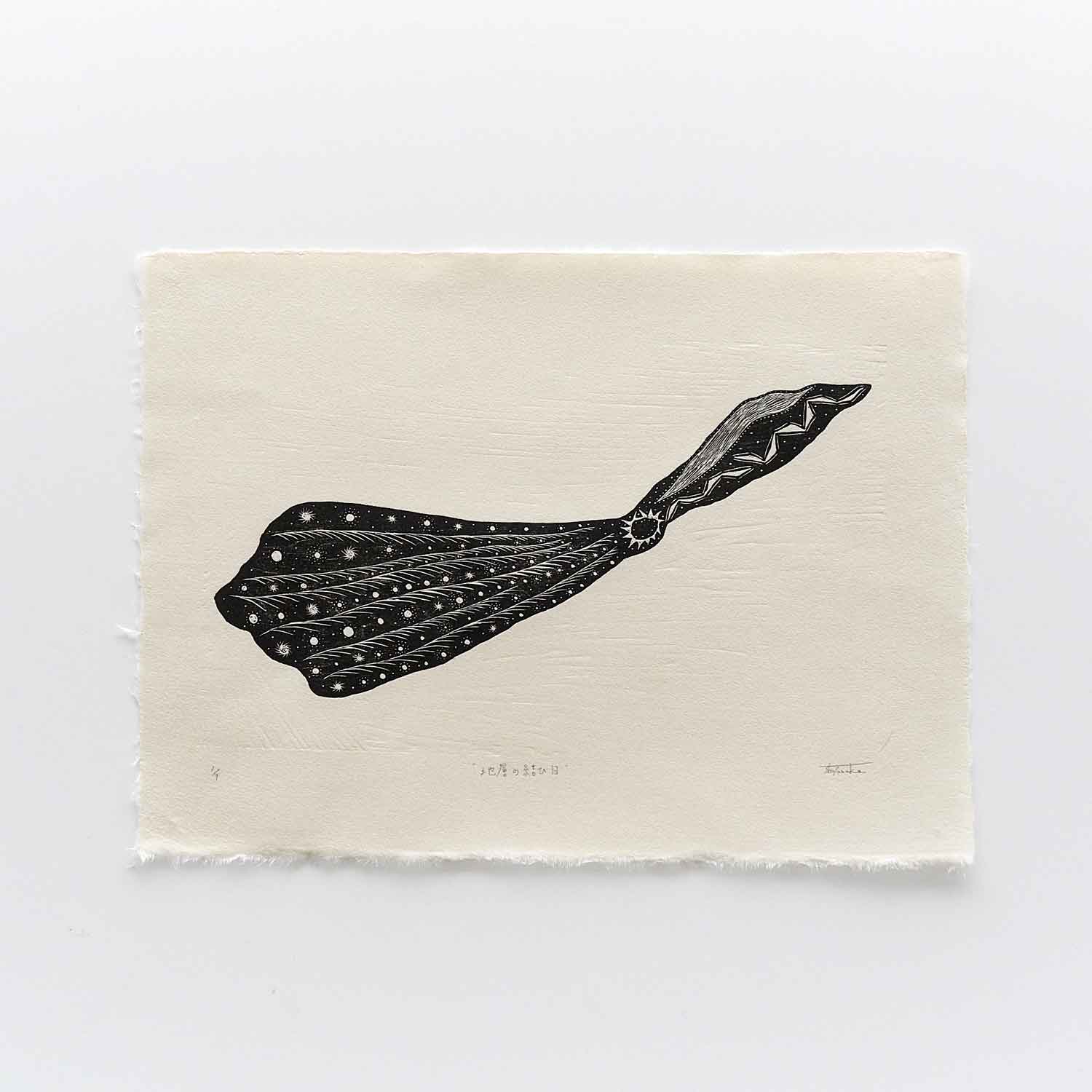 電熱ペンで版木を焦がして彫っています。茨城県常陸大宮市で生産されている和紙を使用しています。限定部数7枚。作品の発送はご購入から約2週間後を予定しています。