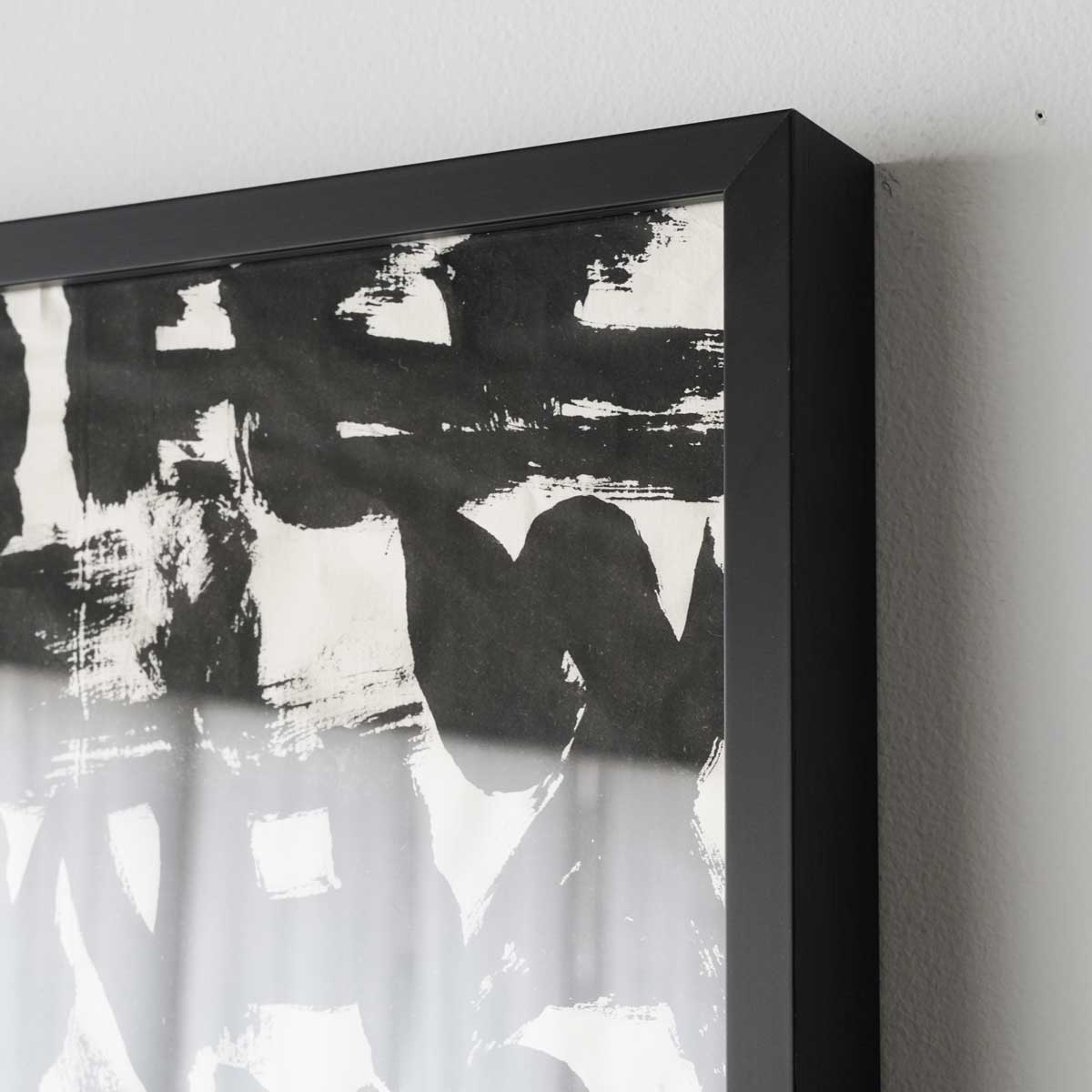 This piece is framed in a black aluminum frame. It is a stylish piece with tightly written English text. The margins also work well.