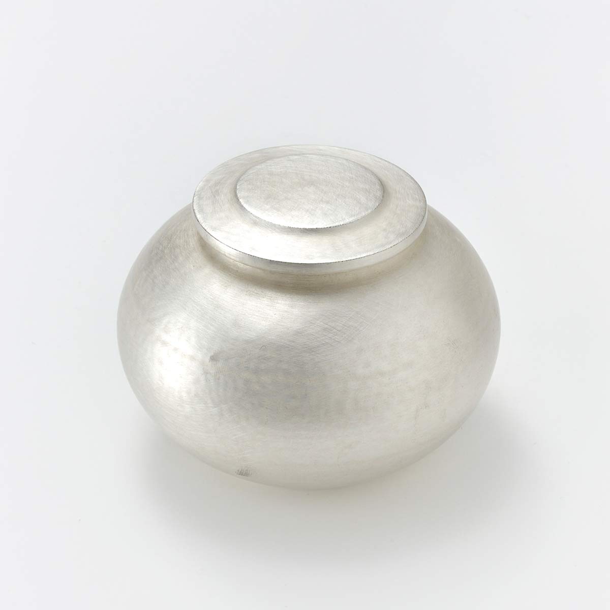 This is a neat and beautifully silver-plated lidded object. It has an airy feel that exudes from careful work. The inside has a transparent glaze.