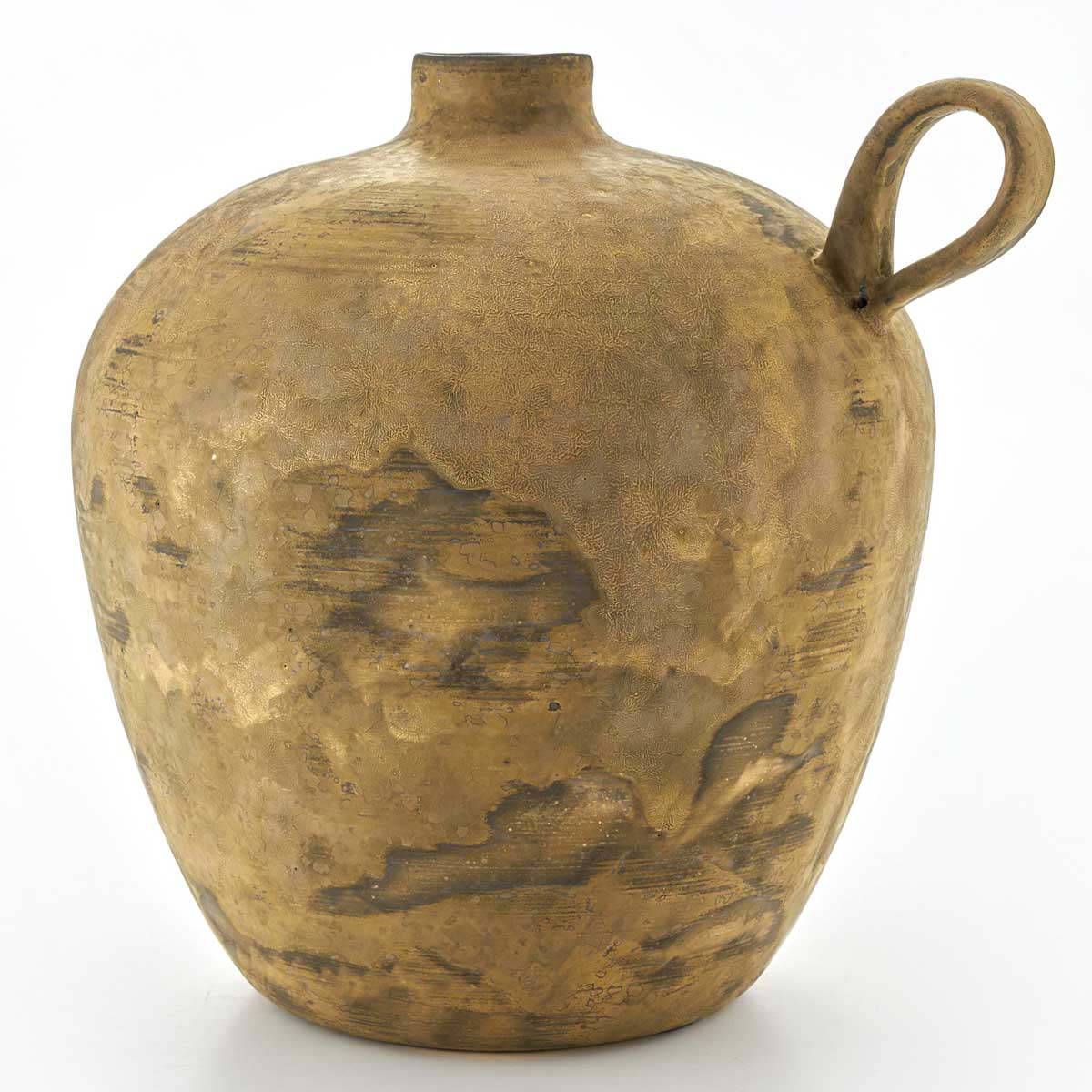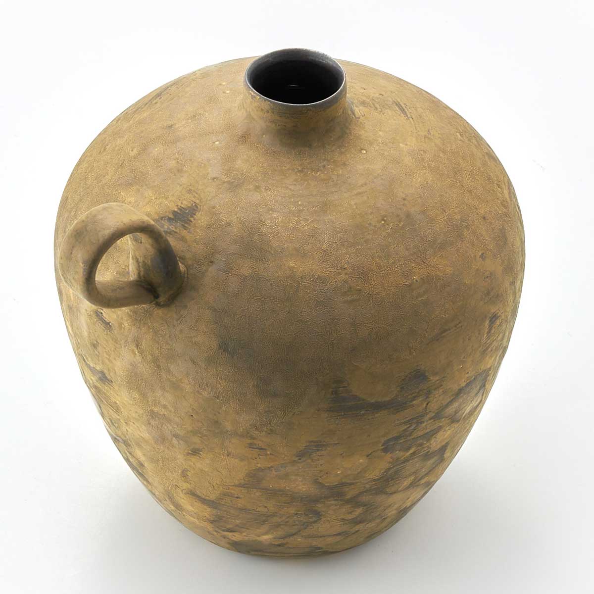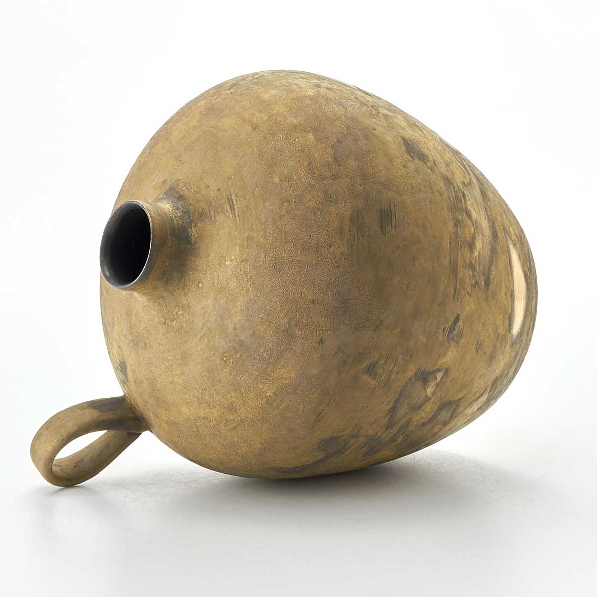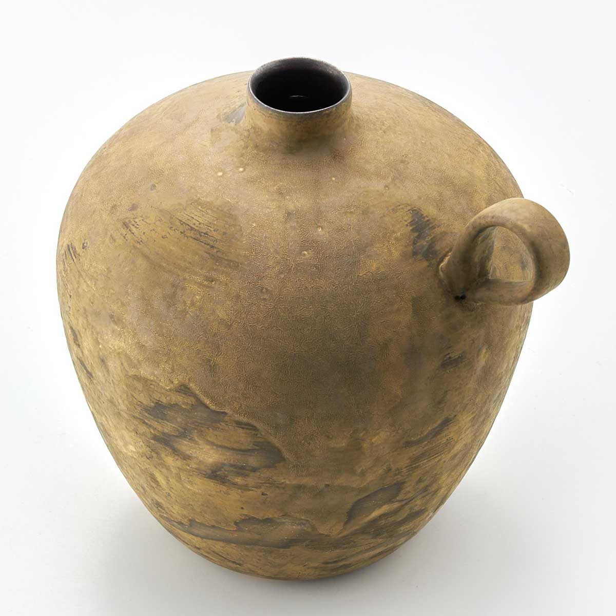 マットな質感の金彩の壺です。さまざまな金彩の質感を楽しめます。小さな口と取手がポイントになっています。