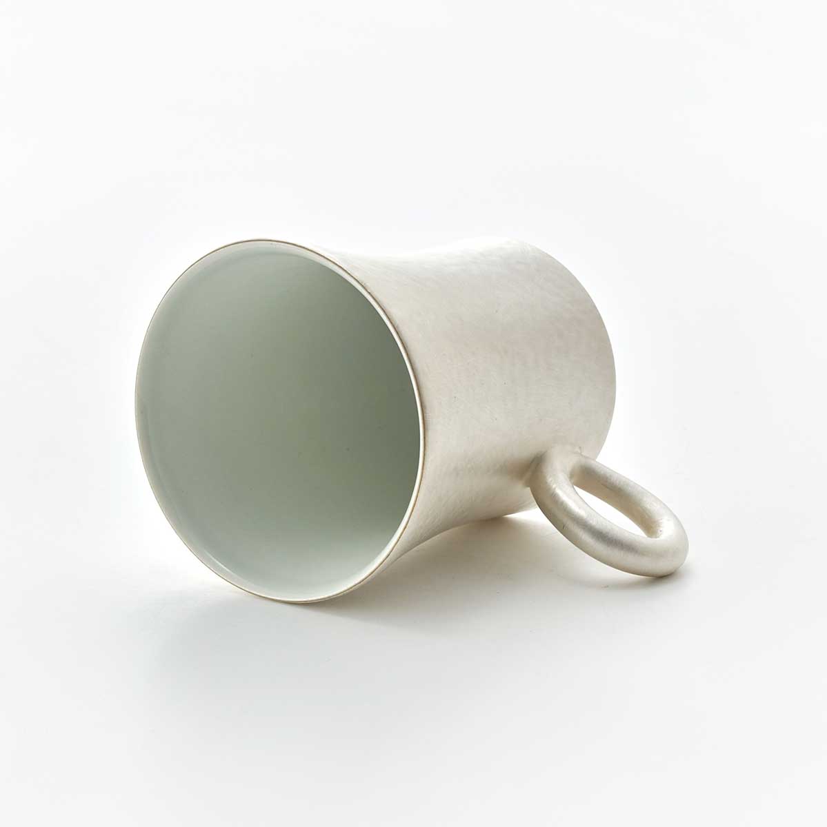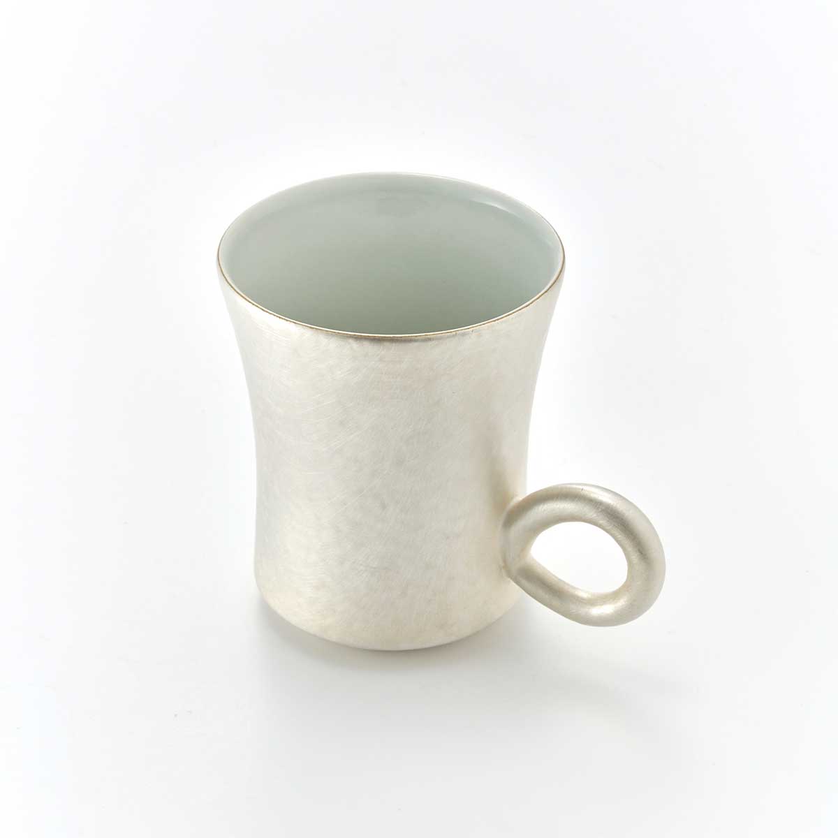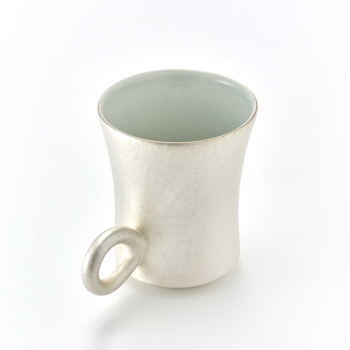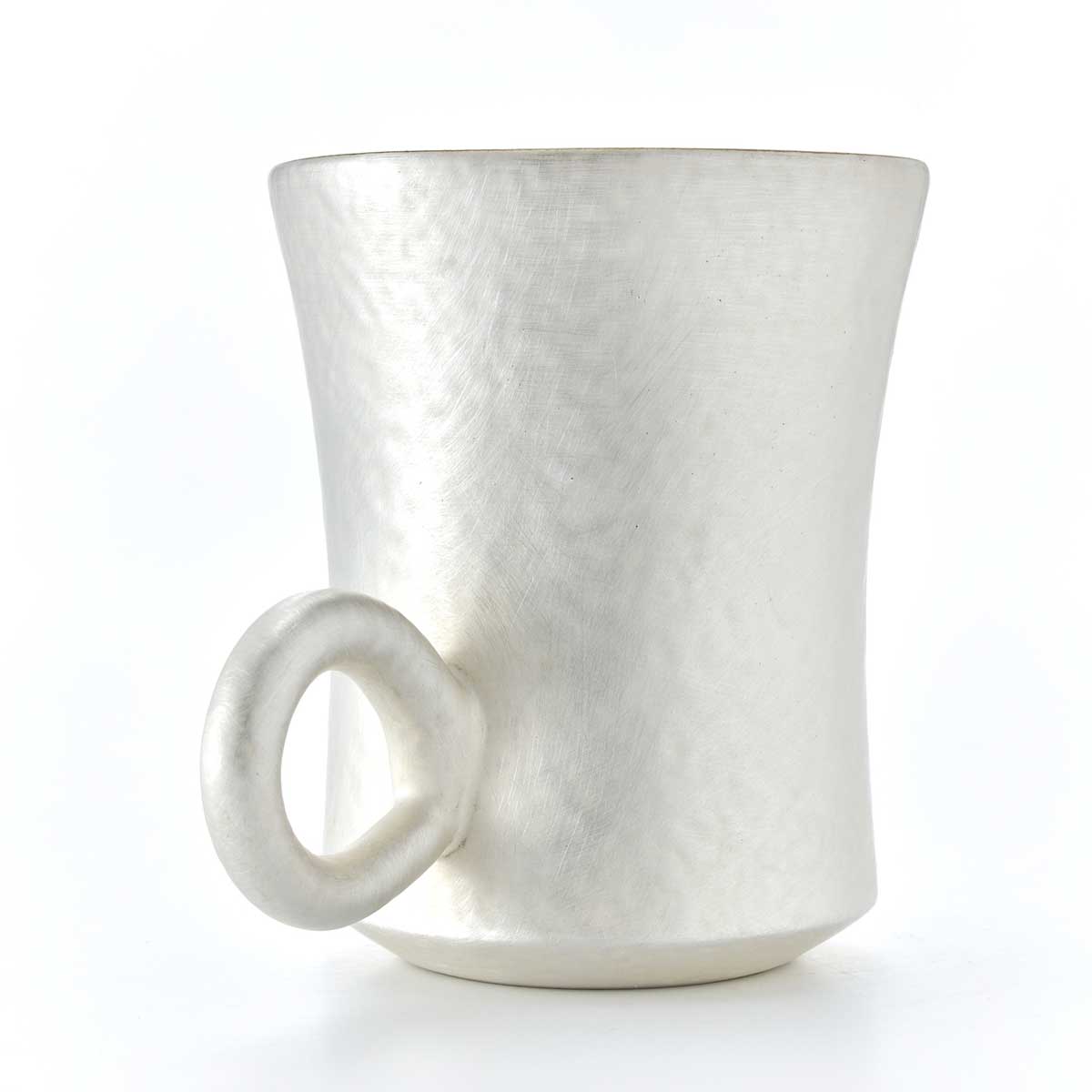 *A voluminous cup with silver coloring. The slightly lowered handle is exquisite and cute. The silverware will change color from silver to brown to black over time. We hope you will enjoy the process as well. If you want to keep it in its current state, we recommend cleaning it with an eraser or melamine sponge. Please do not use metal polish to clean the pieces, as it will damage the texture.