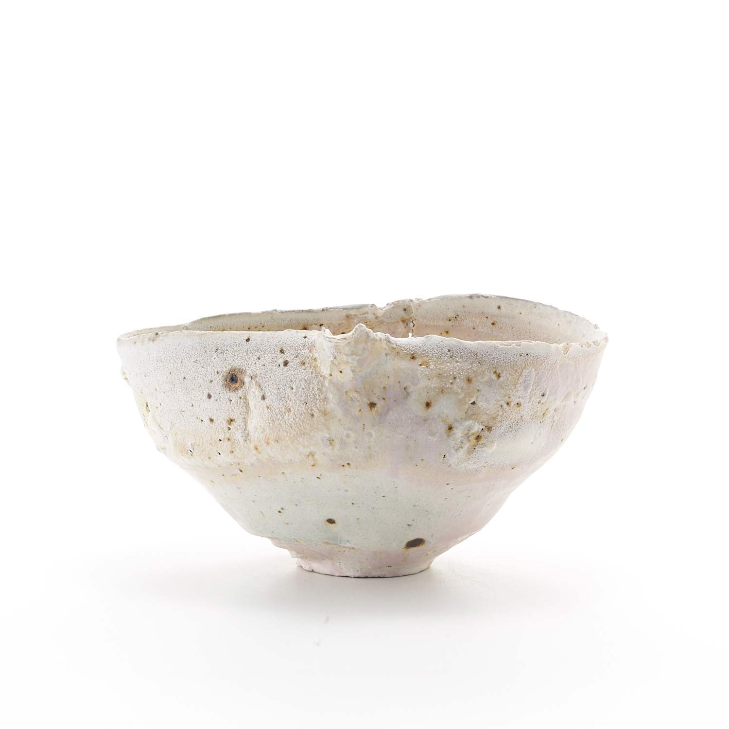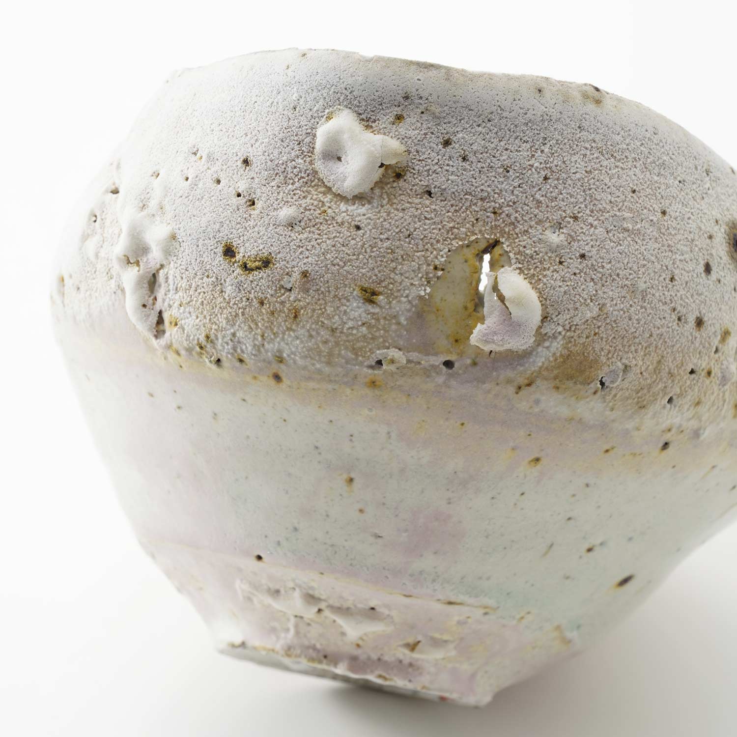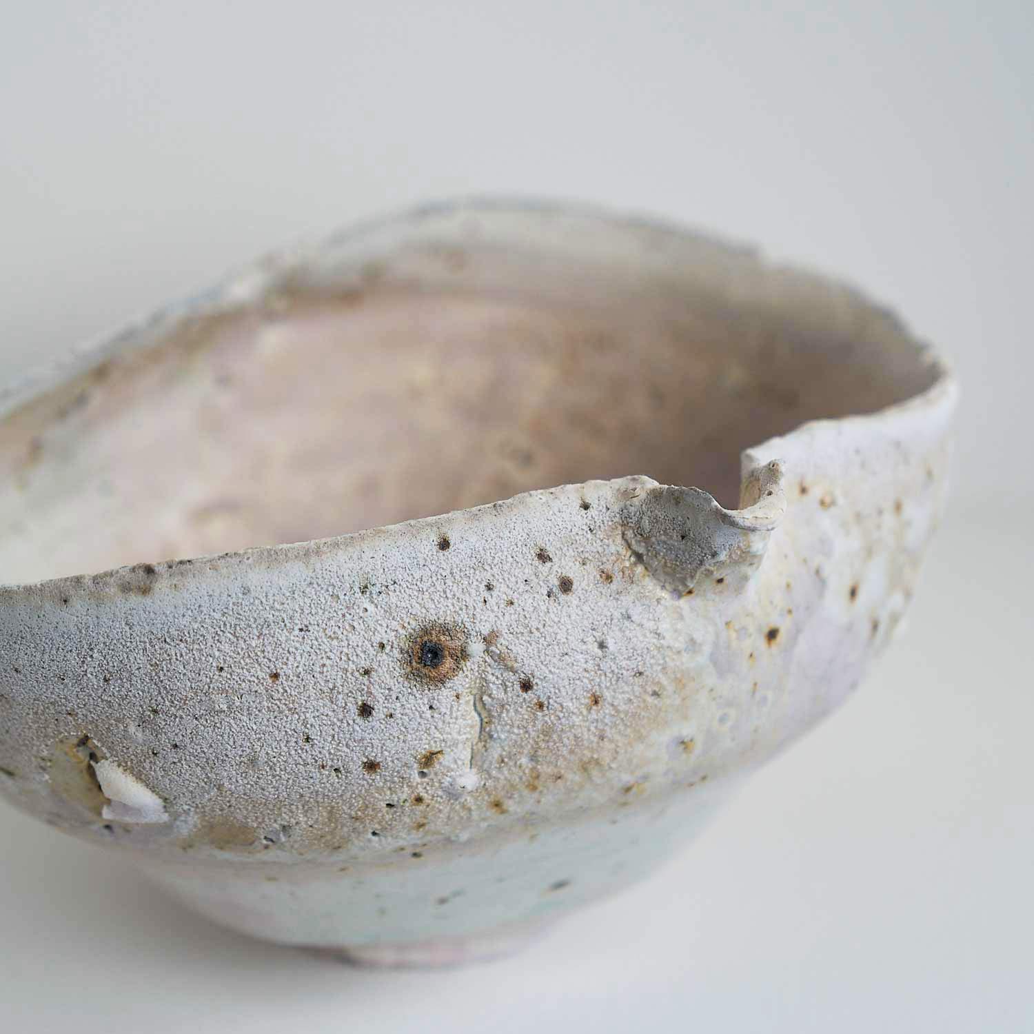 The gradation of pink, blue, and white that is created by wood-fired kiln firing is very beautiful. The piece has been torn during firing, so it cannot be used as a vessel, but is recommended as an object.