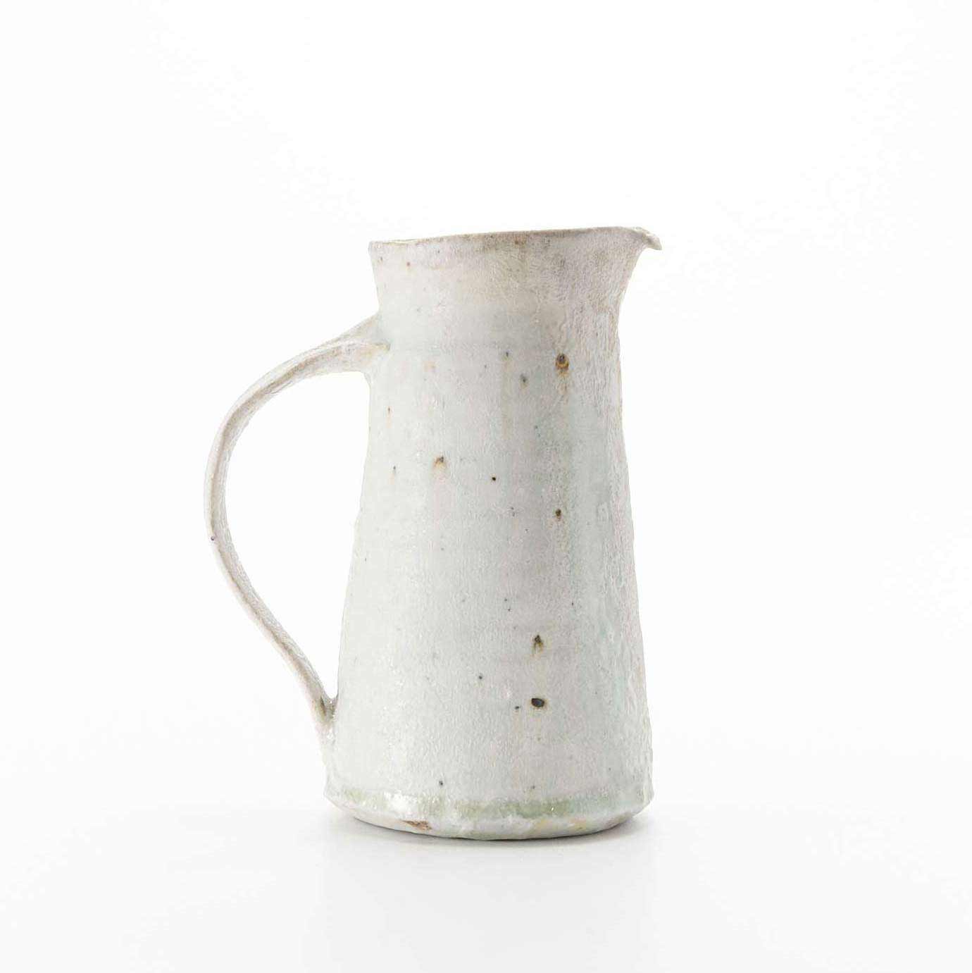 薪窯で焼成したピッチャーです。釉薬の流れが美しいです。小さな口のバランスがやさしい形です。花器としての使用もおすすめです。