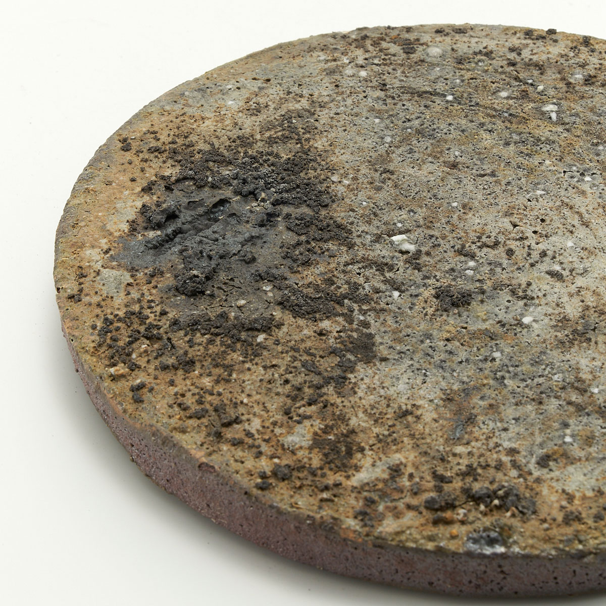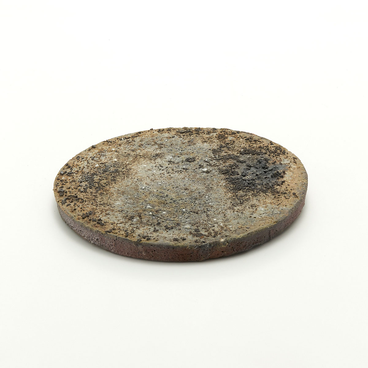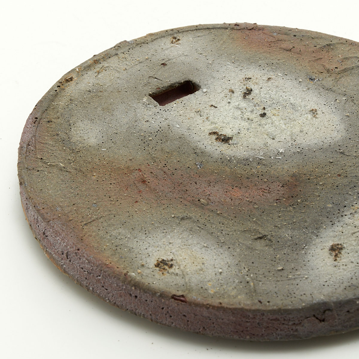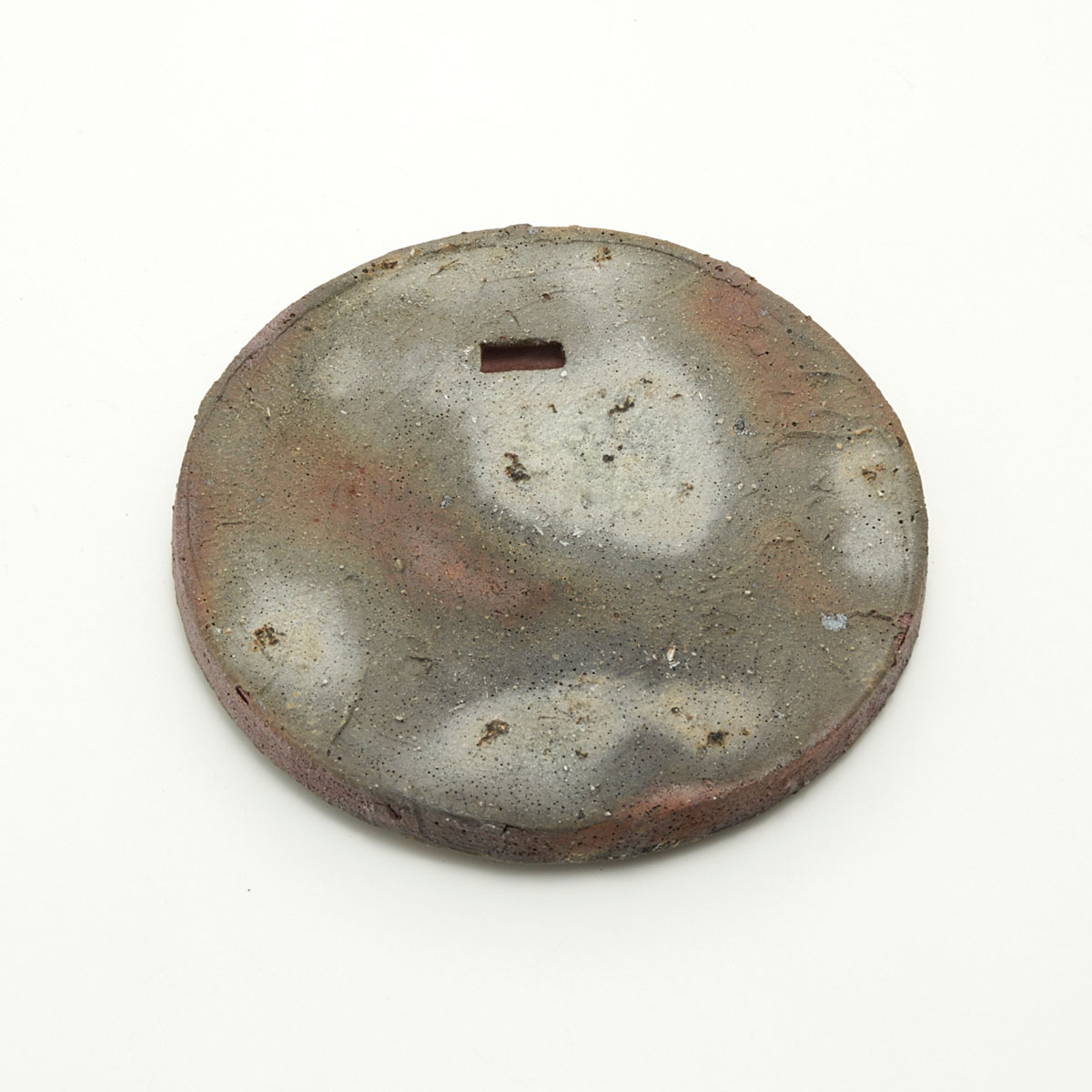 黄土色の荒らしいテクスチャーが魅力。原土を使って土の魅力を引き出した作品です。裏面の景色も美しいです。壁掛け作品ですがオブジェとして飾ってもお楽しみいただけます。壁に掛けるフックをお付けします。