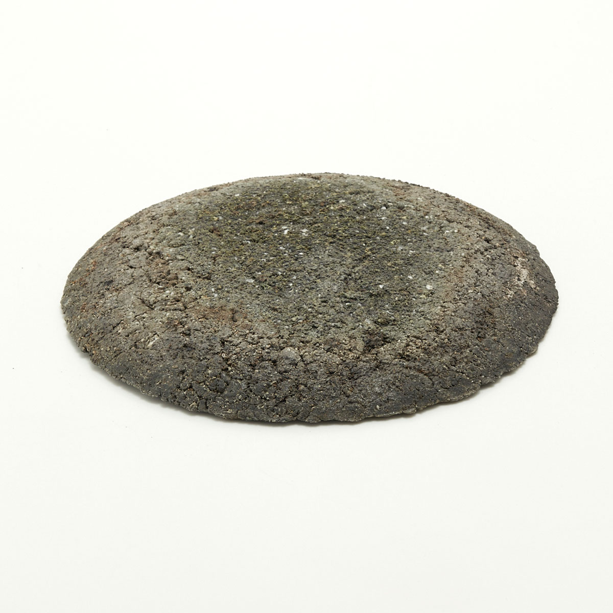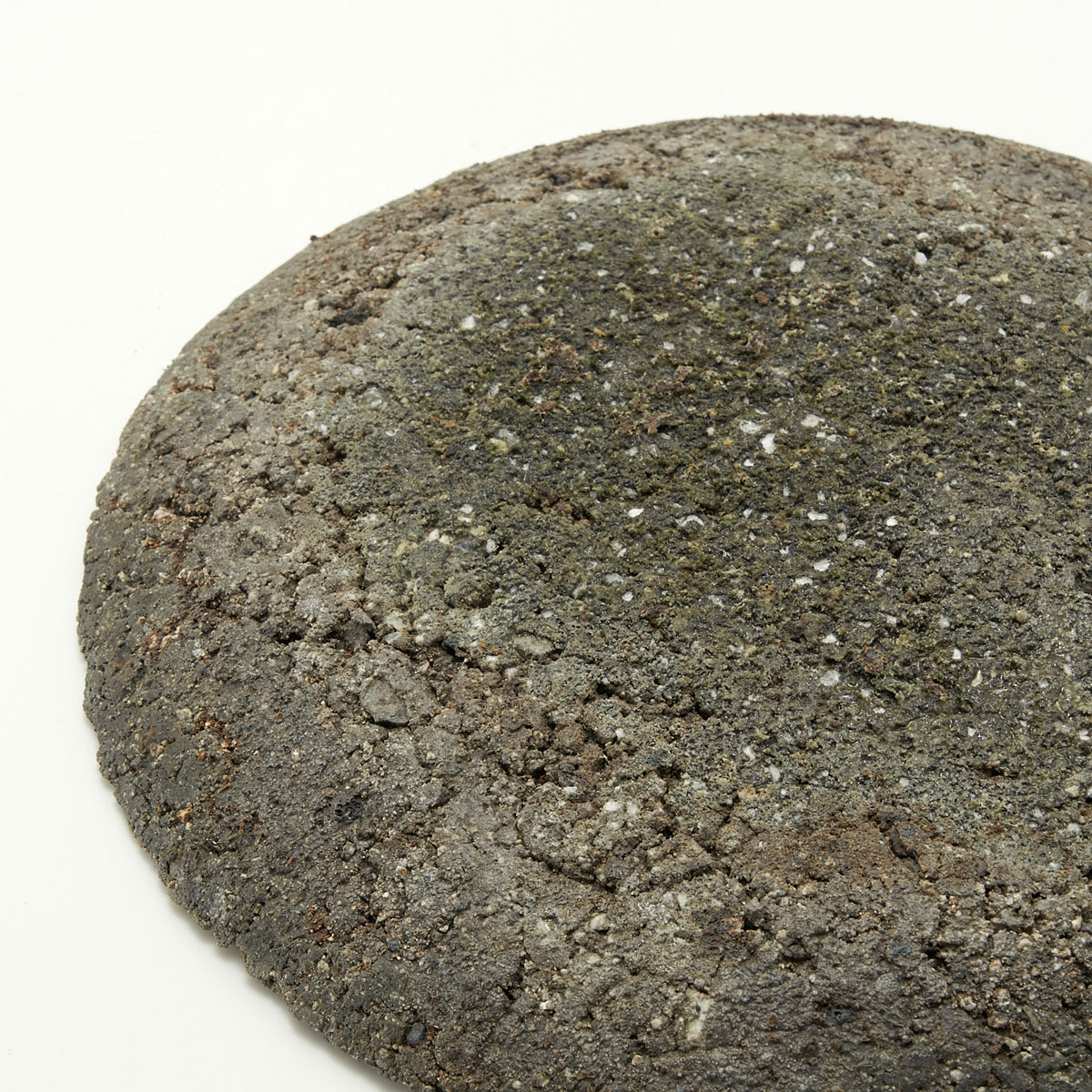Slightly rounded plate with a rough, dry texture. This work uses raw clay to bring out the charm of the soil. It is a wall-hanging piece, but can also be displayed as an object of art. Hooks for hanging on the wall will be provided.