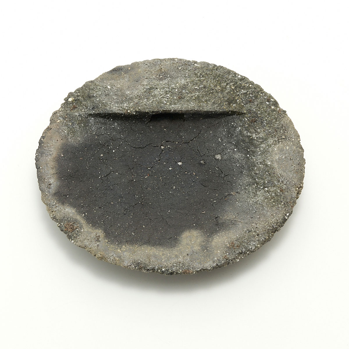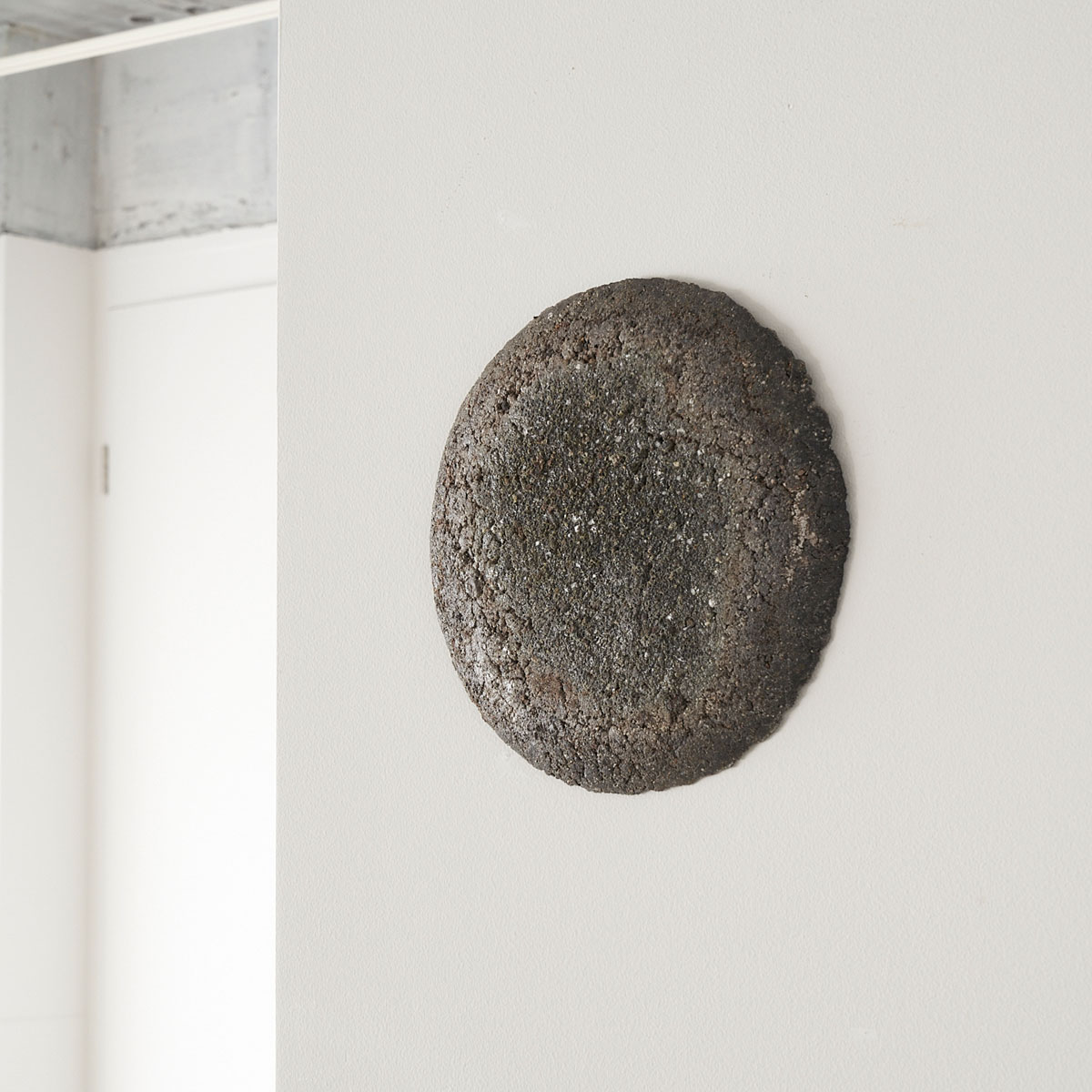 荒らしいドライな質感の少しアールを帯びたプレート。原土を使って土の魅力を引き出した作品です。壁掛け作品ですがオブジェとして飾ってもお楽しみいただけます。壁に掛けるフックをお付けします。