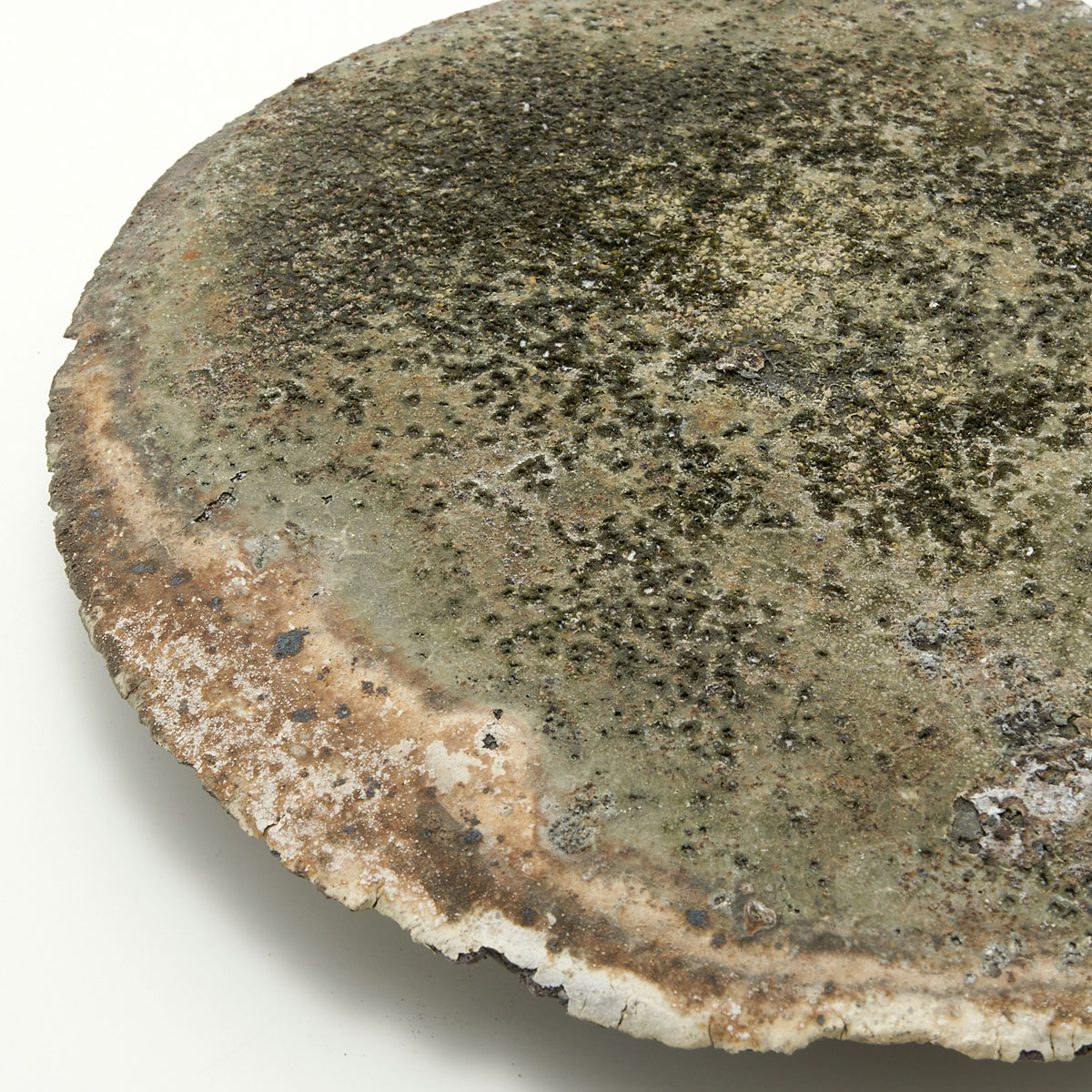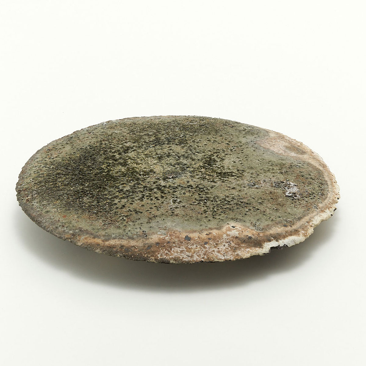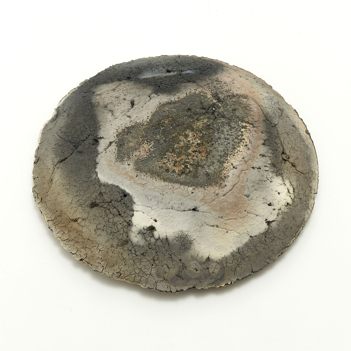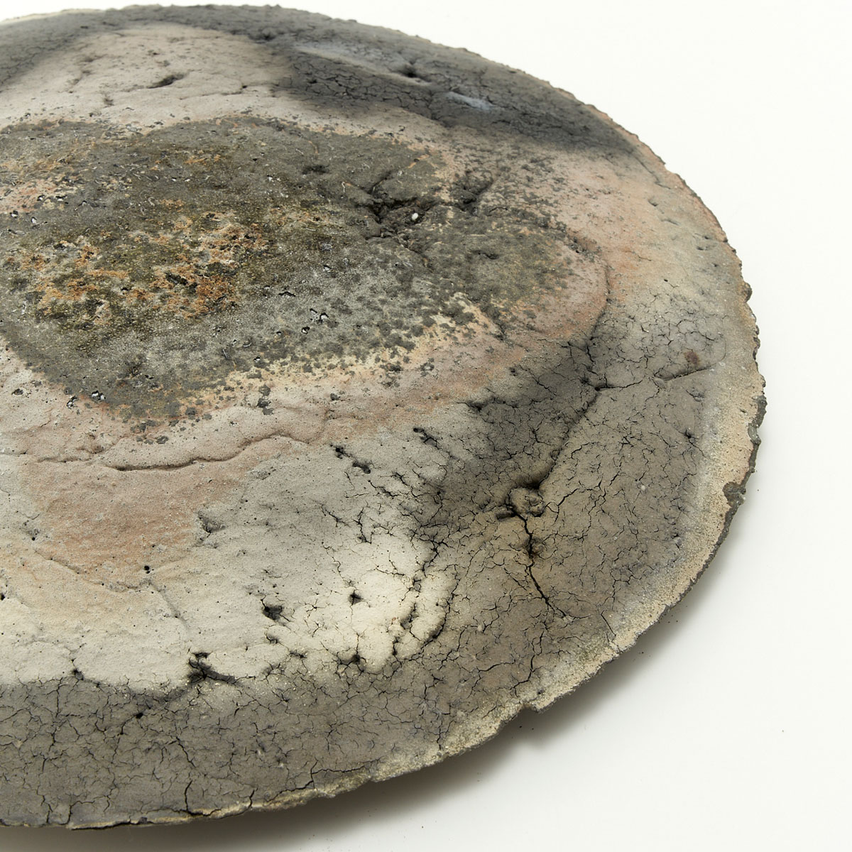 ドライな質感と荒々しいディテール、シャープな縁が魅力的なプレート。原土の魅力を引き出した作品です。飾り皿としてお楽しみください。裏面も面白い景色になっています。