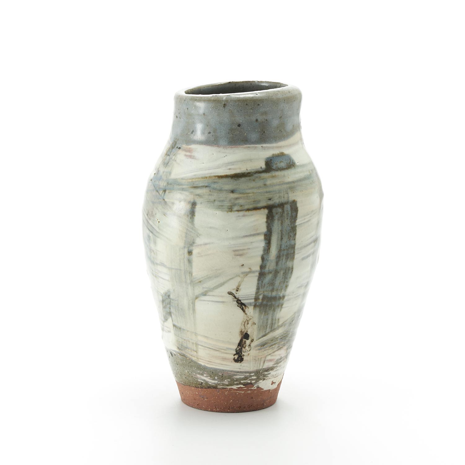 [アーカイブ作品] 勢いのある刷毛目と鉄絵が美しい花器。落ち着いた雰囲気の作品です。