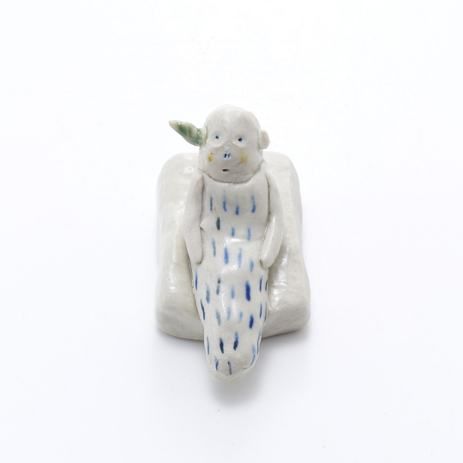 片耳がねじのようになった、とぼけた表情の男の子が座っているペーパーウェイトです。なんとも言えない可愛さです。