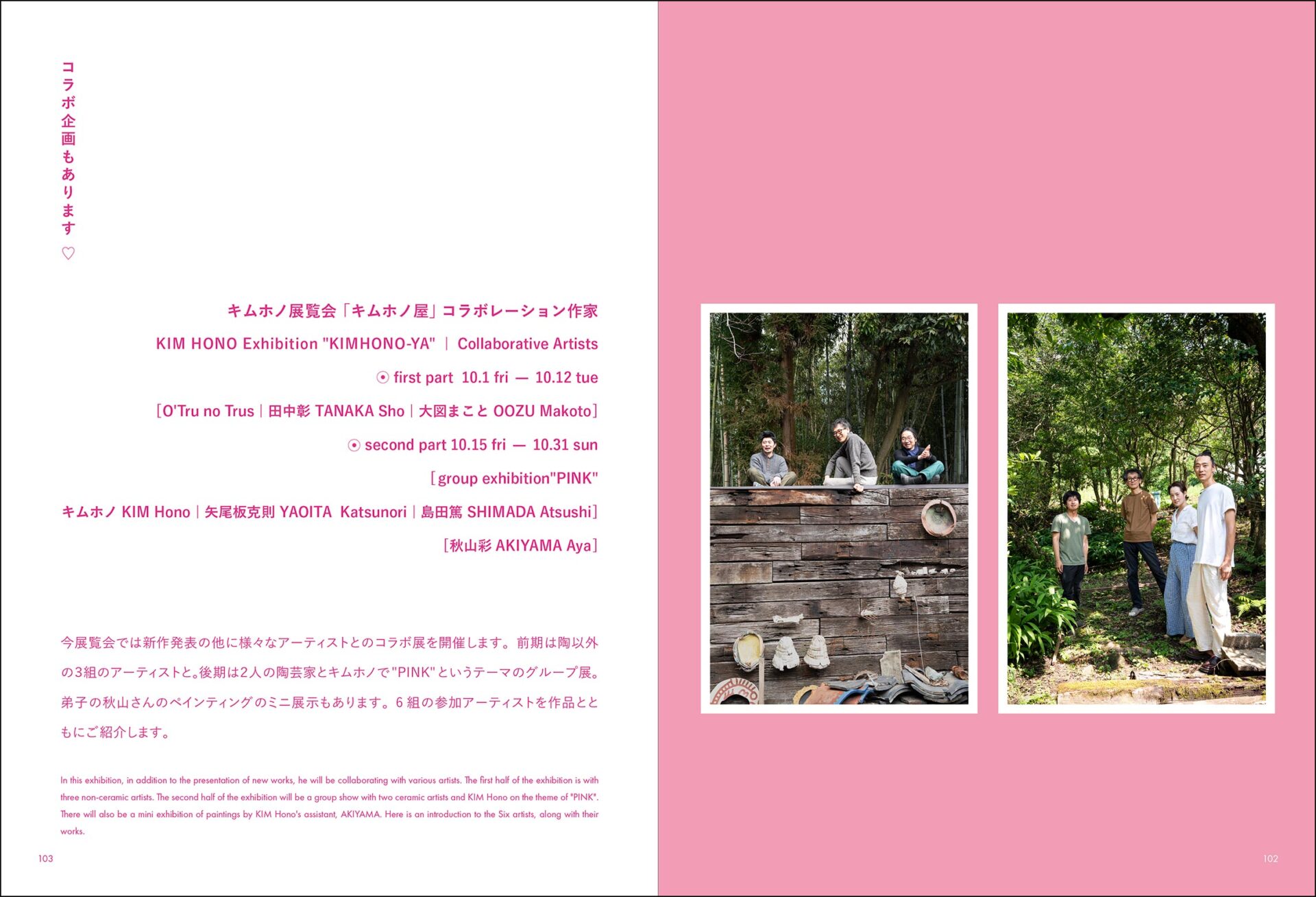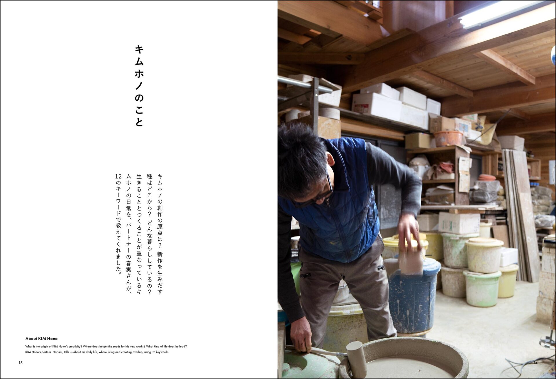 水犀でのキムホノの個展にあわせて制作した本です。個展のテーマは「LOVE FOR」キムさんが生み出した愛の形の新作紹介、日々のくらしや制作風景、アーカイブ作品を水犀のある台東区を舞台に撮影したコーナーなど、写真でキムホノと作品の魅力を伝える本となっています。本は糸綴じなのでページがフラットに開きとても読みやすいです。約2年間かけて取材や撮影し完成した一冊です。