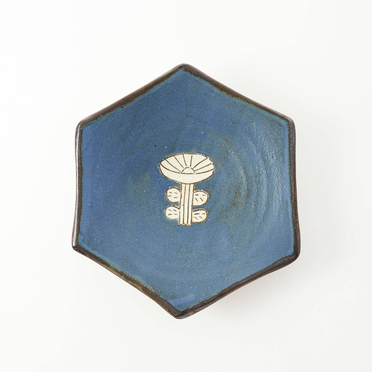 竹内陽子作品。ぽてっとした質感と花柄が可愛らしい六角皿。