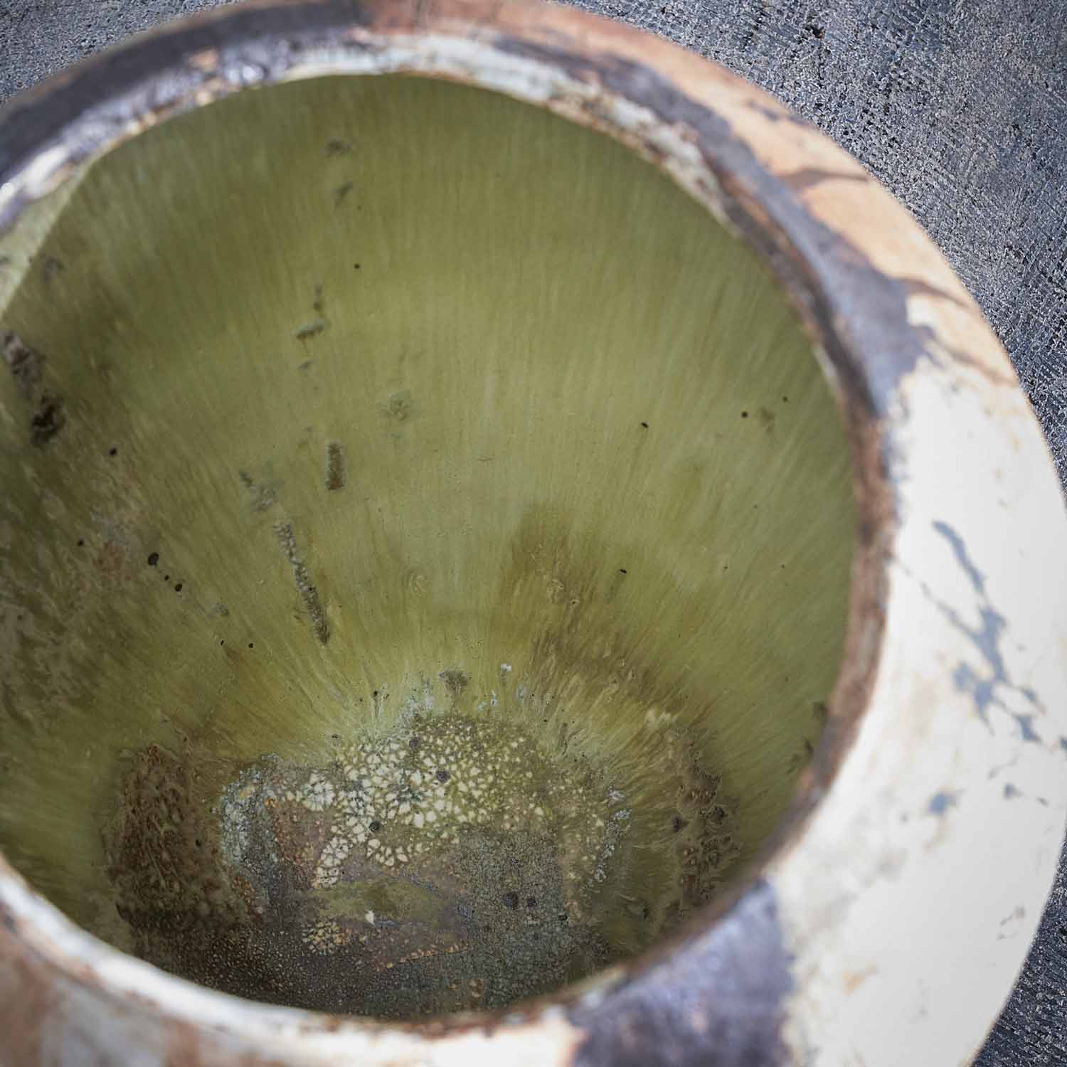 笹本雅行作品。勢いのある大胆な黒が印象的な大壺。中がくすんだグリーンでとても美しいです。