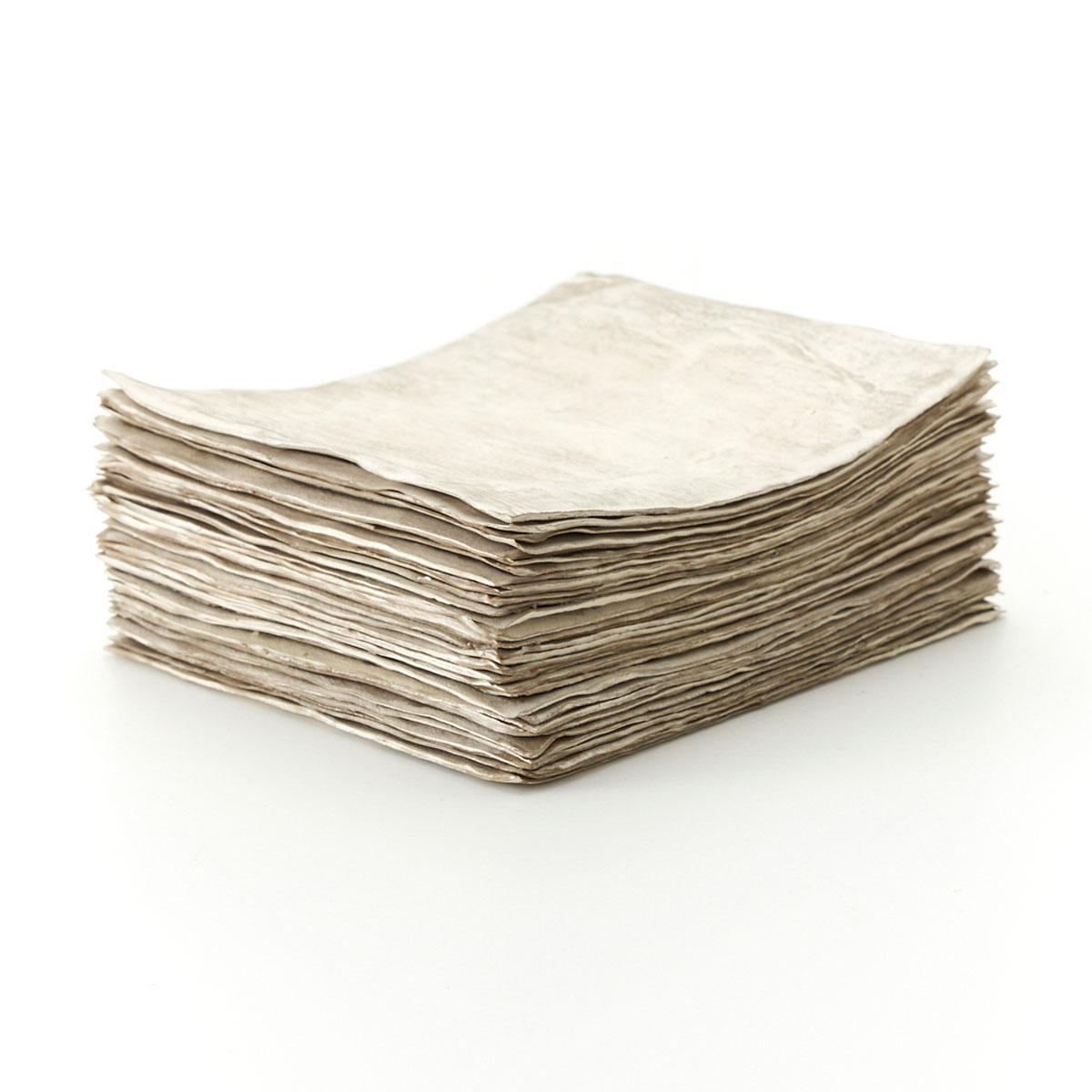 This beautiful work looks like a bundle of old paper. This piece is made by soaking Japanese paper in porcelain slip, firing it in layers, and applying silver glazed finish. Since silver oxidizes, the color changes over time. Please enjoy this change.