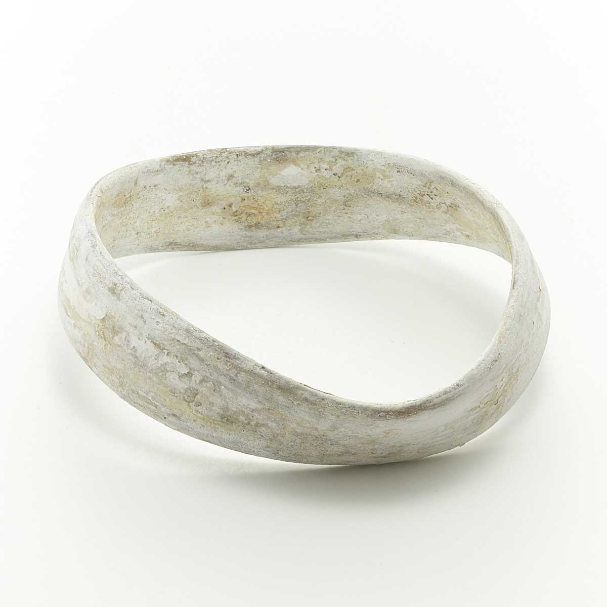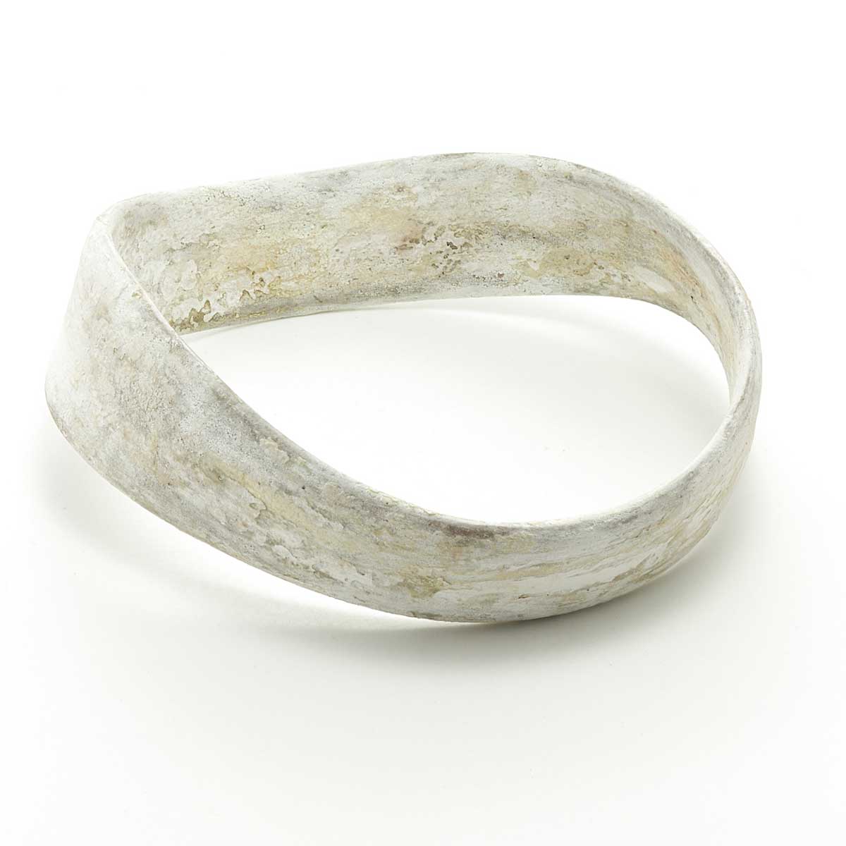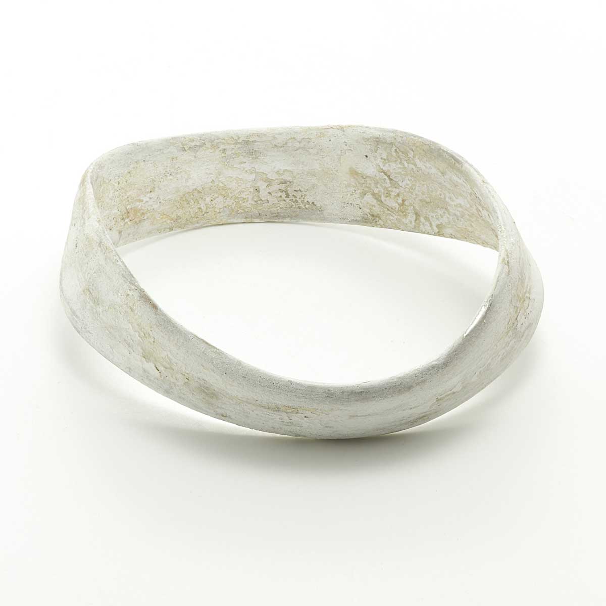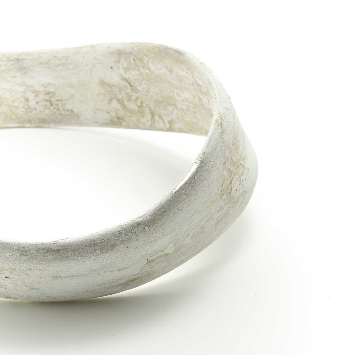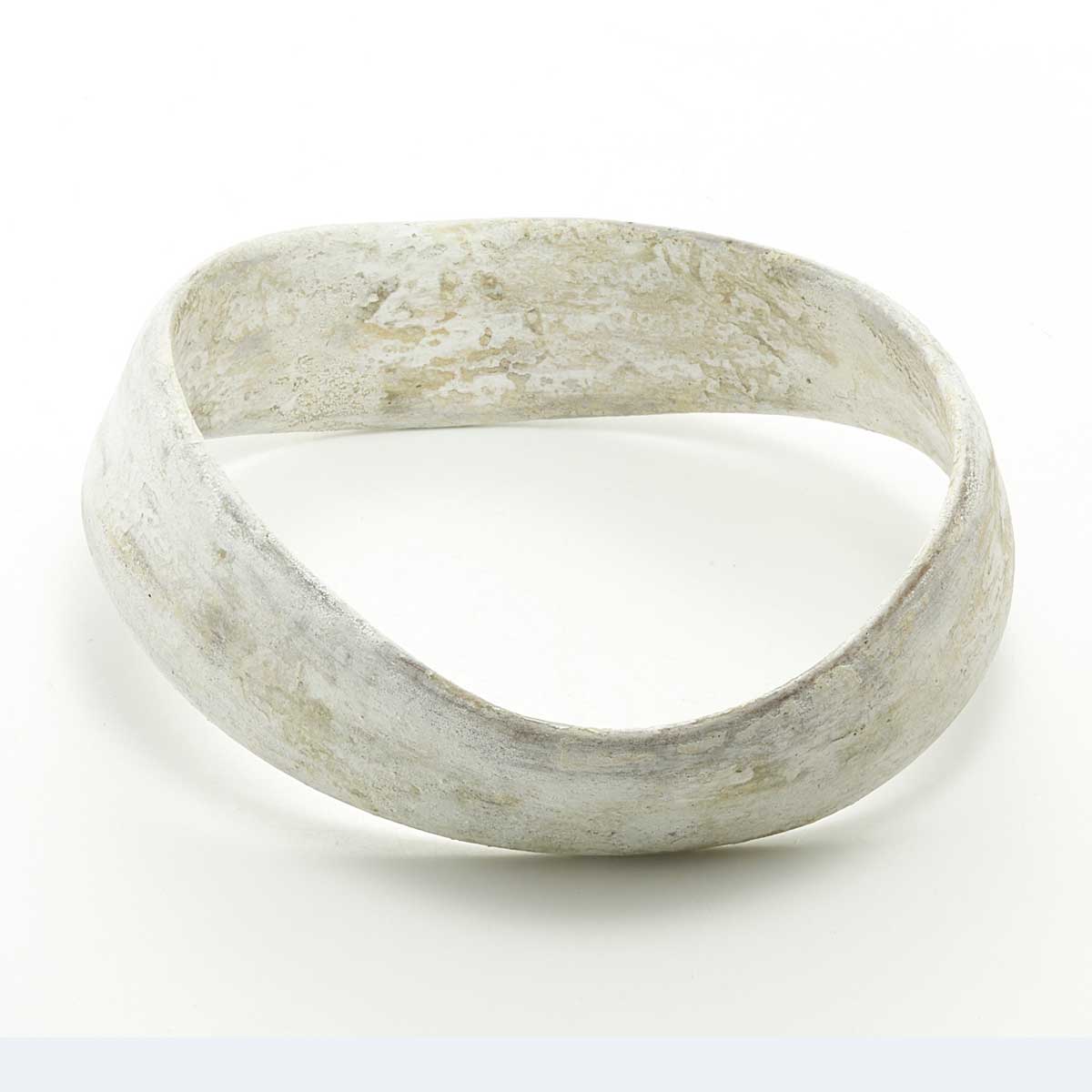 リラックスした空気を感じる帯状の白い輪です。見る角度や置き方で形が色々と変化する有機的な形です。焼成を重ねることで生まれた、ひびや剥がれのテクスチャーが魅力的です。