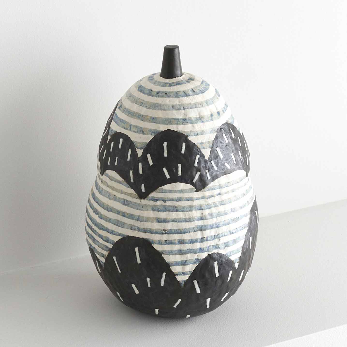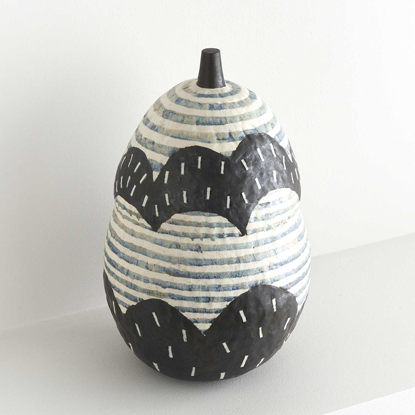 瓢箪の形に山と雲を施したオブジェです。この作品の中に大自然を感じることができます。瓢箪は末広がりの形で幸福や成功、雲は運気上昇、結実縁起物です。