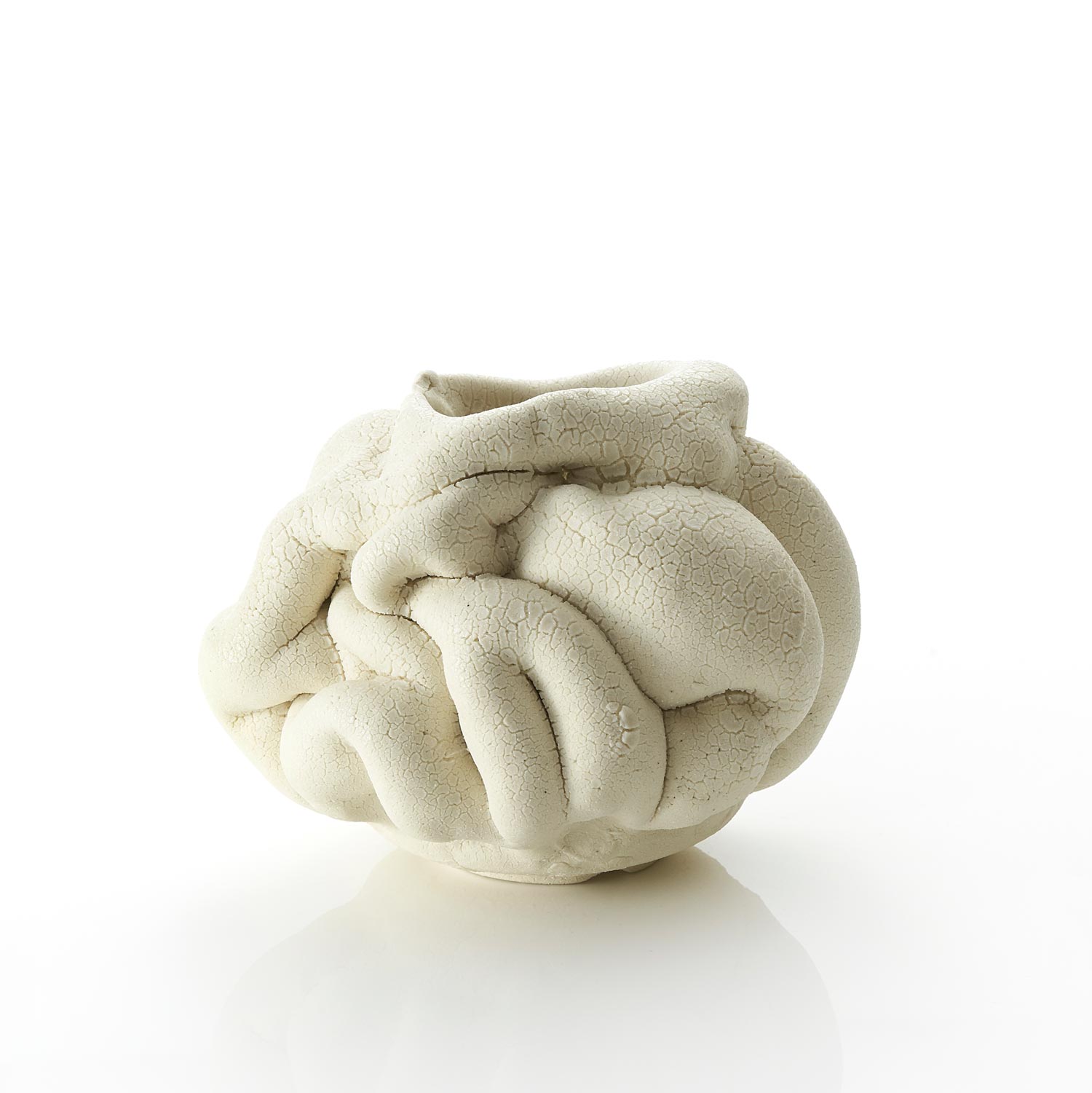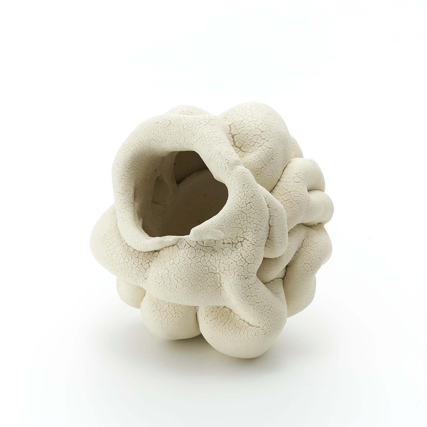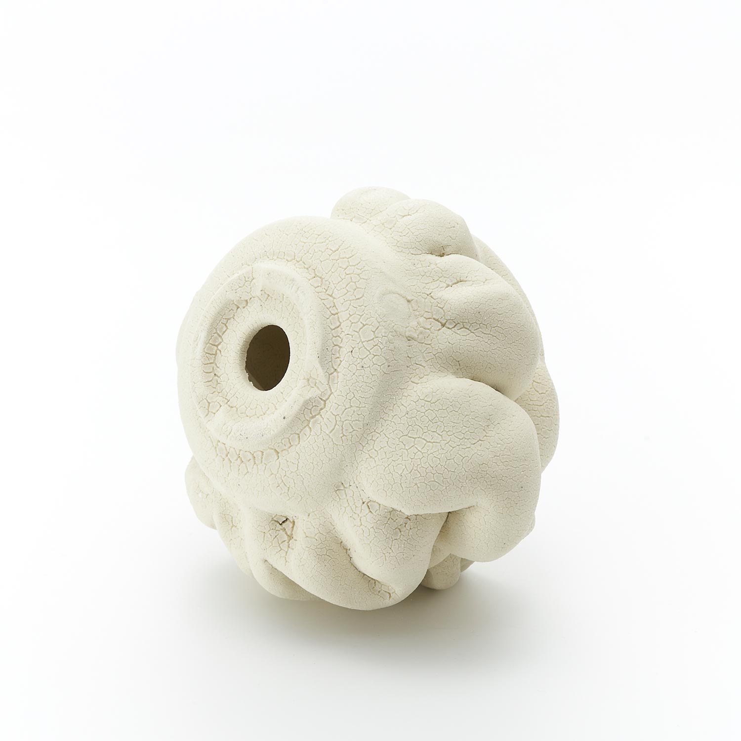 粘土屋でもある日置さんが土という素材に向き合い、その魅力を引き出すことから生まれたインパクトのある造形の植木鉢「MONSTERS」。皹のようなディテール。潔さを感じる白。サイズは抹茶碗。サボテンや盆栽の鉢に。