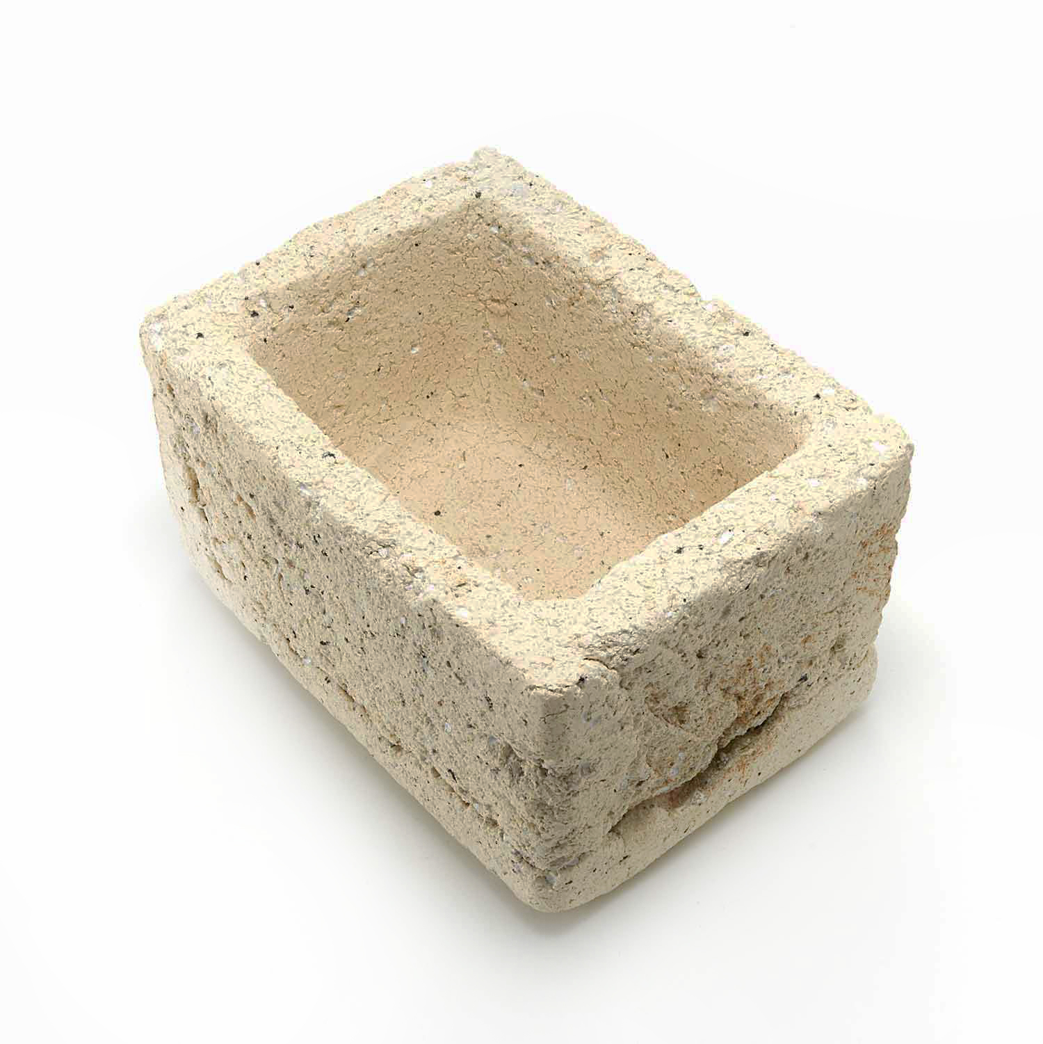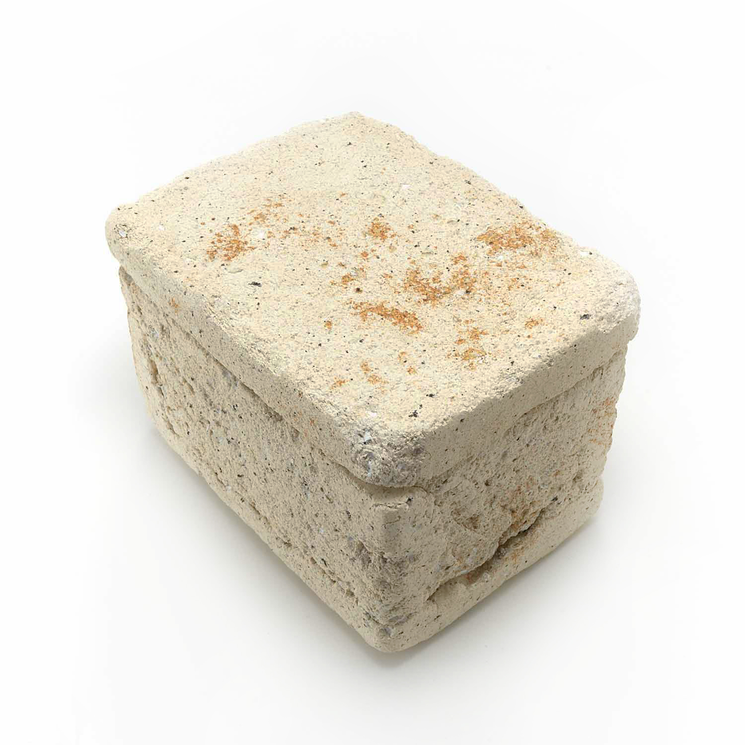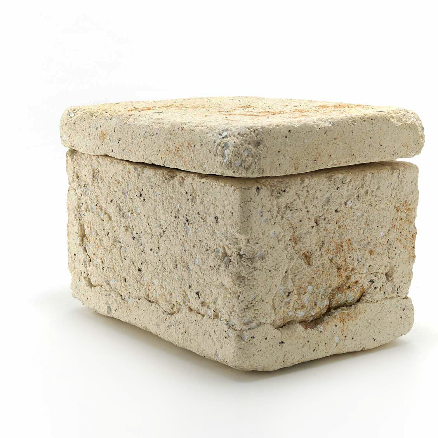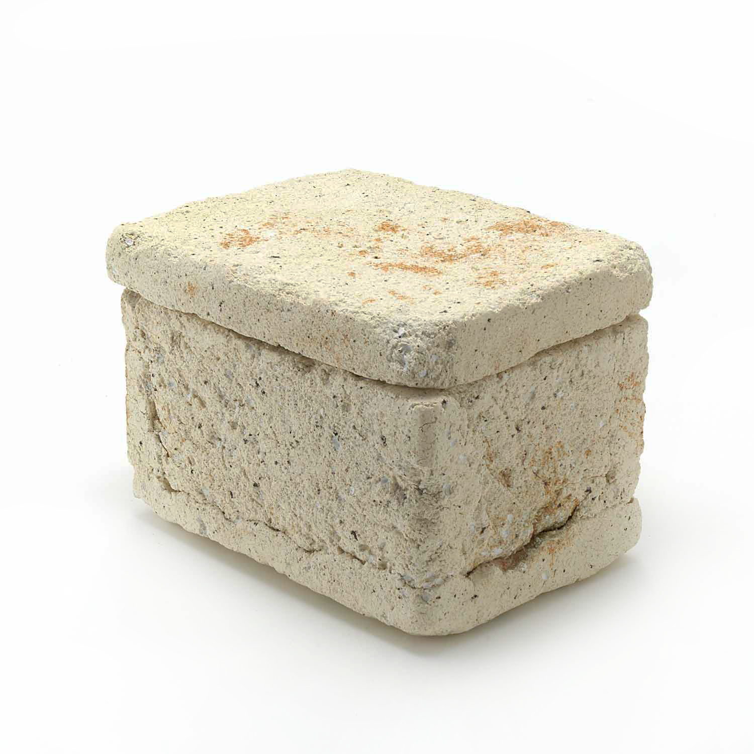 The production of this series of sacks began with a copy of a Roman plaster box. Since I make each piece from clay, glassy materials, and sometimes straw, no two pieces have exactly the same texture.