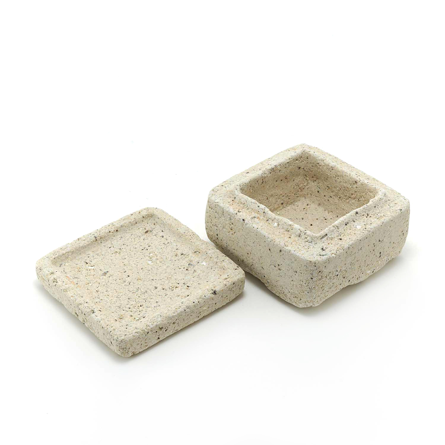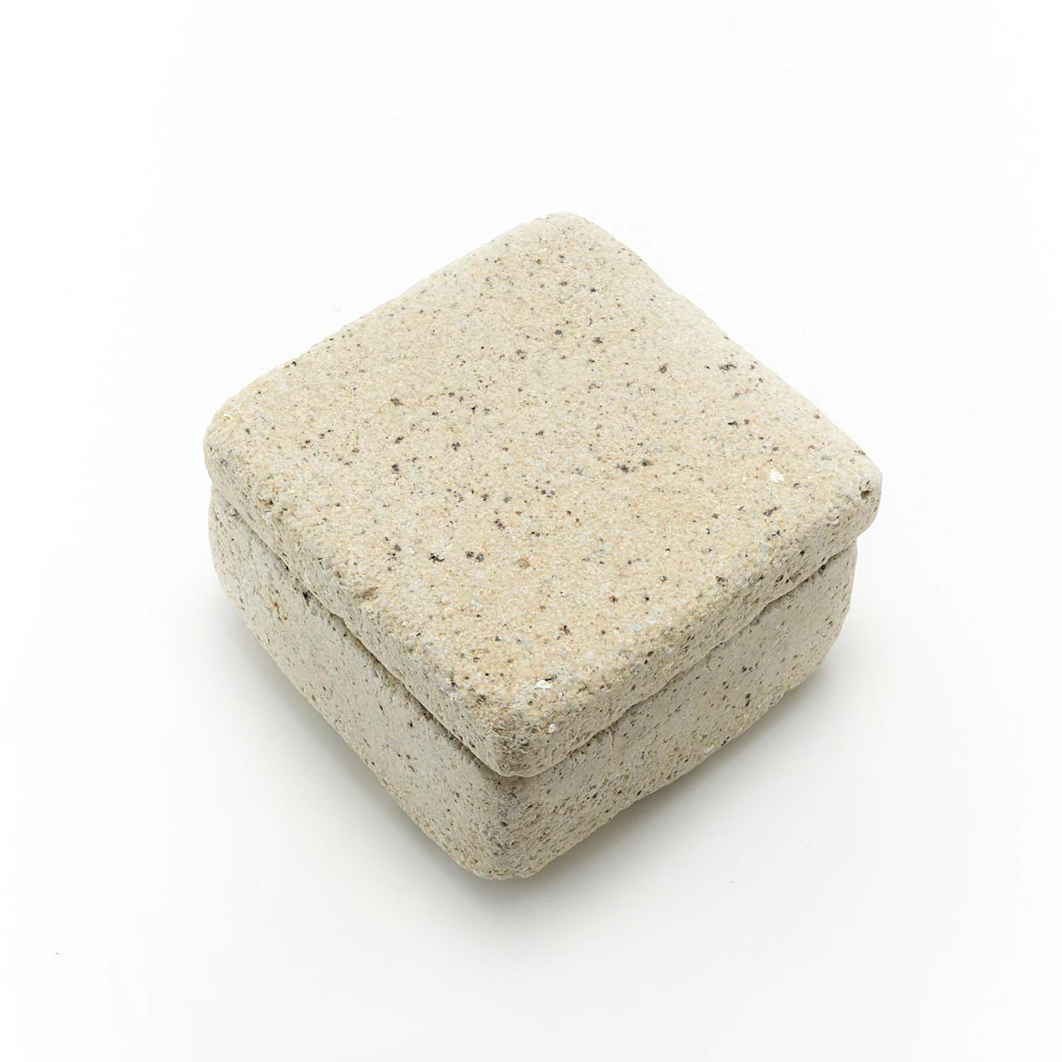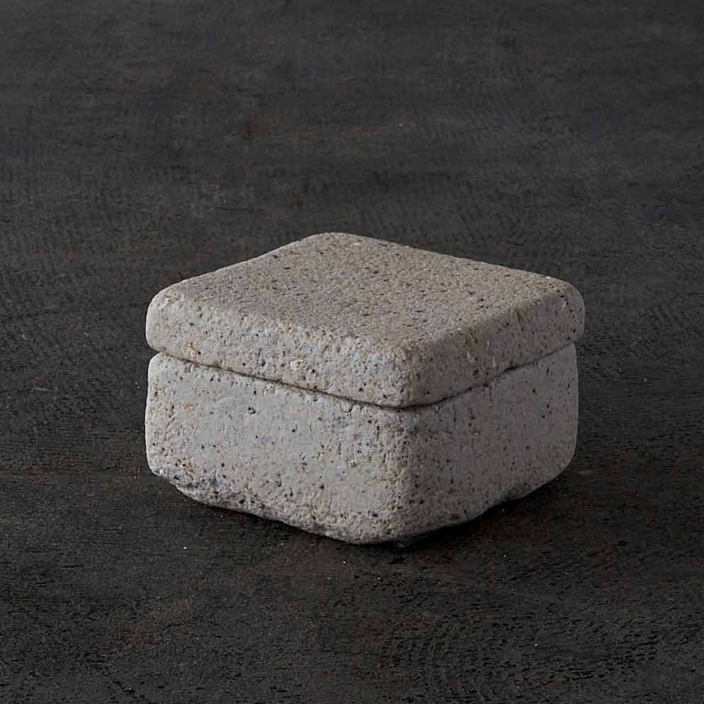 ローマ時代の漆喰の箱の写しから、この匣のシリーズの制作が始まりました。土やガラス質の素材、時には藁なども入れ毎回粘土を作ってから制作をしているため全く同じ質感の作品はありません。