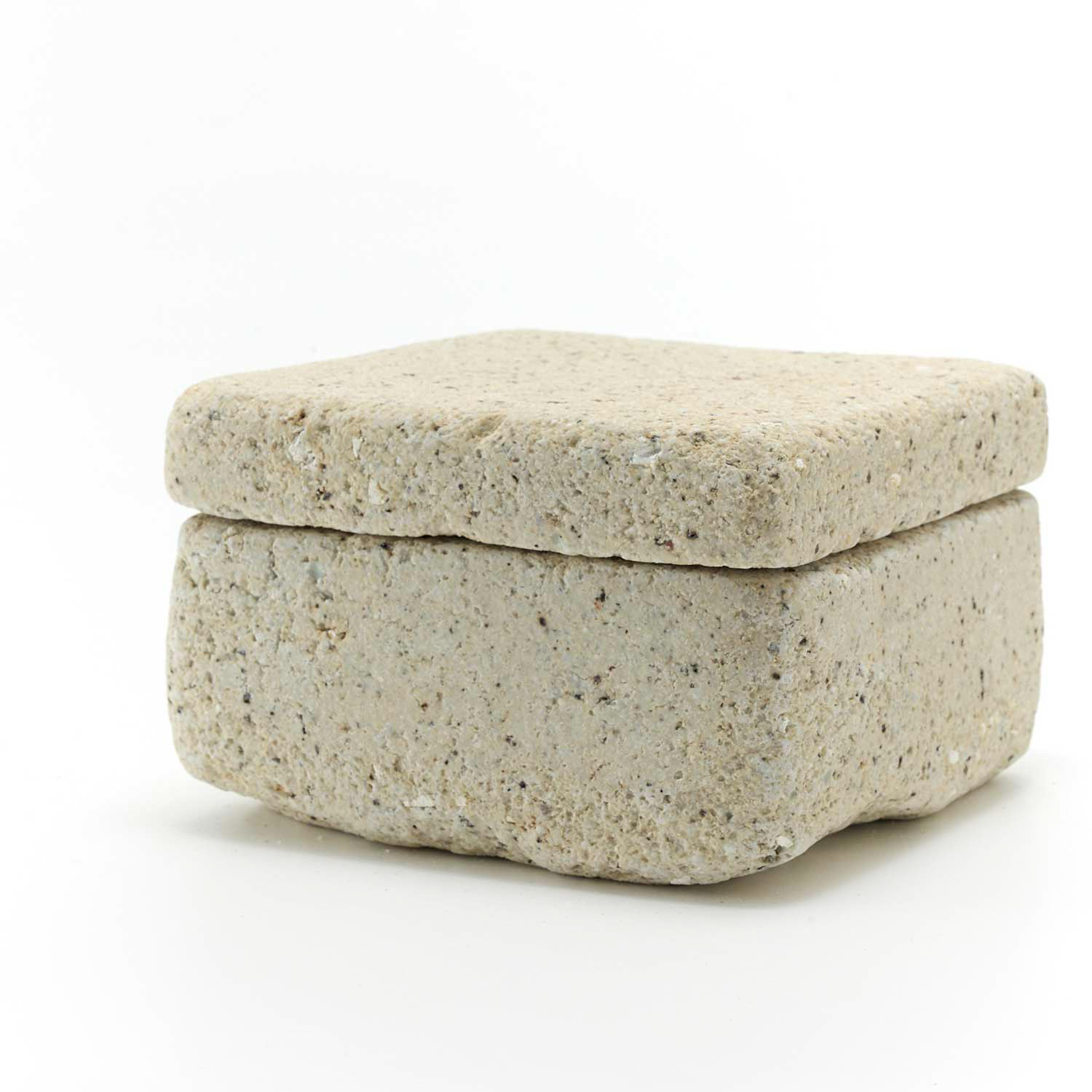 白い立方体の小さな匣です。やさしい質感と形の作品です。手触りも良い感じです。
